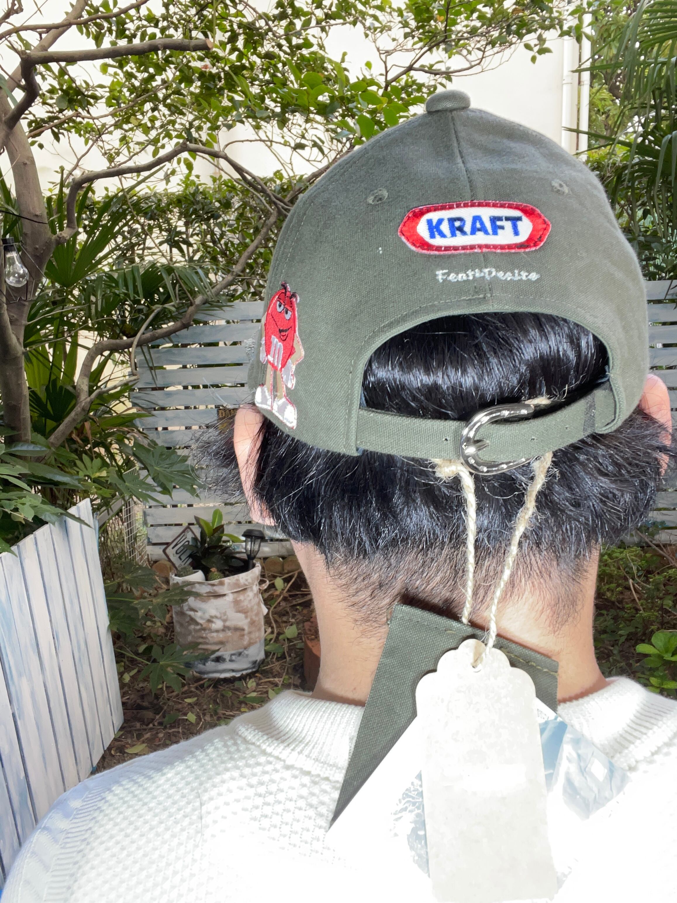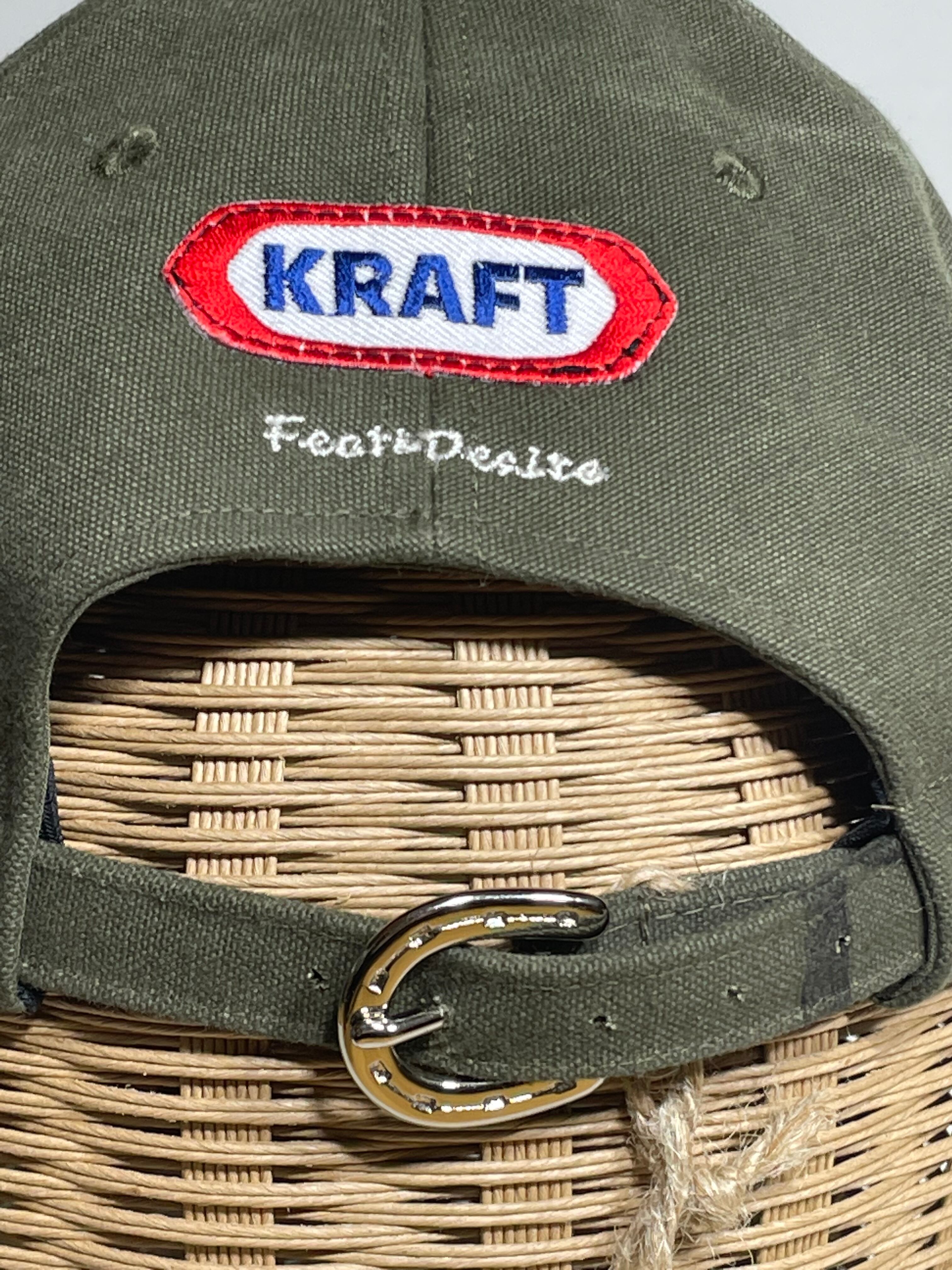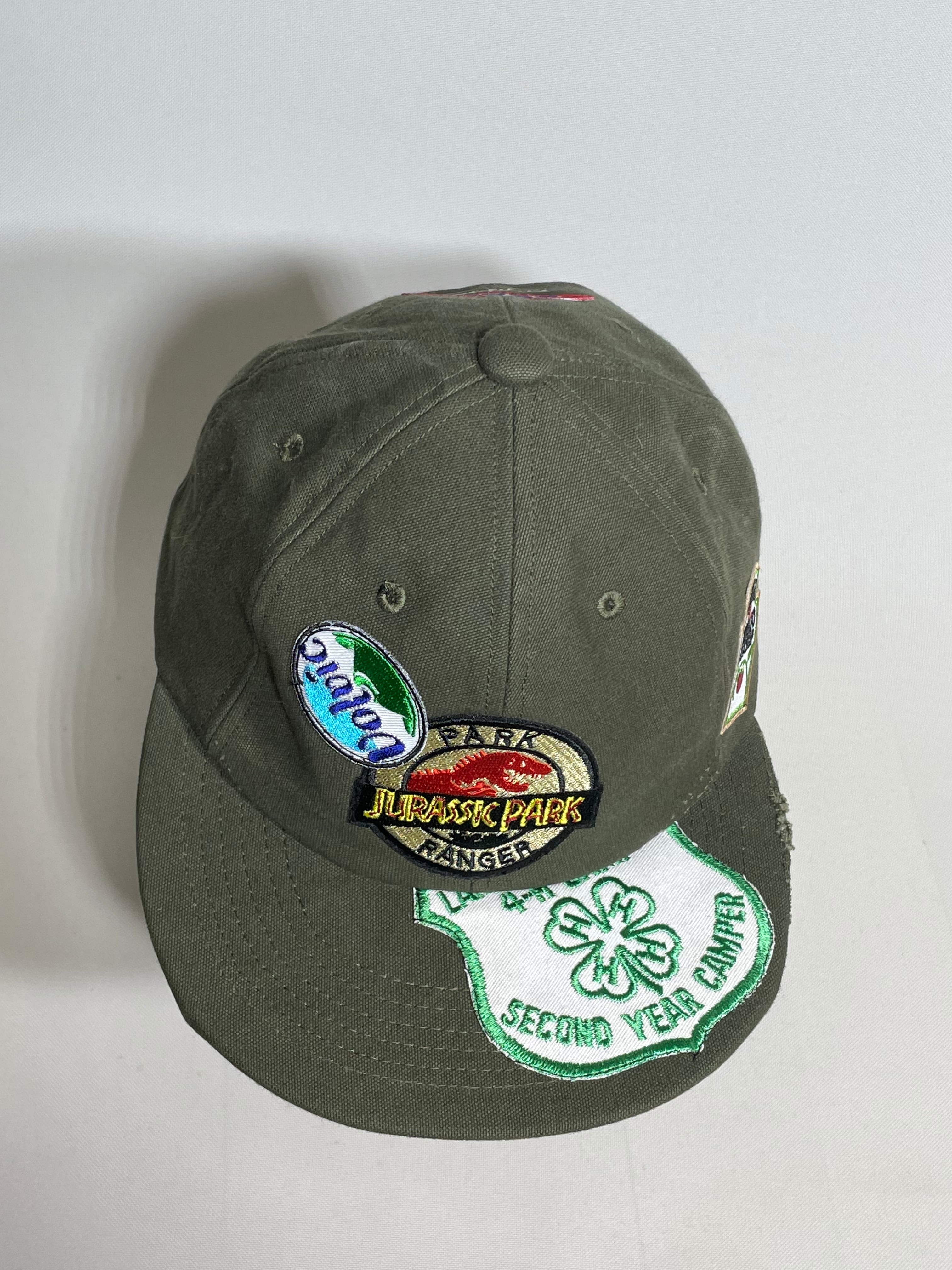 大戦時のドイツ軍のミリタリーダッフルバッグを解体してニューエラ型の平ツバ6パネルキャップに仕立てました。