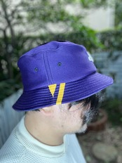 古着のジャージーを解体してバケットハットに仕立て直しました。