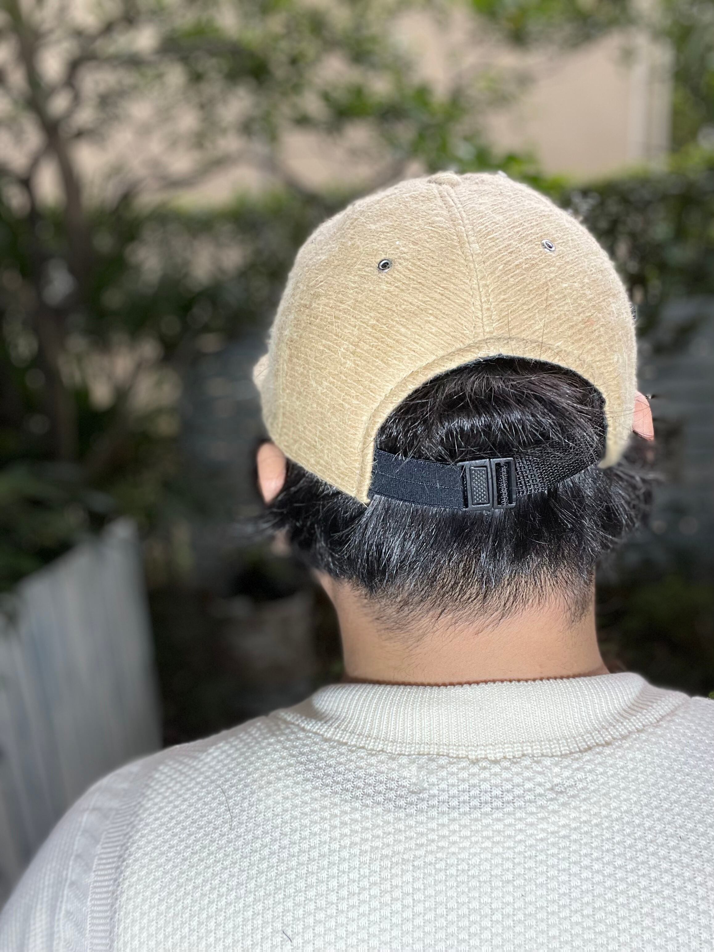 デッドストックのフランス産カシミヤウールを用いて平ツバ6パネルキャップに仕立てました。