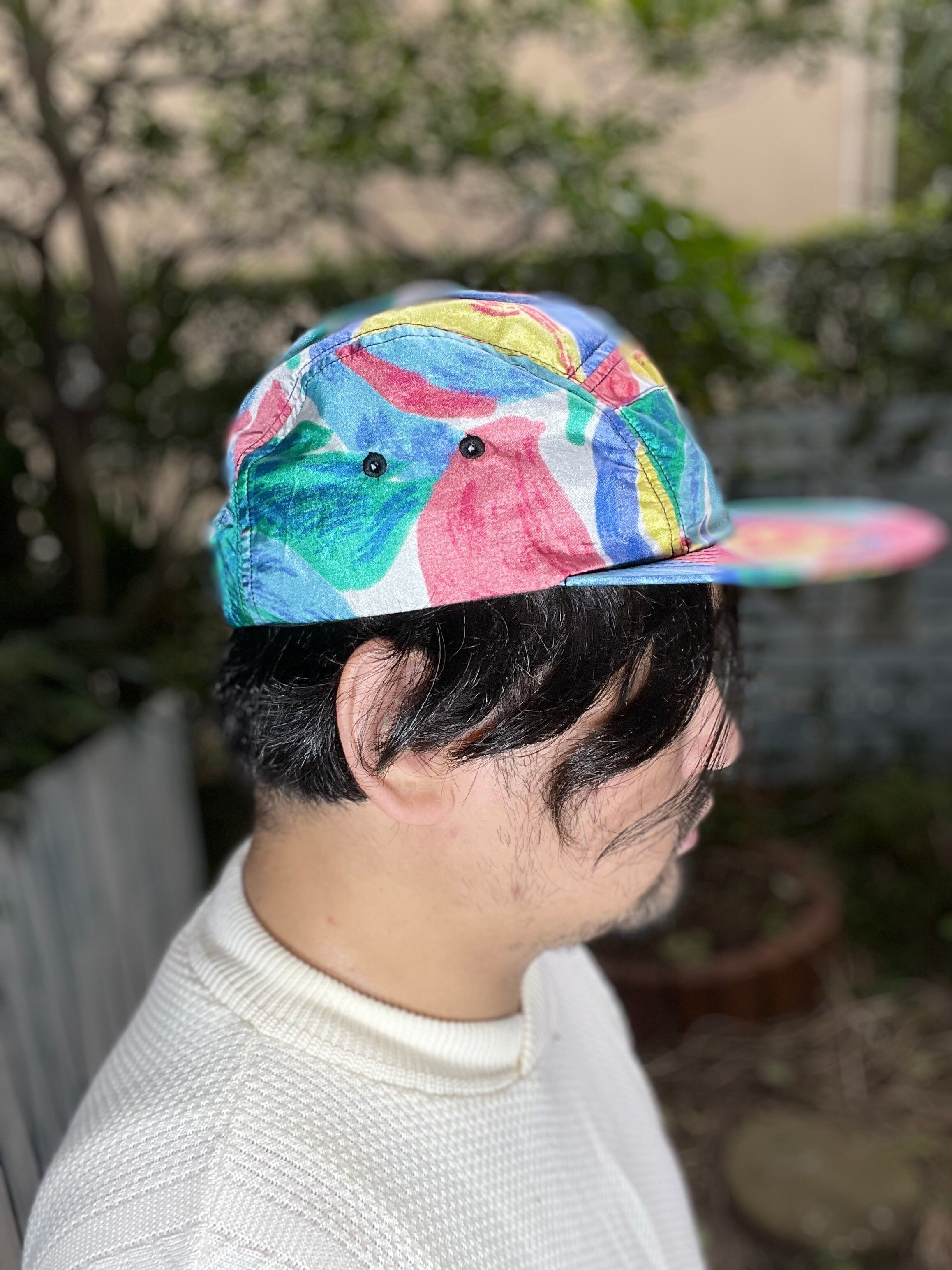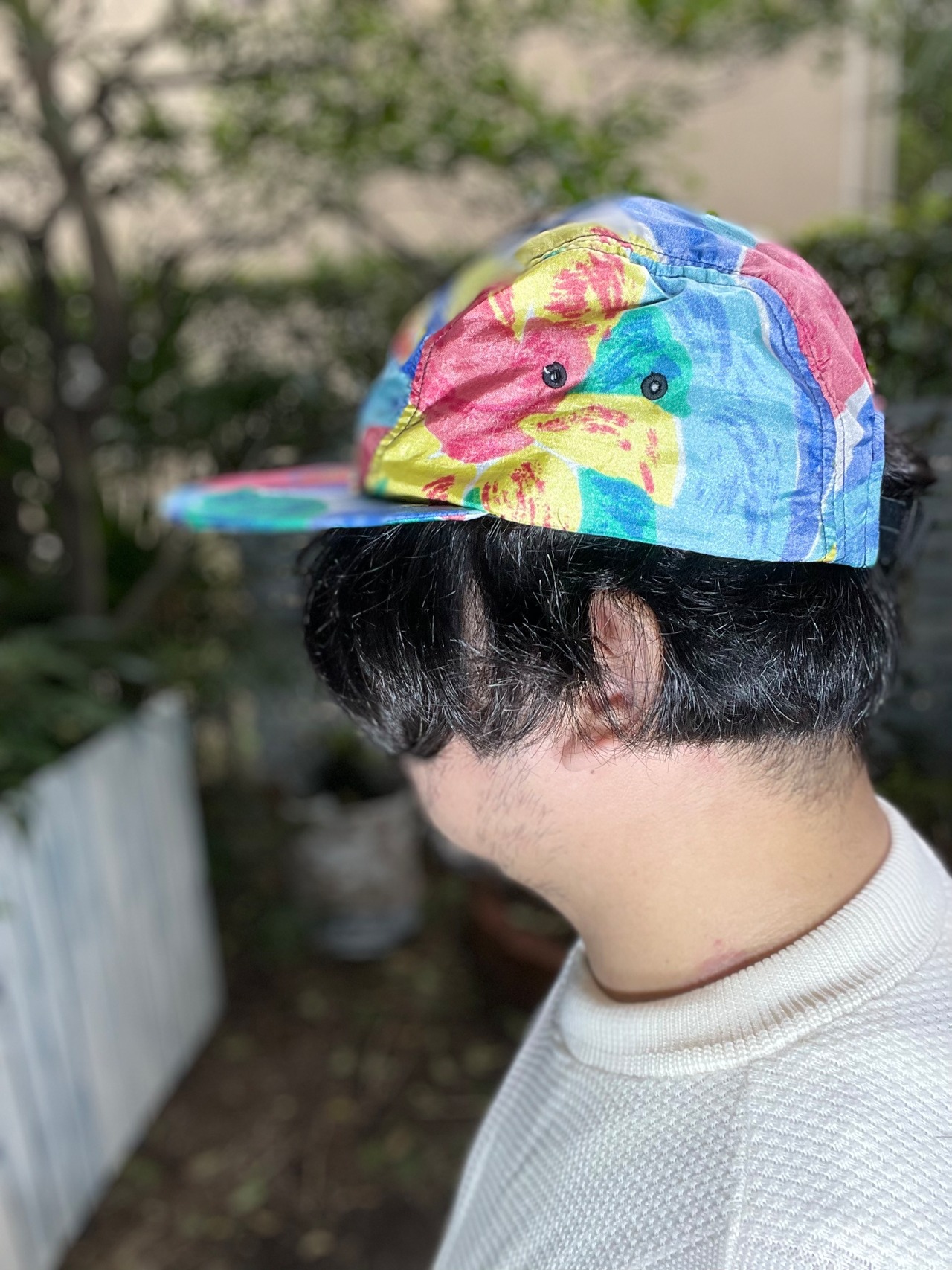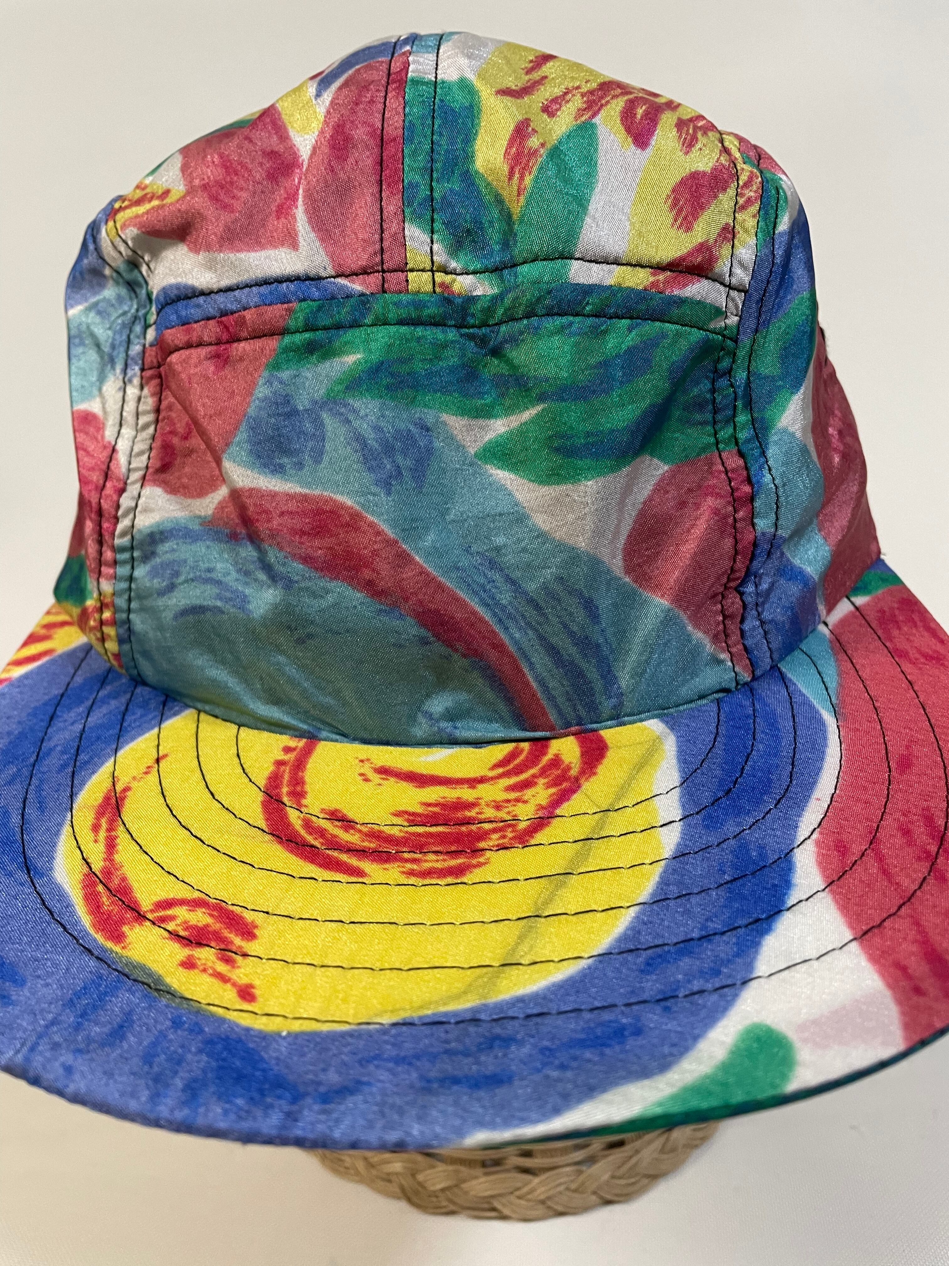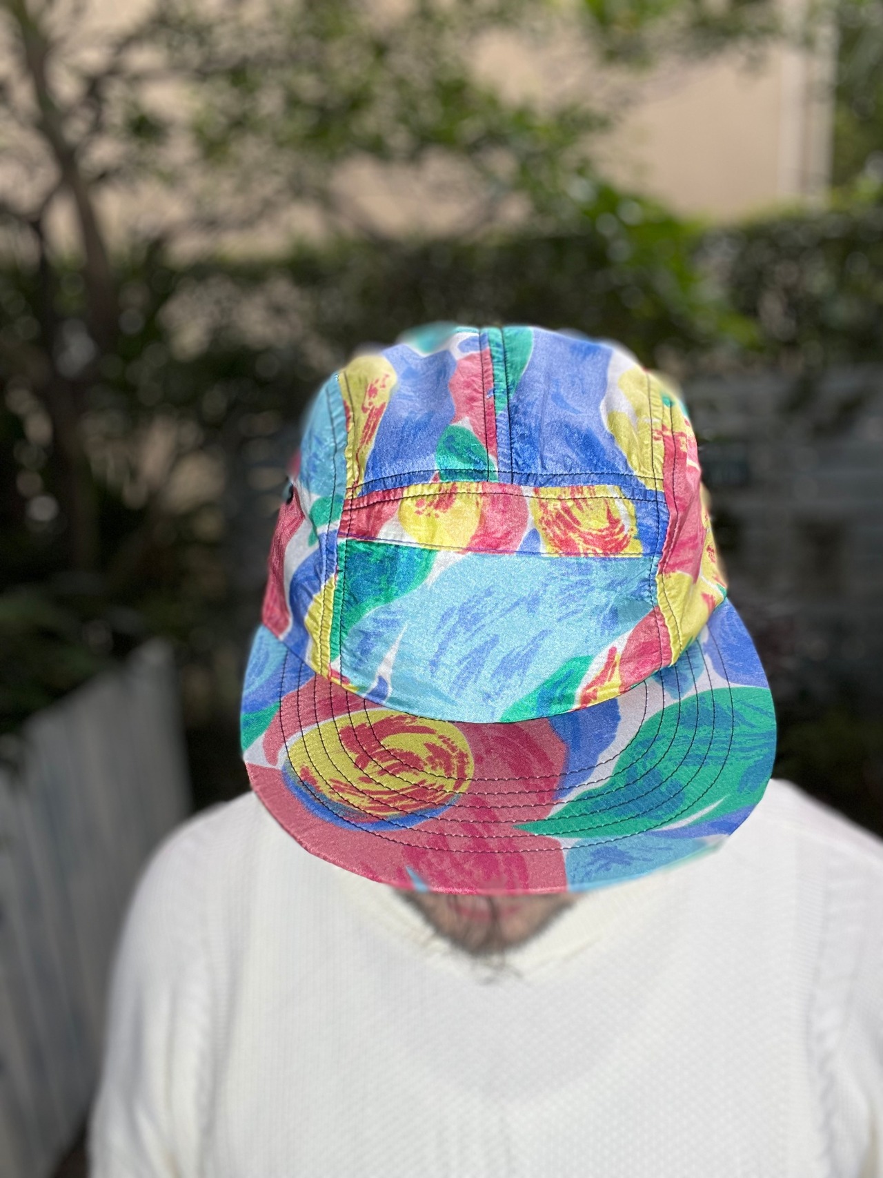古着のレトロ柄ブルゾンを解体してジェットキャップに仕立てました。