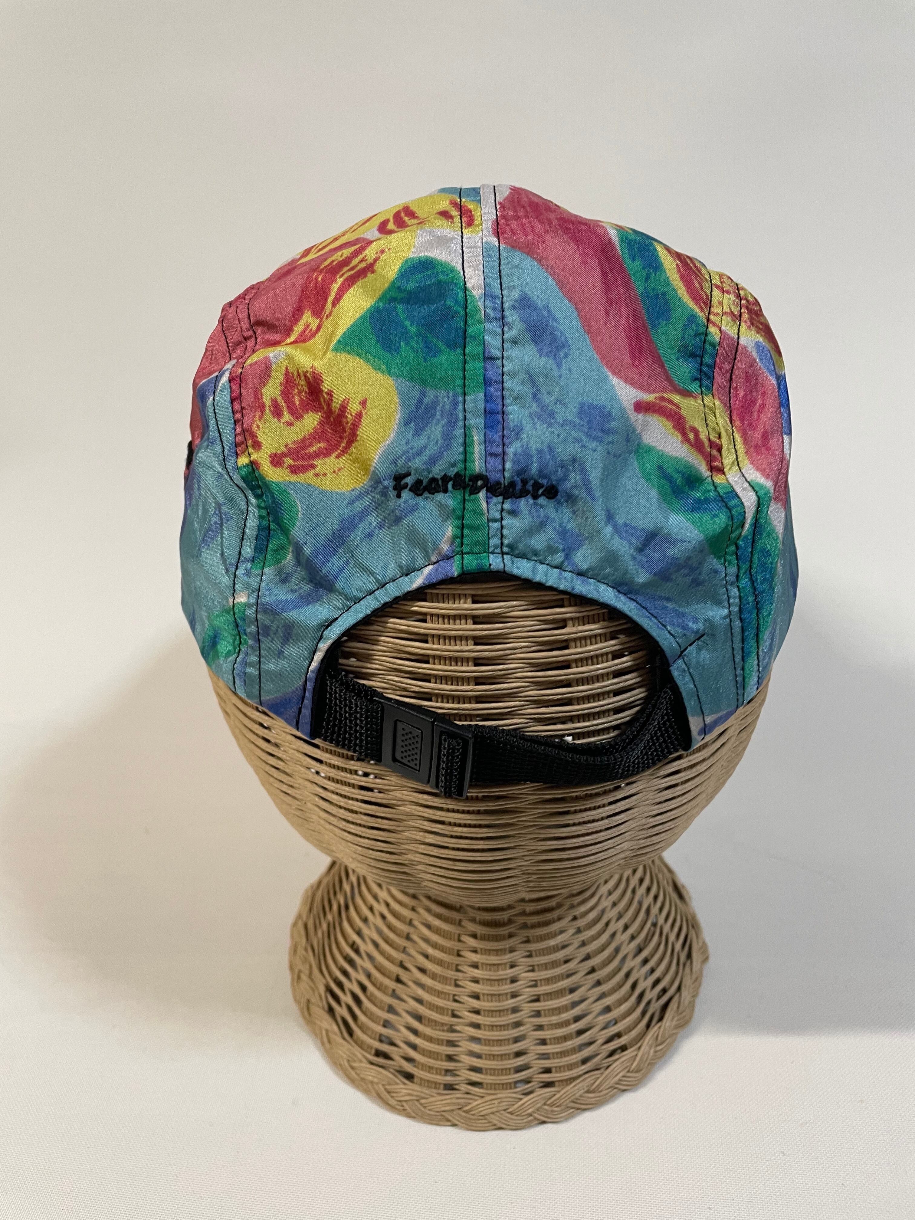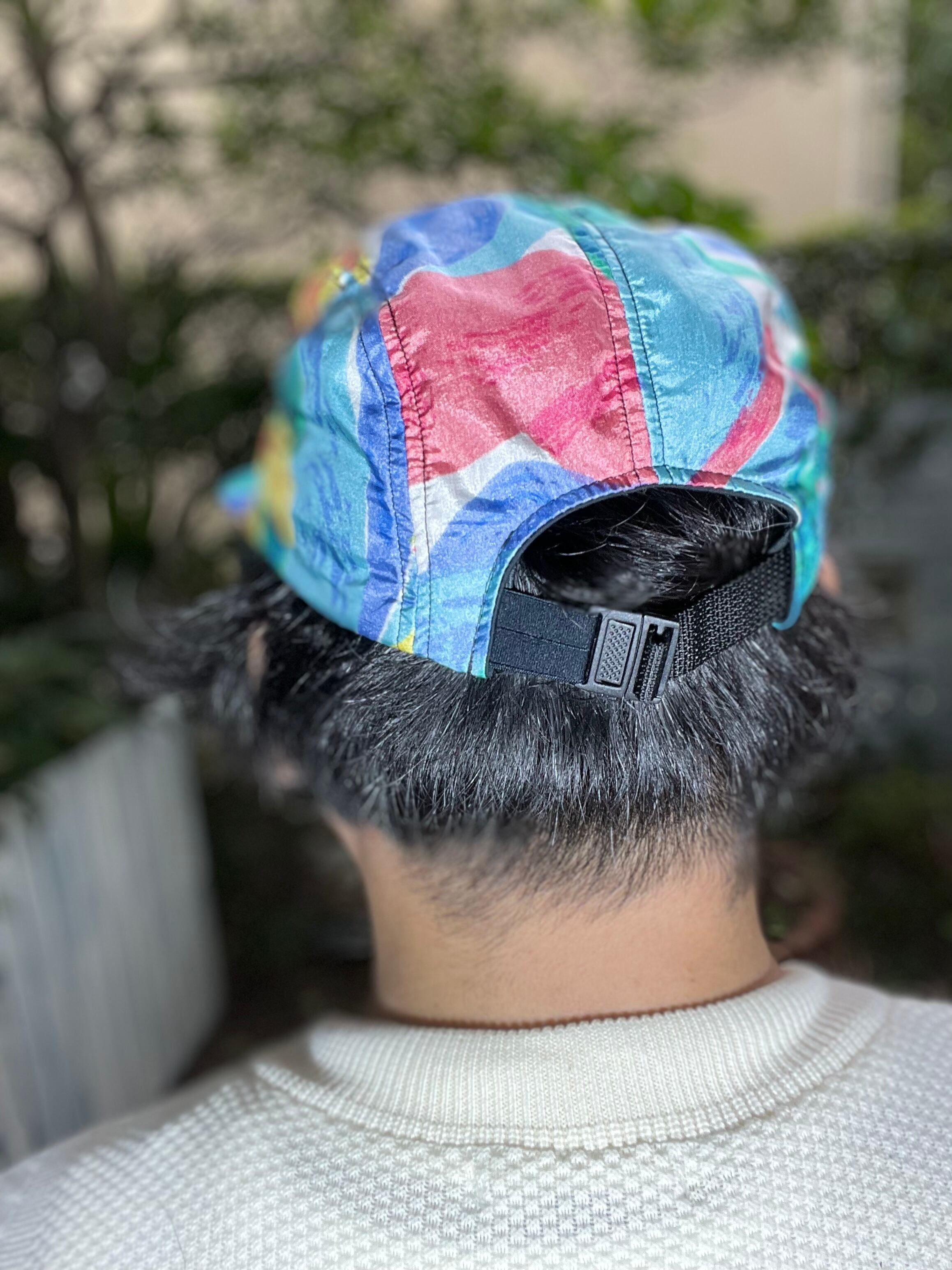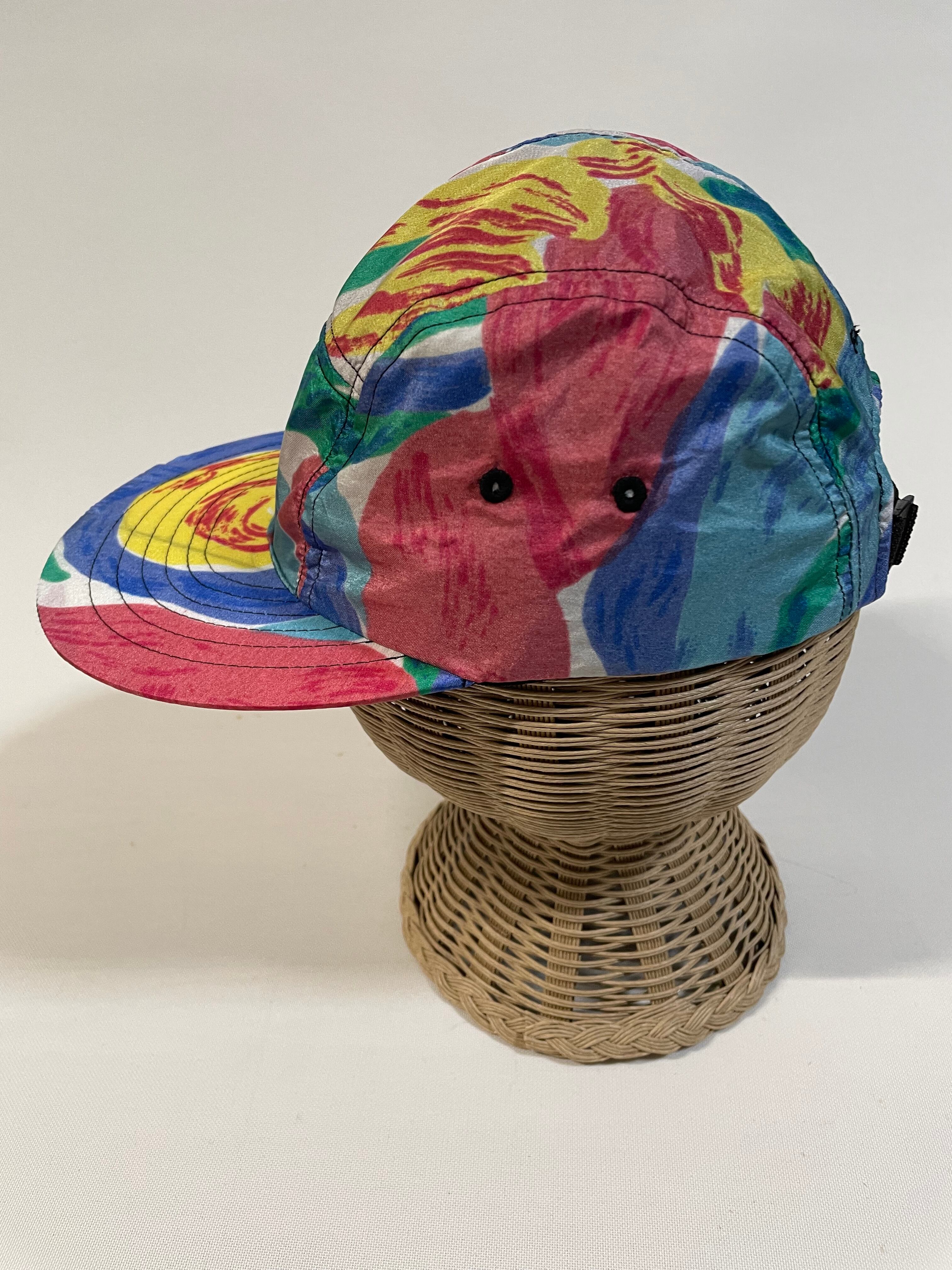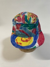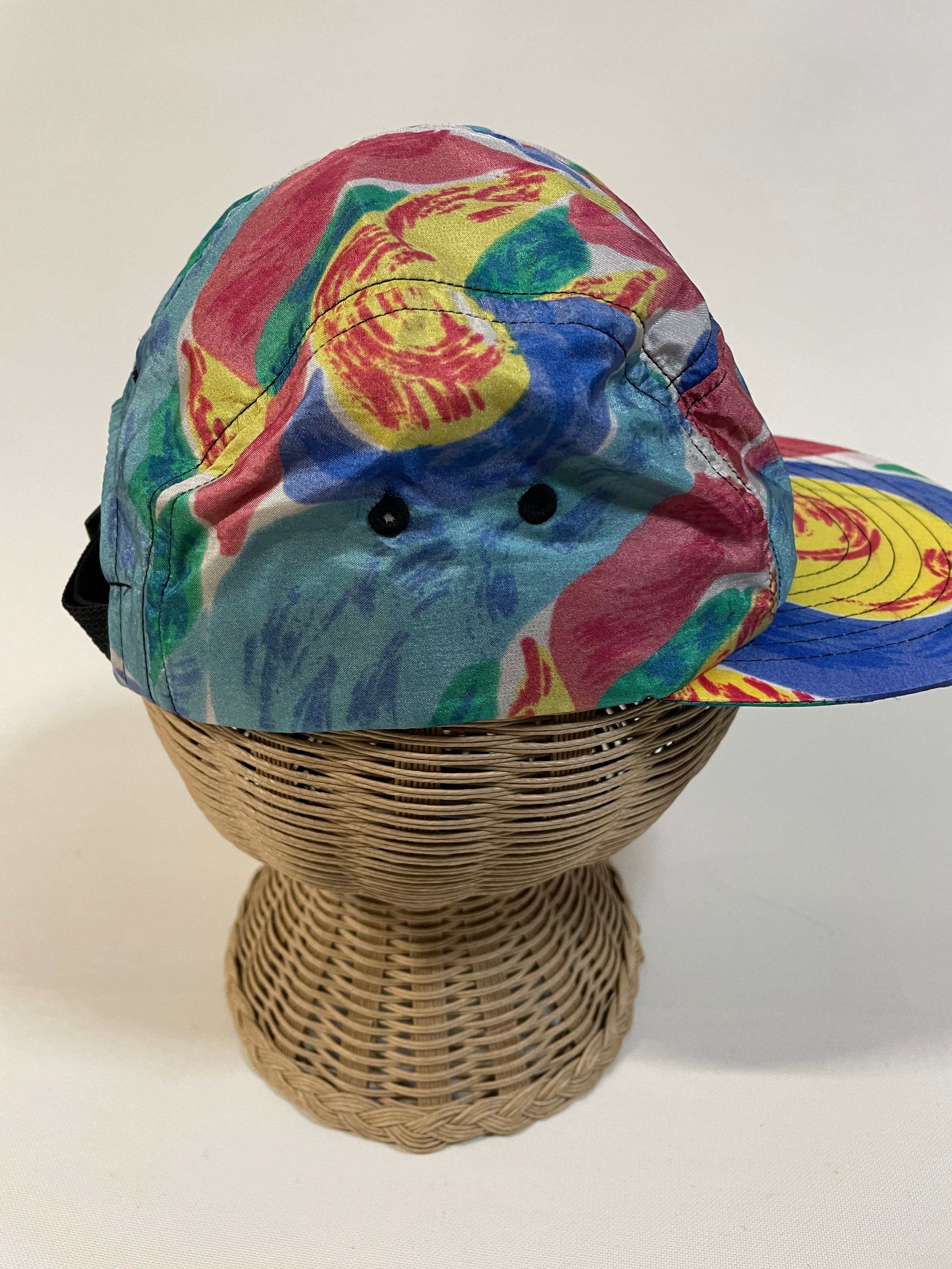 古着のレトロ柄ブルゾンを解体してジェットキャップに仕立てました。