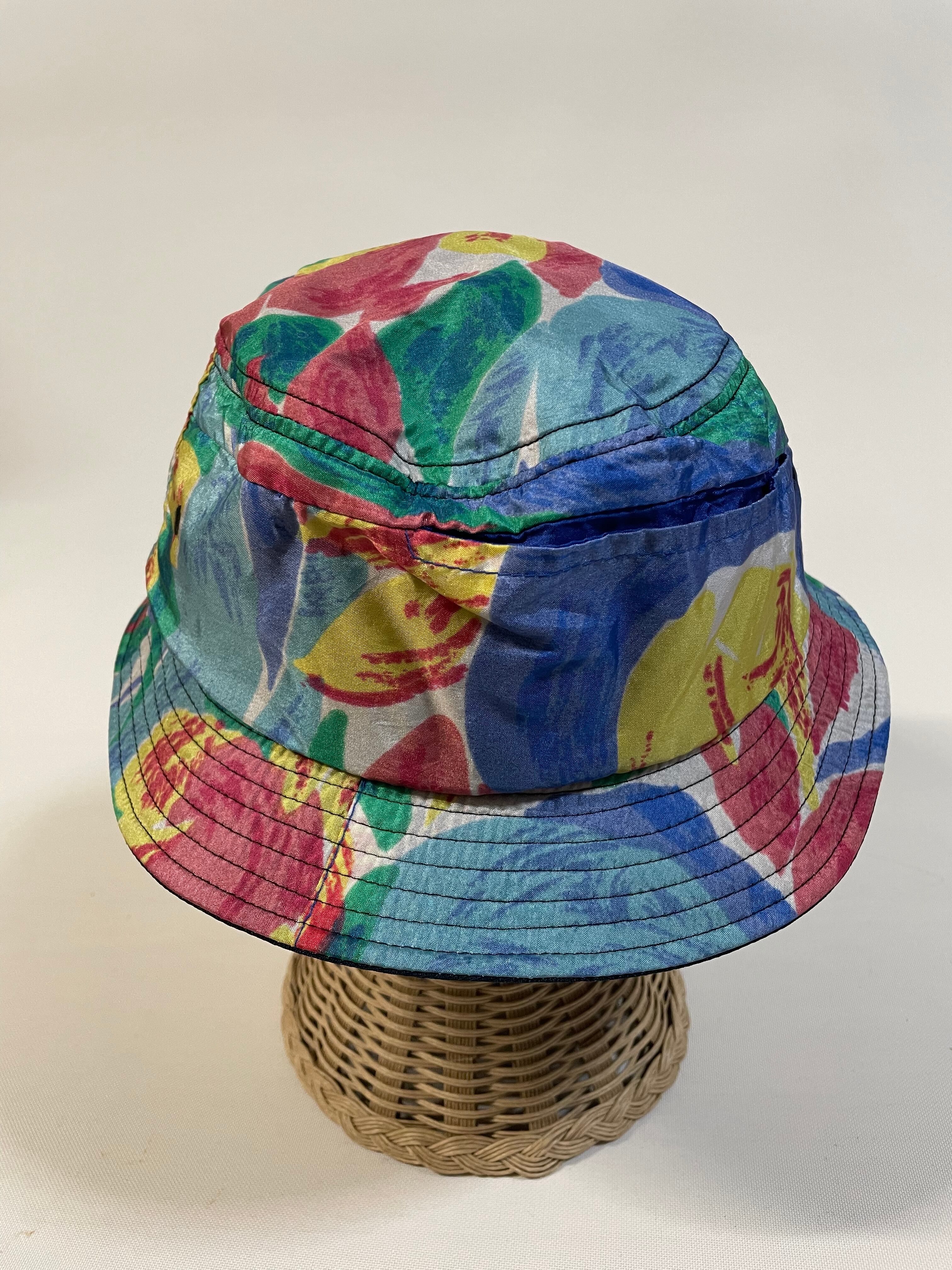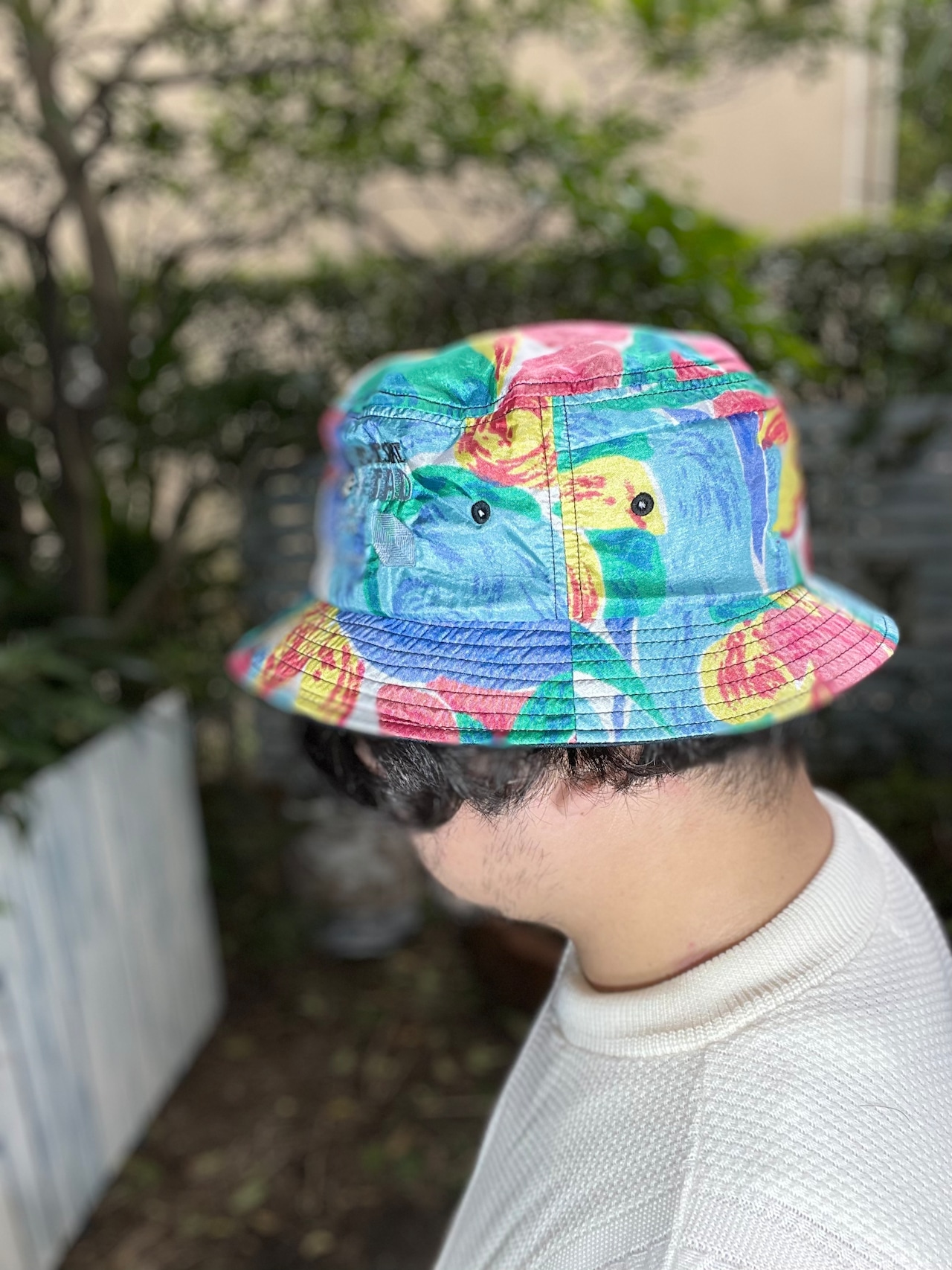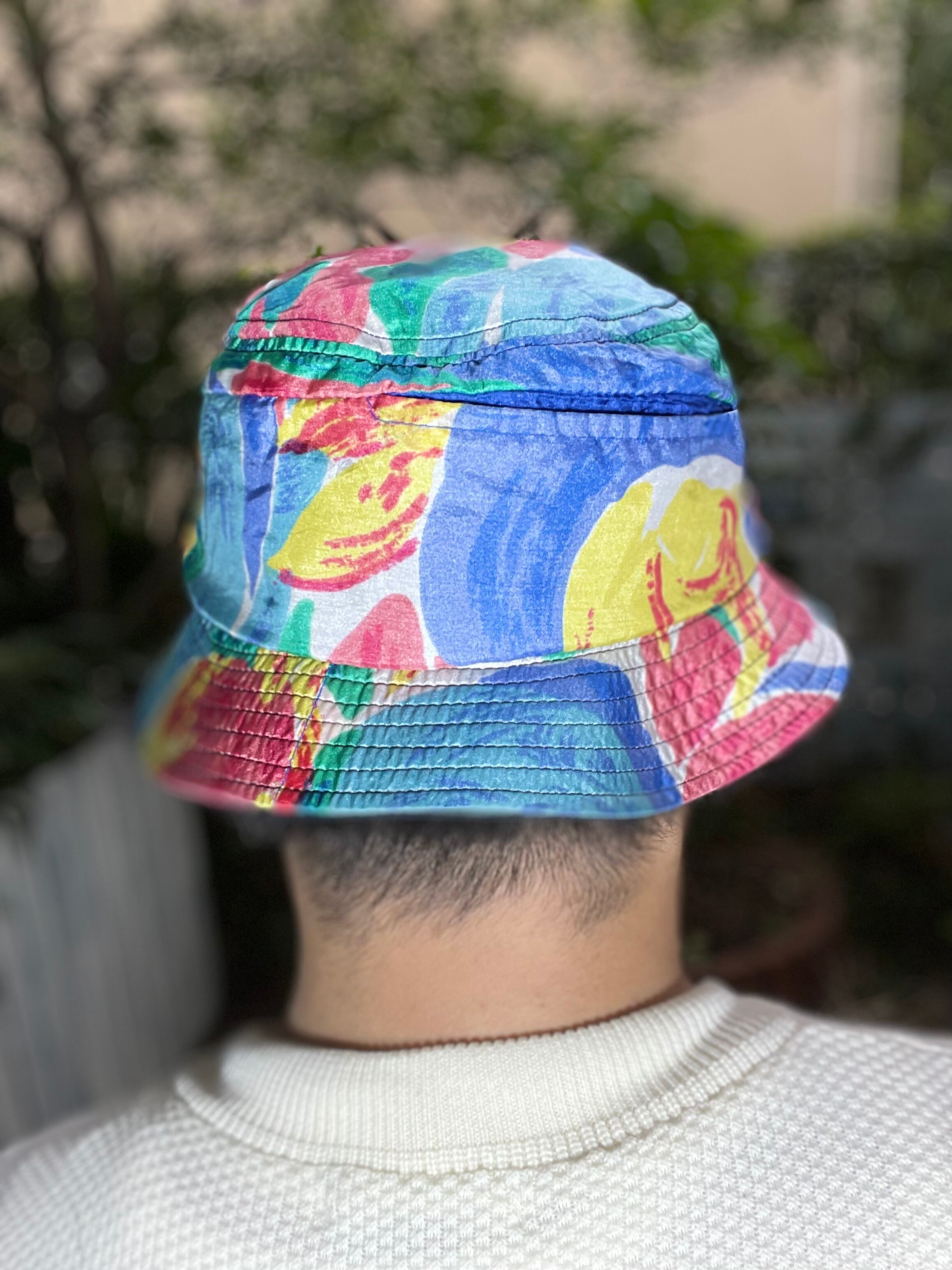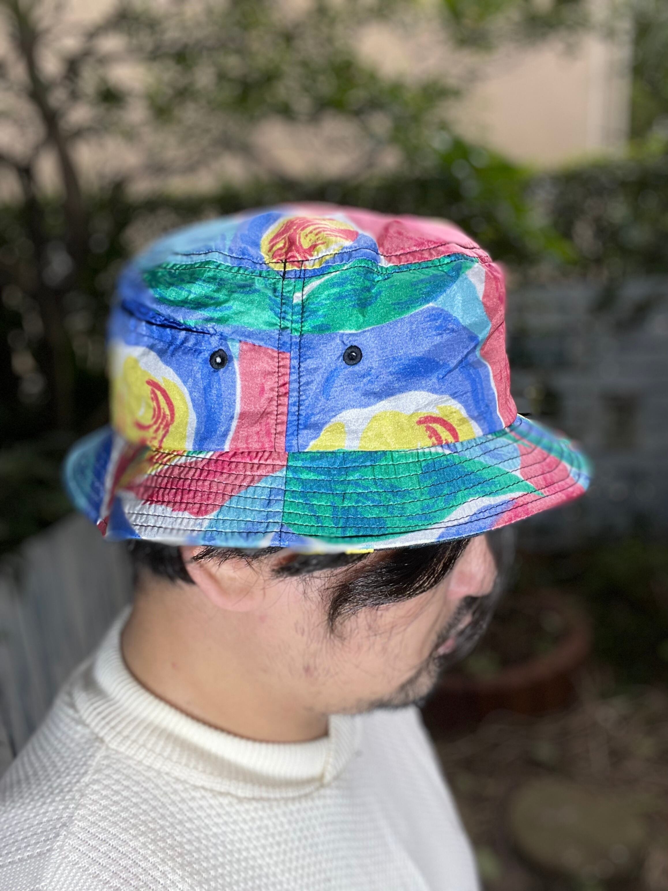 古着のレトロ柄ブルゾンを解体してバケットハットに仕立てました。
