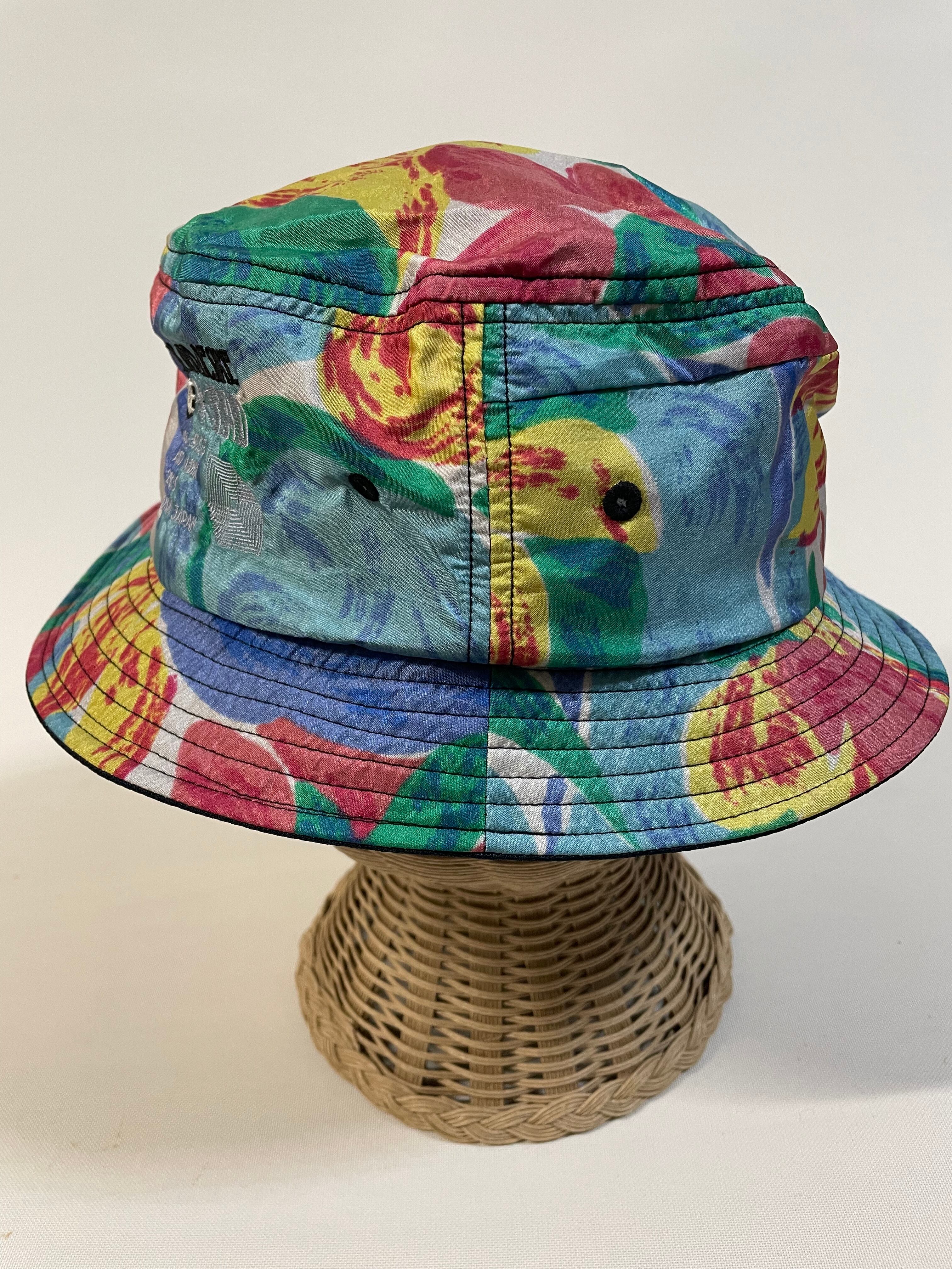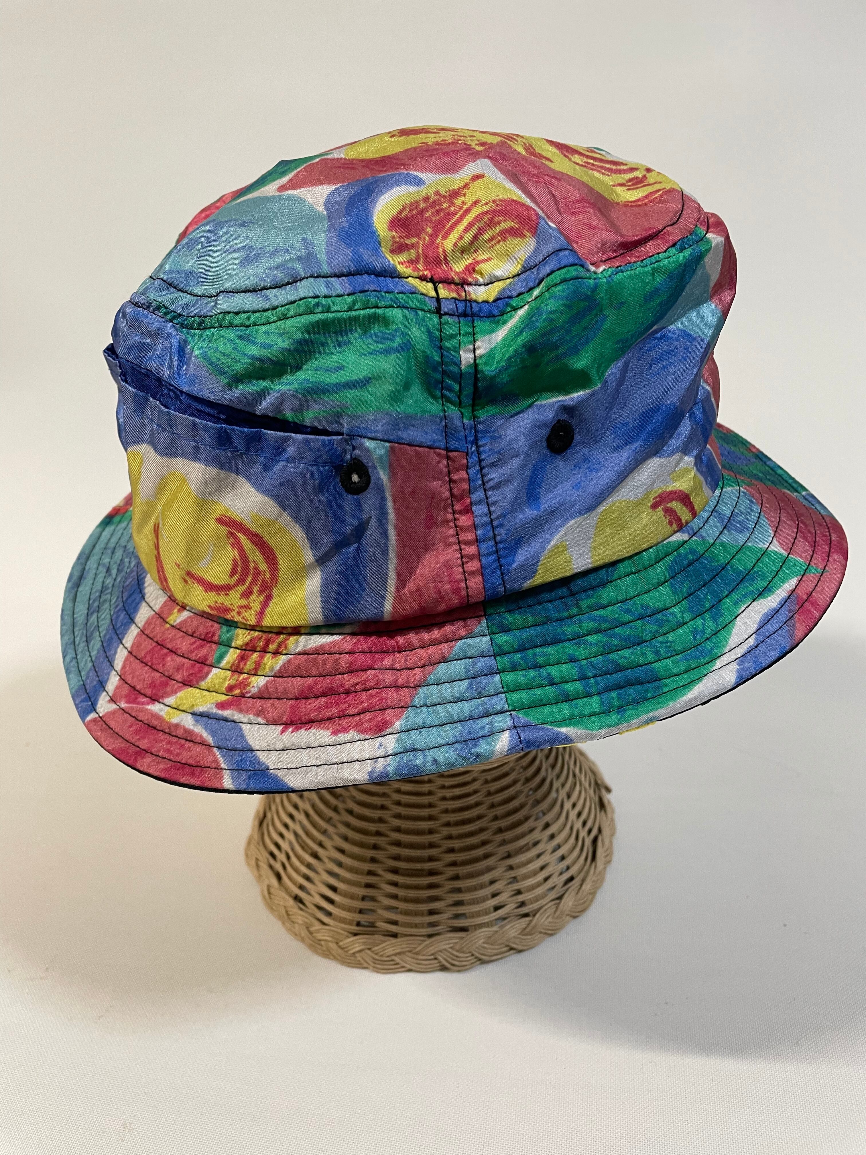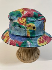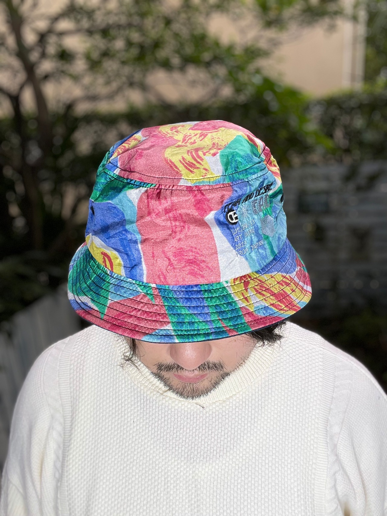 古着のレトロ柄ブルゾンを解体してバケットハットに仕立てました。