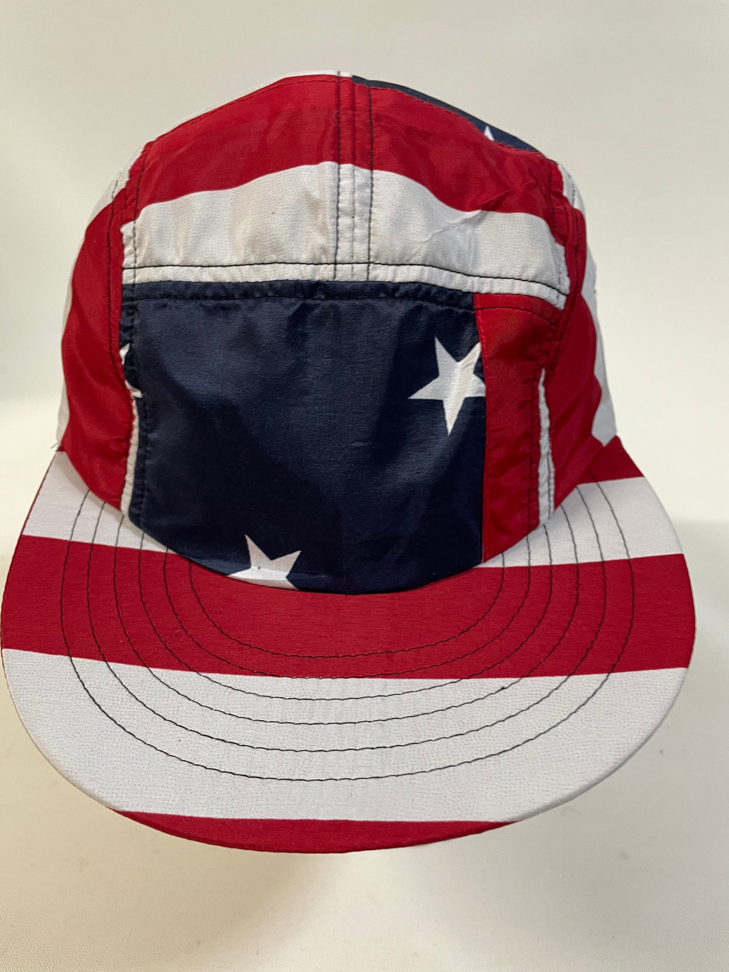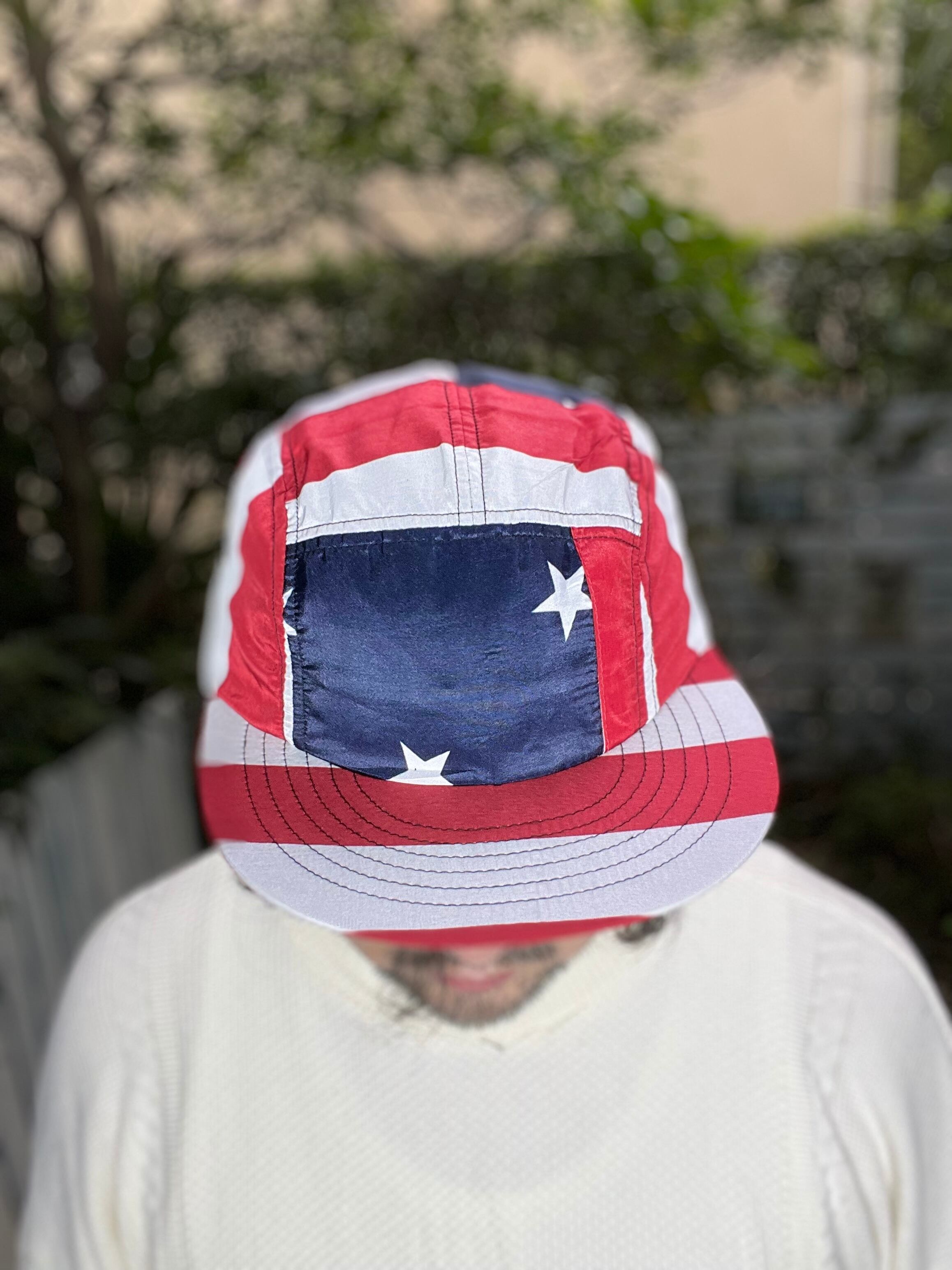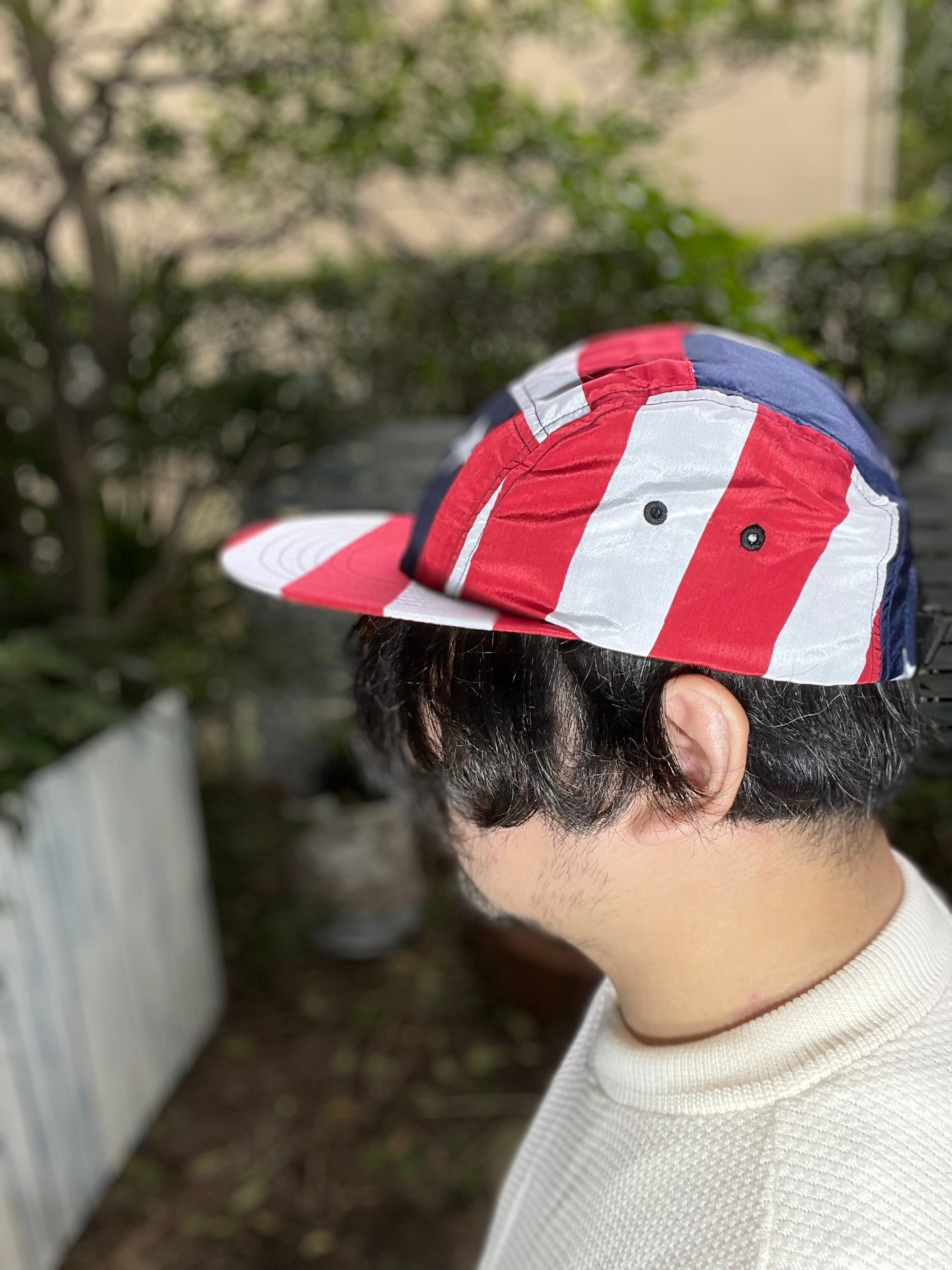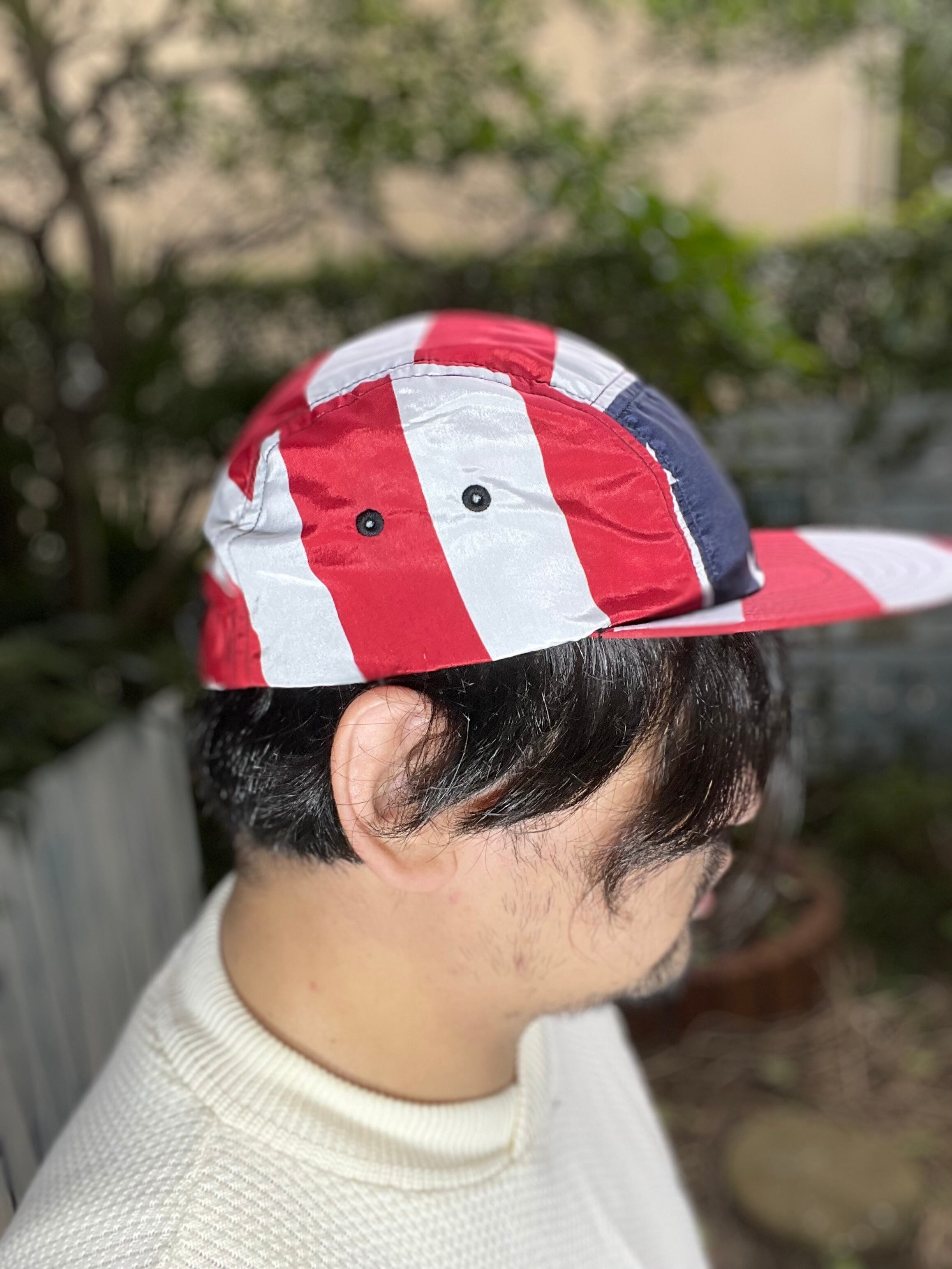 古着のレトロ柄ブルゾンを解体してジェットキャップに仕立てました。