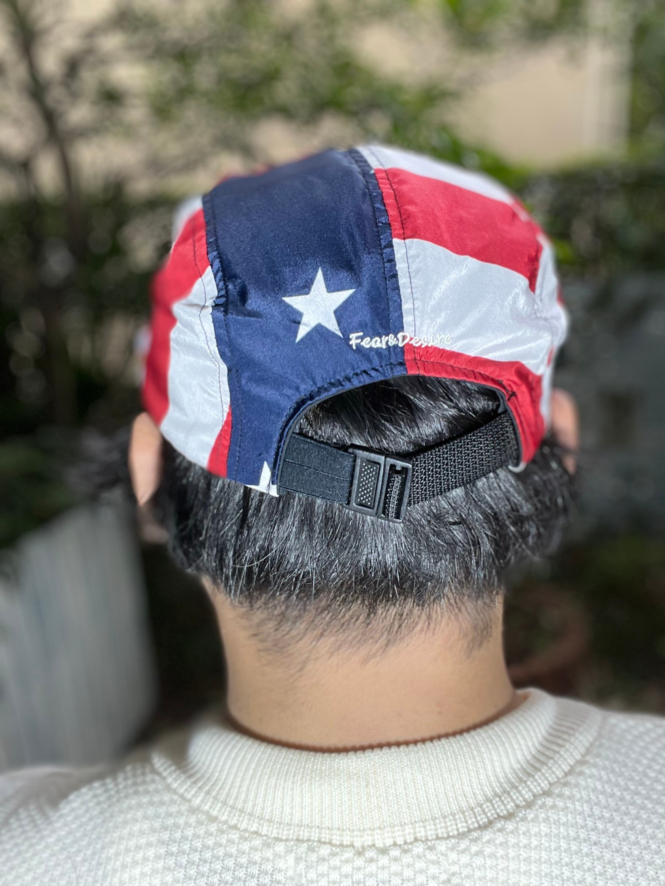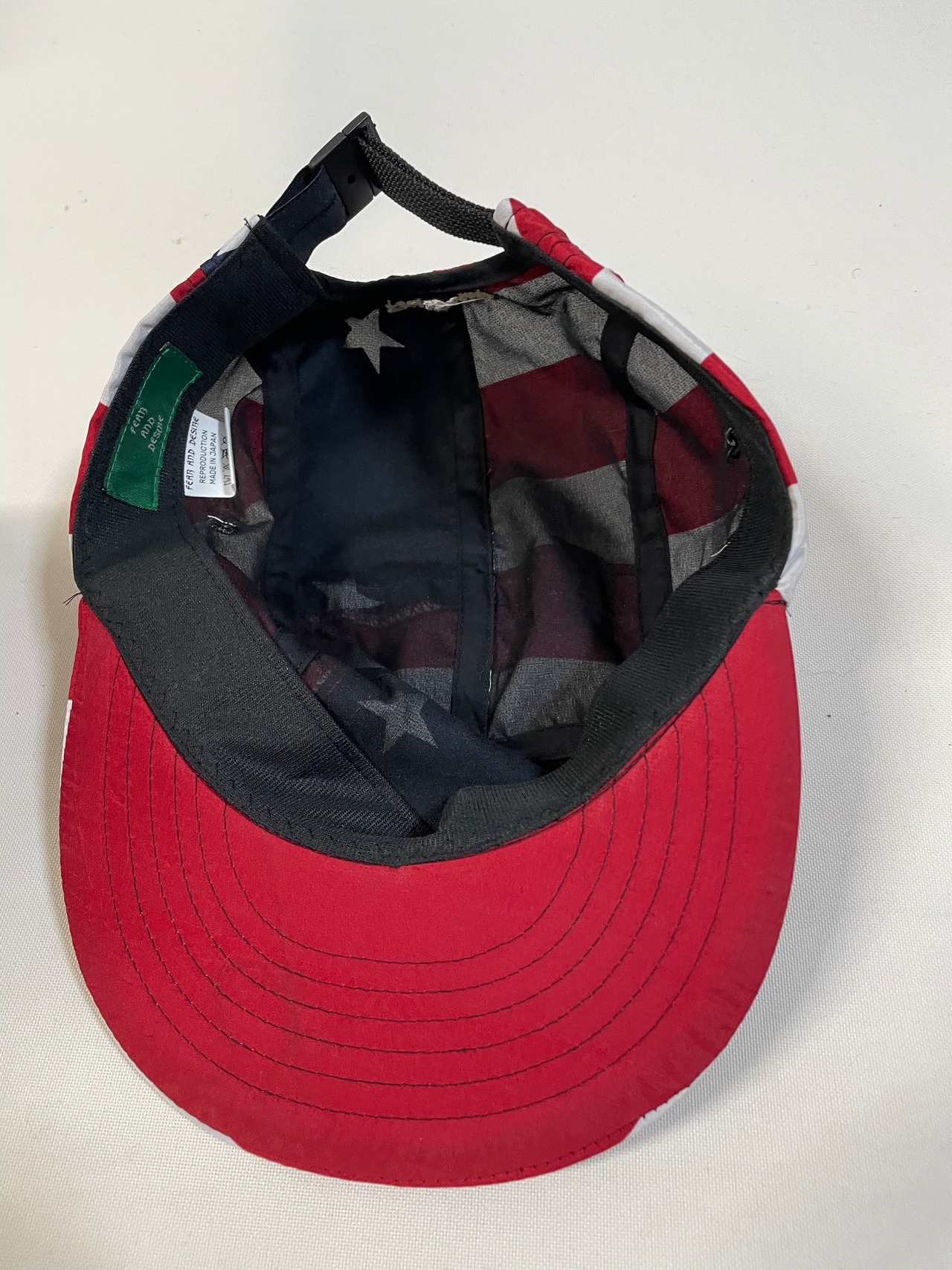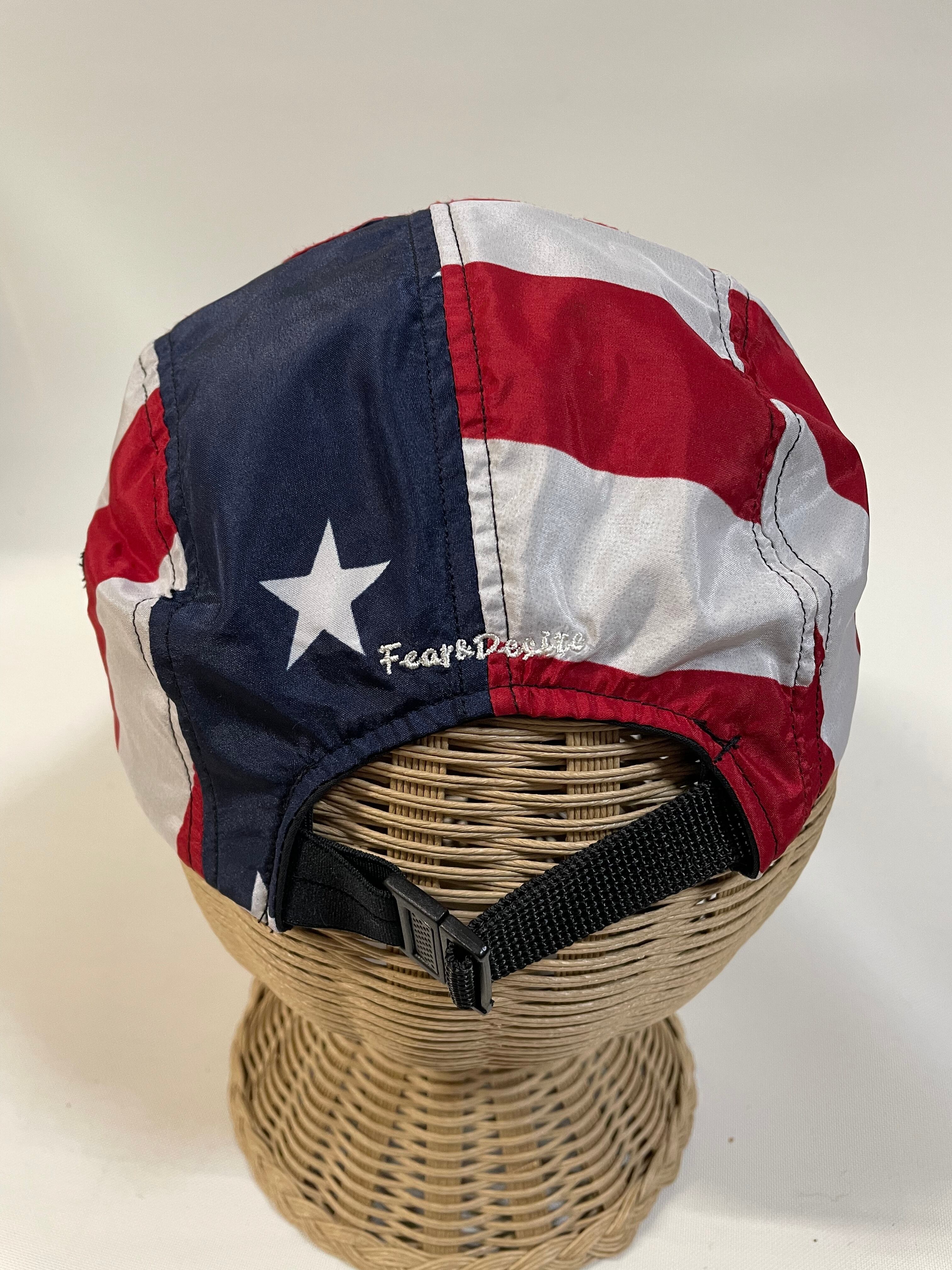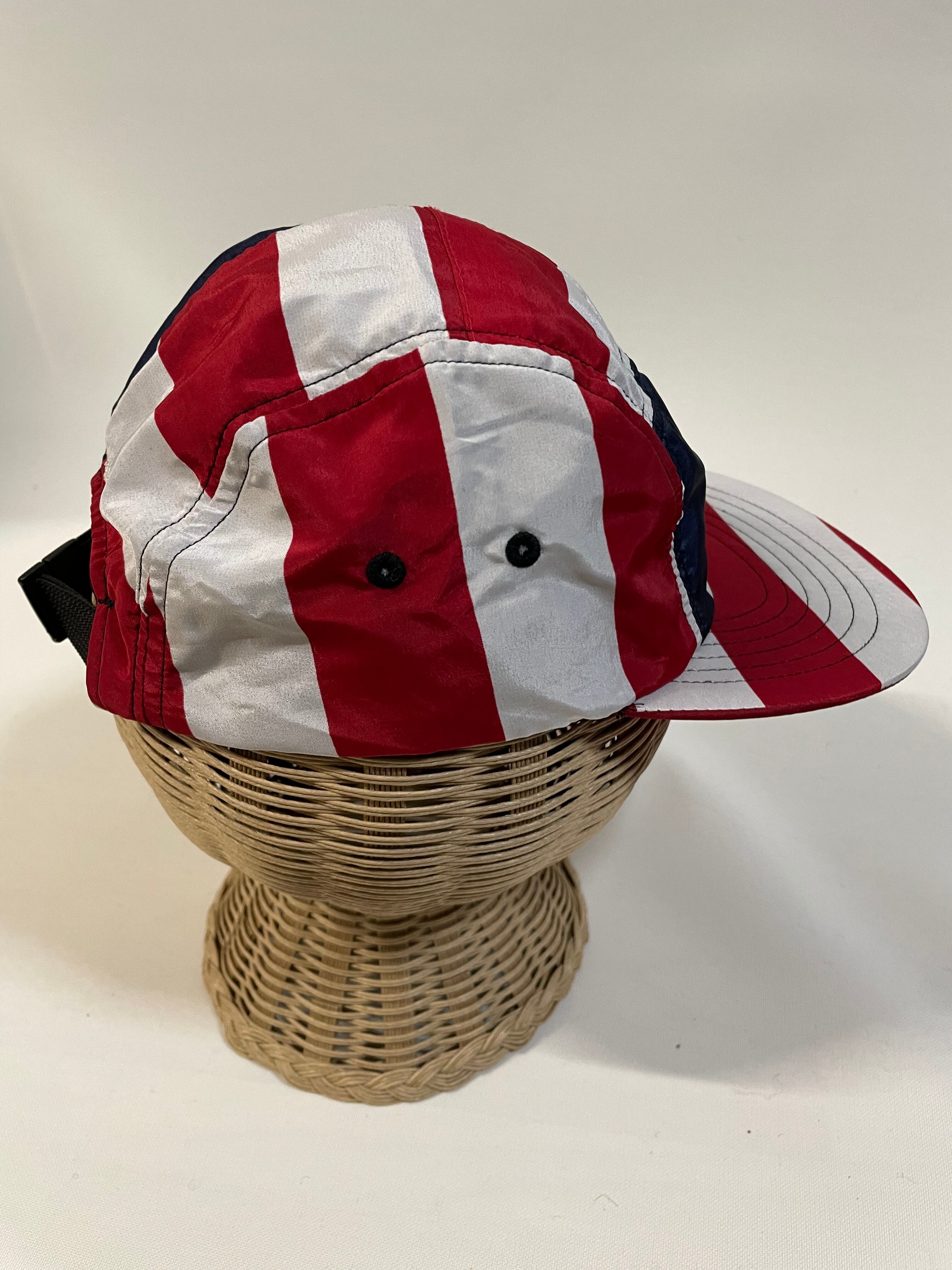 古着のレトロ柄ブルゾンを解体してジェットキャップに仕立てました。