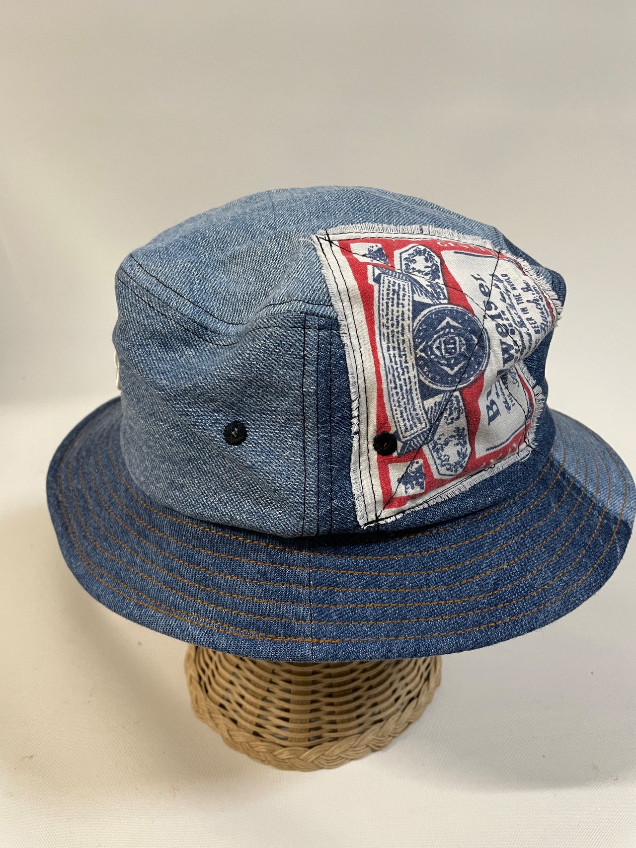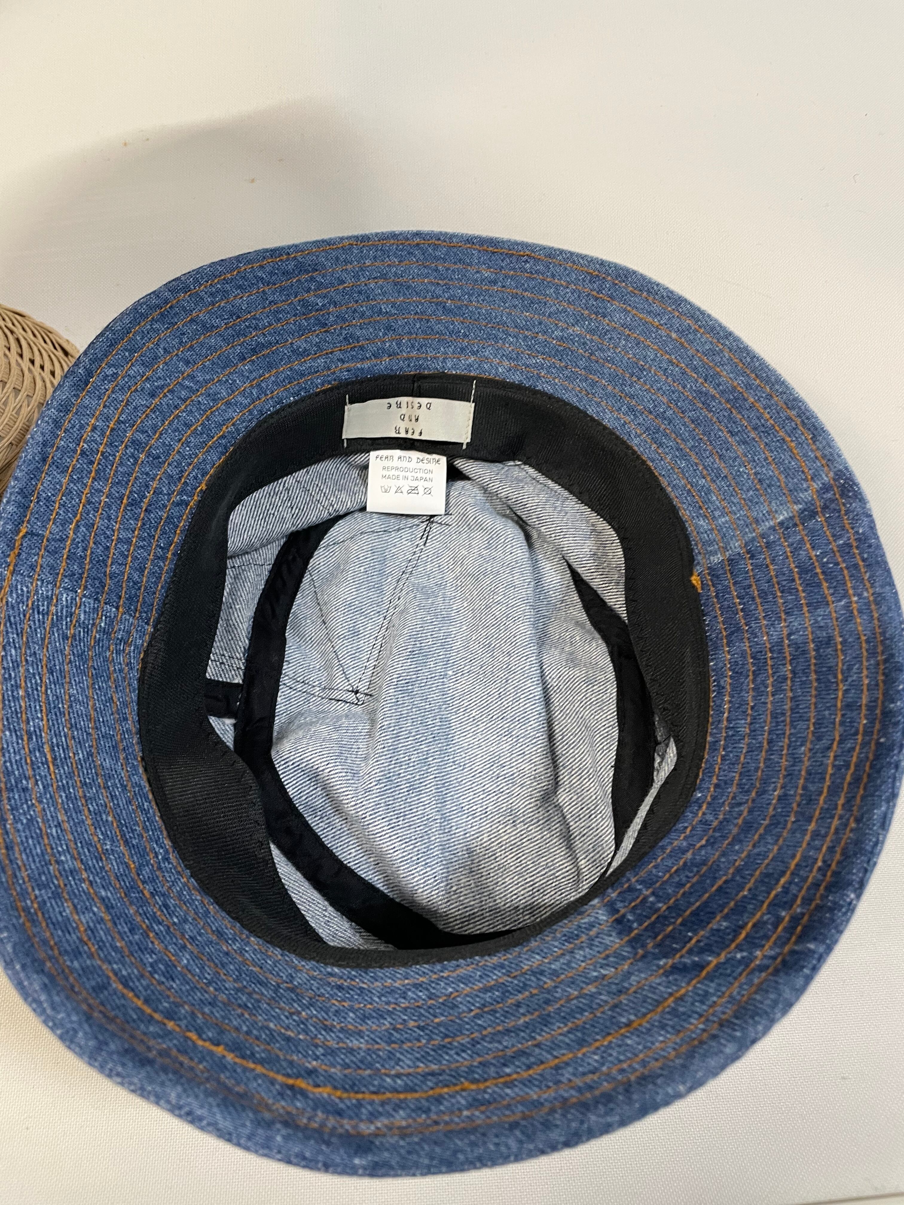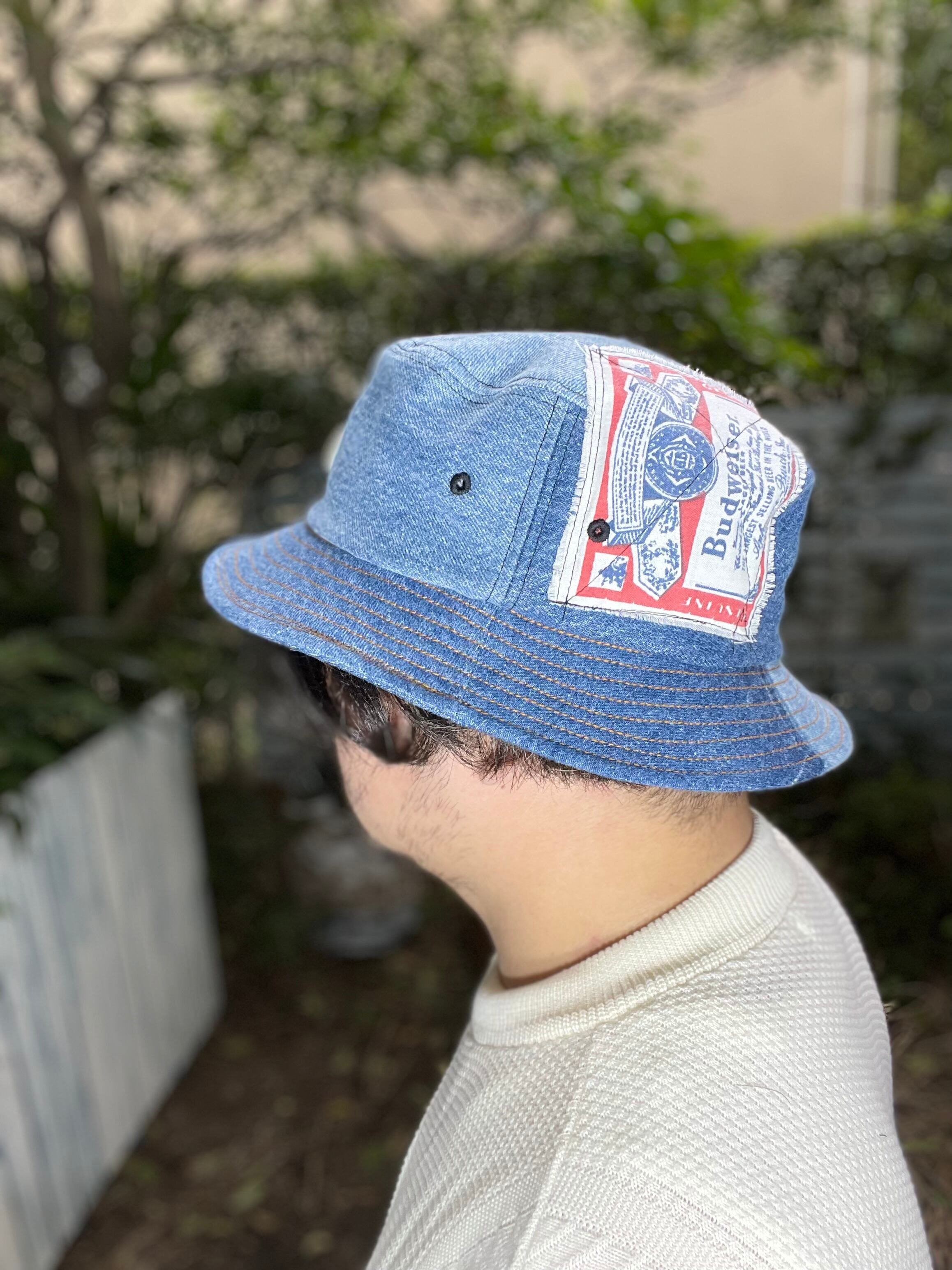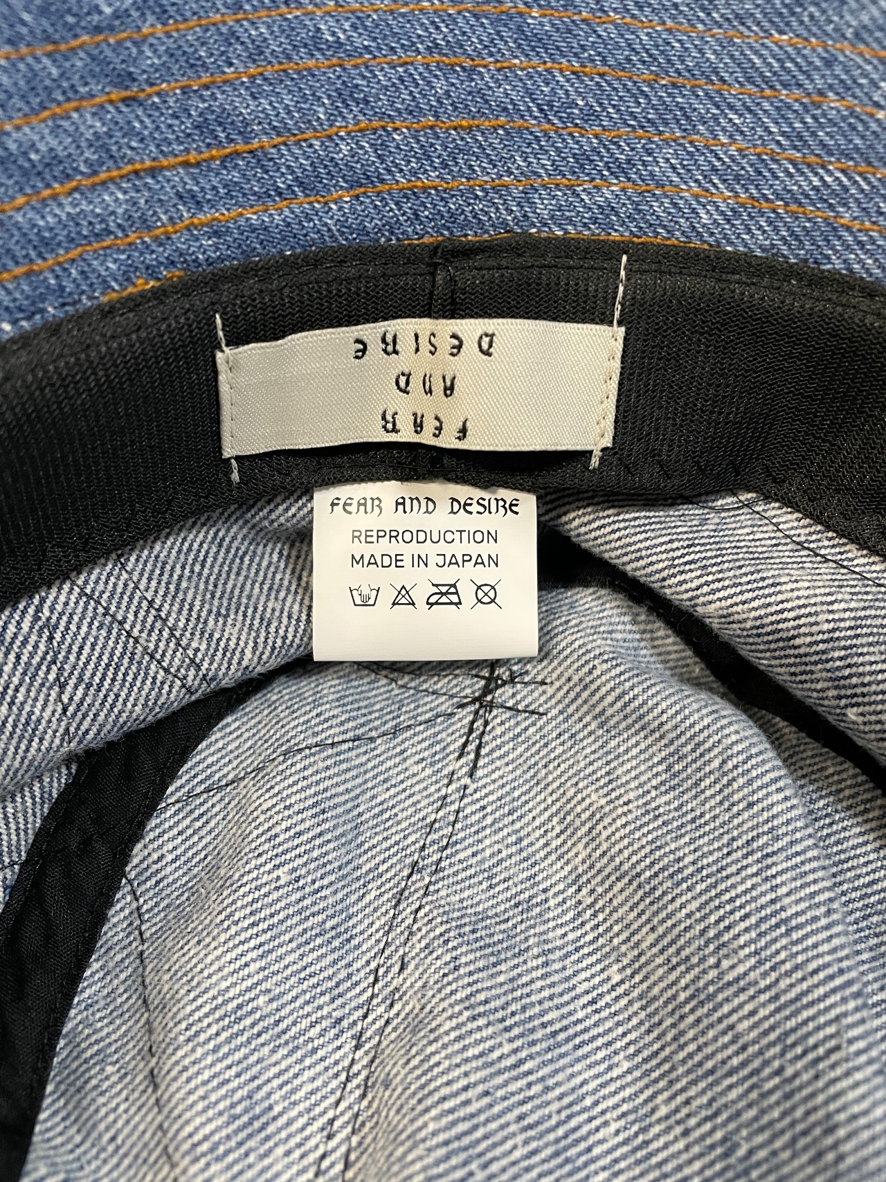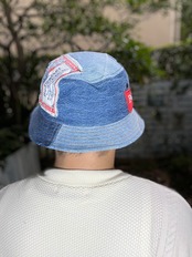 古着のデニムパンツを解体してバケットハットに仕立てました。