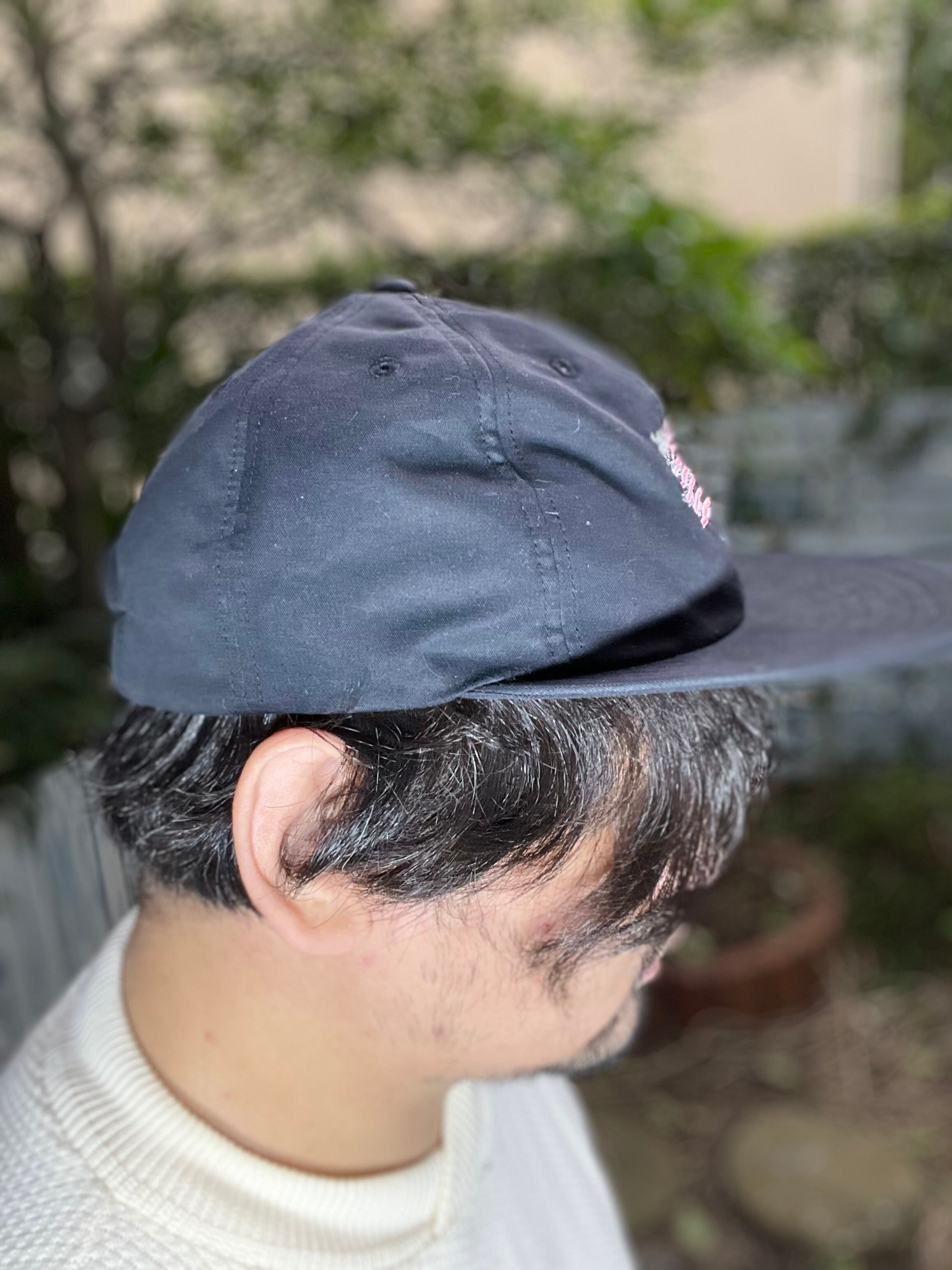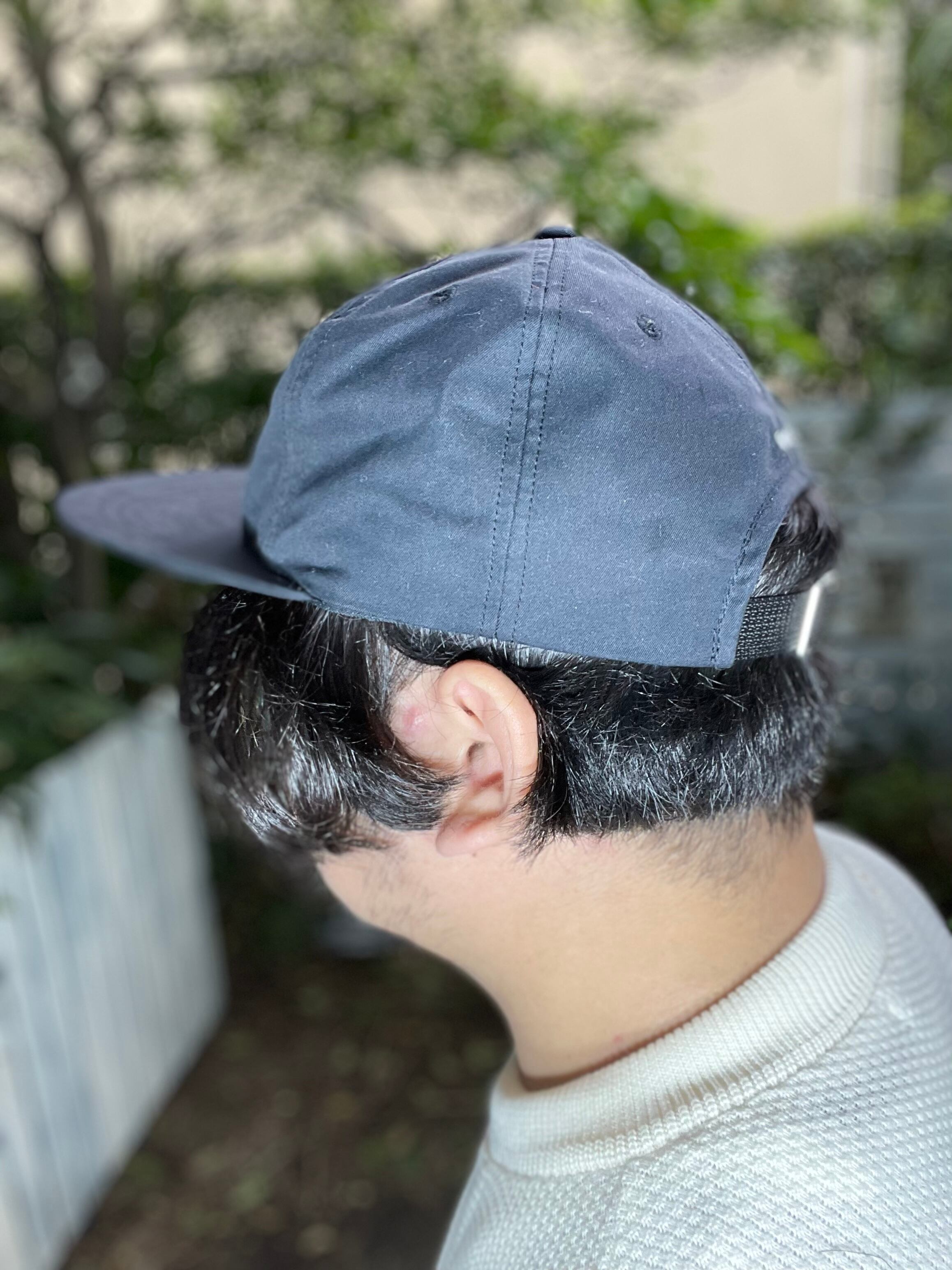 古着のトレンチコートに着目し、ヴィンテージライクなシャンブレーツイル生地を用いて平ツバのキャップに仕立てました。