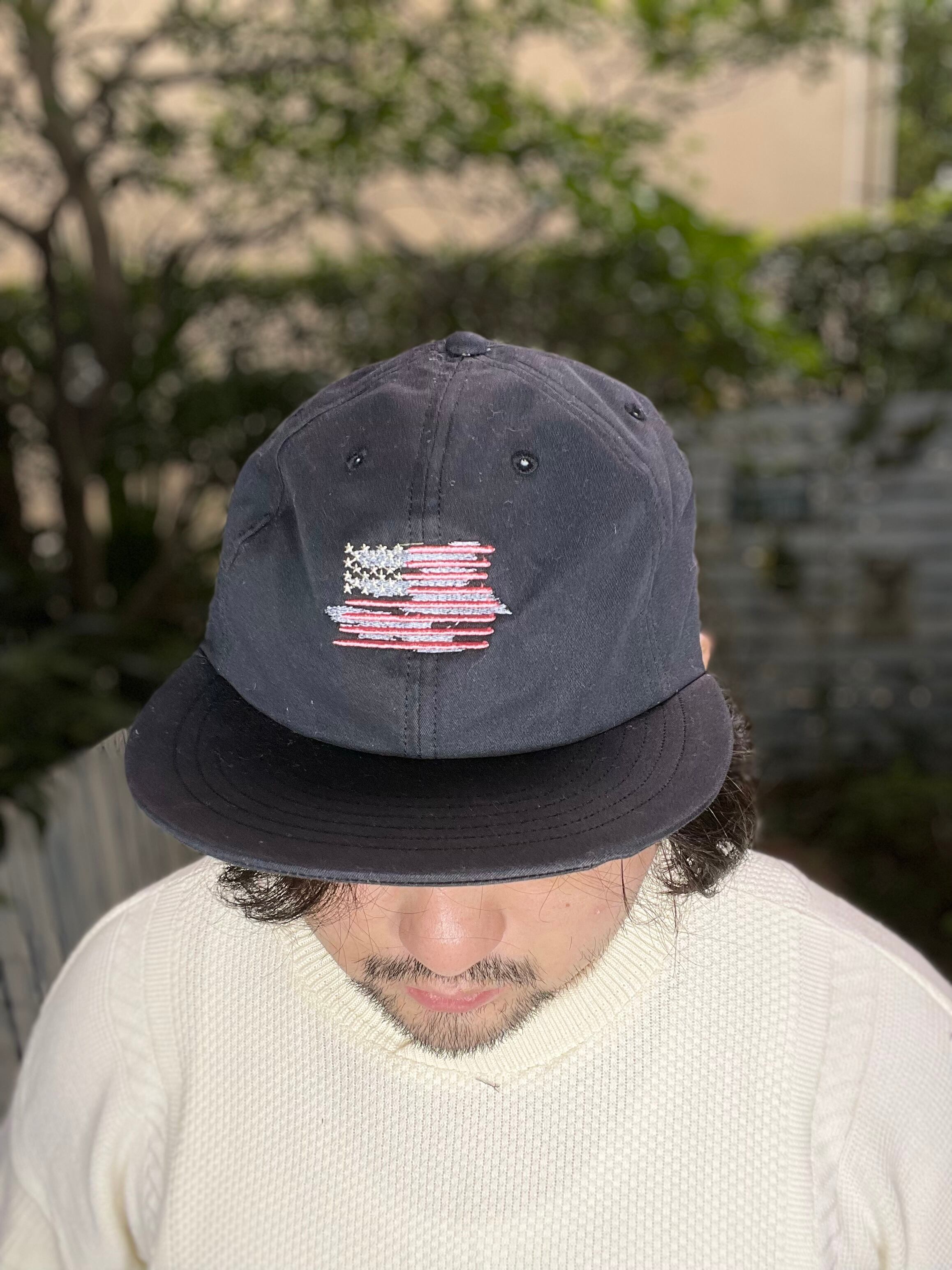 正面にはヴィンテージワッペンが縫い付けられ、後部にはワンポイントでロゴ刺繍が入っています。