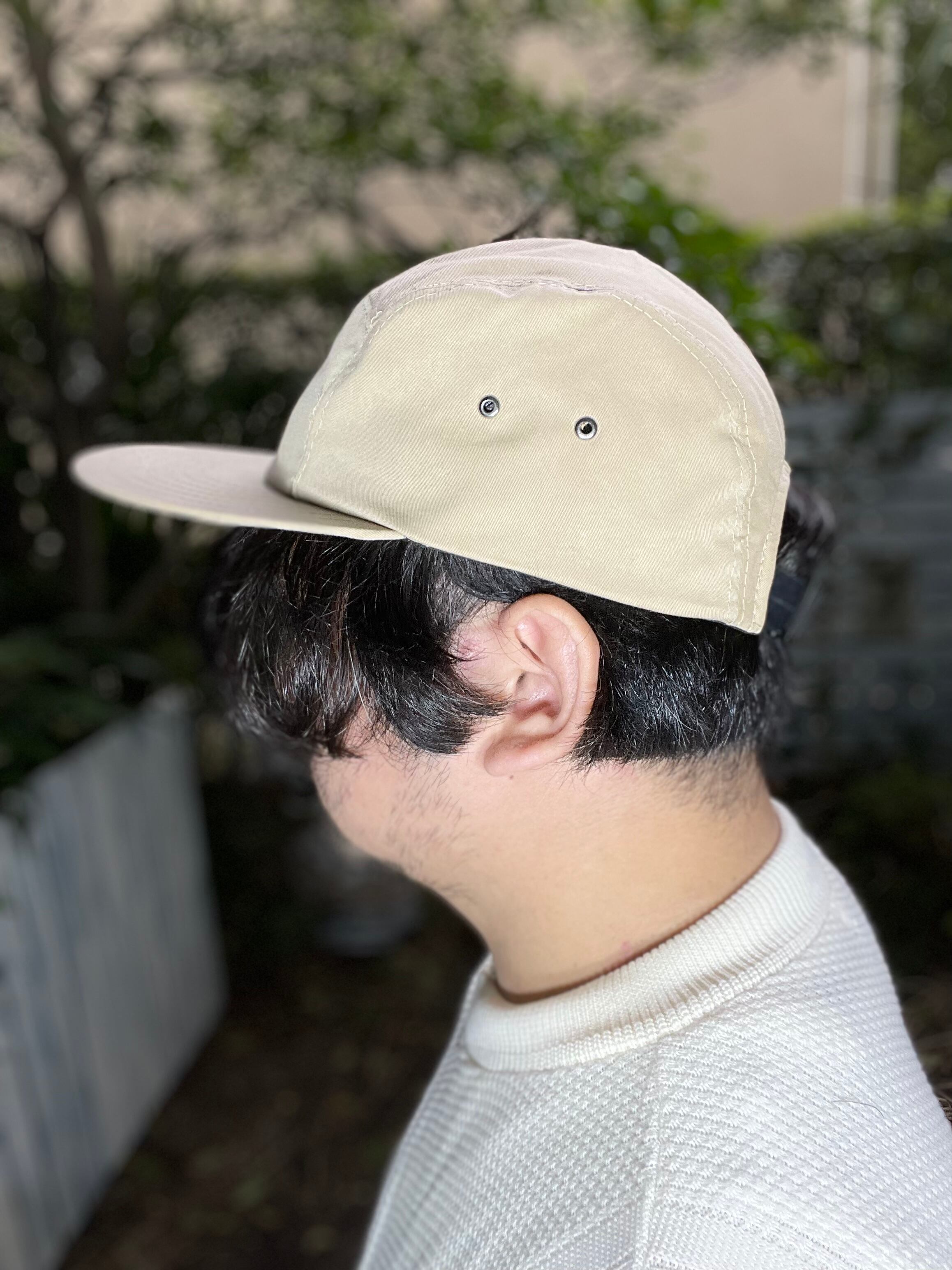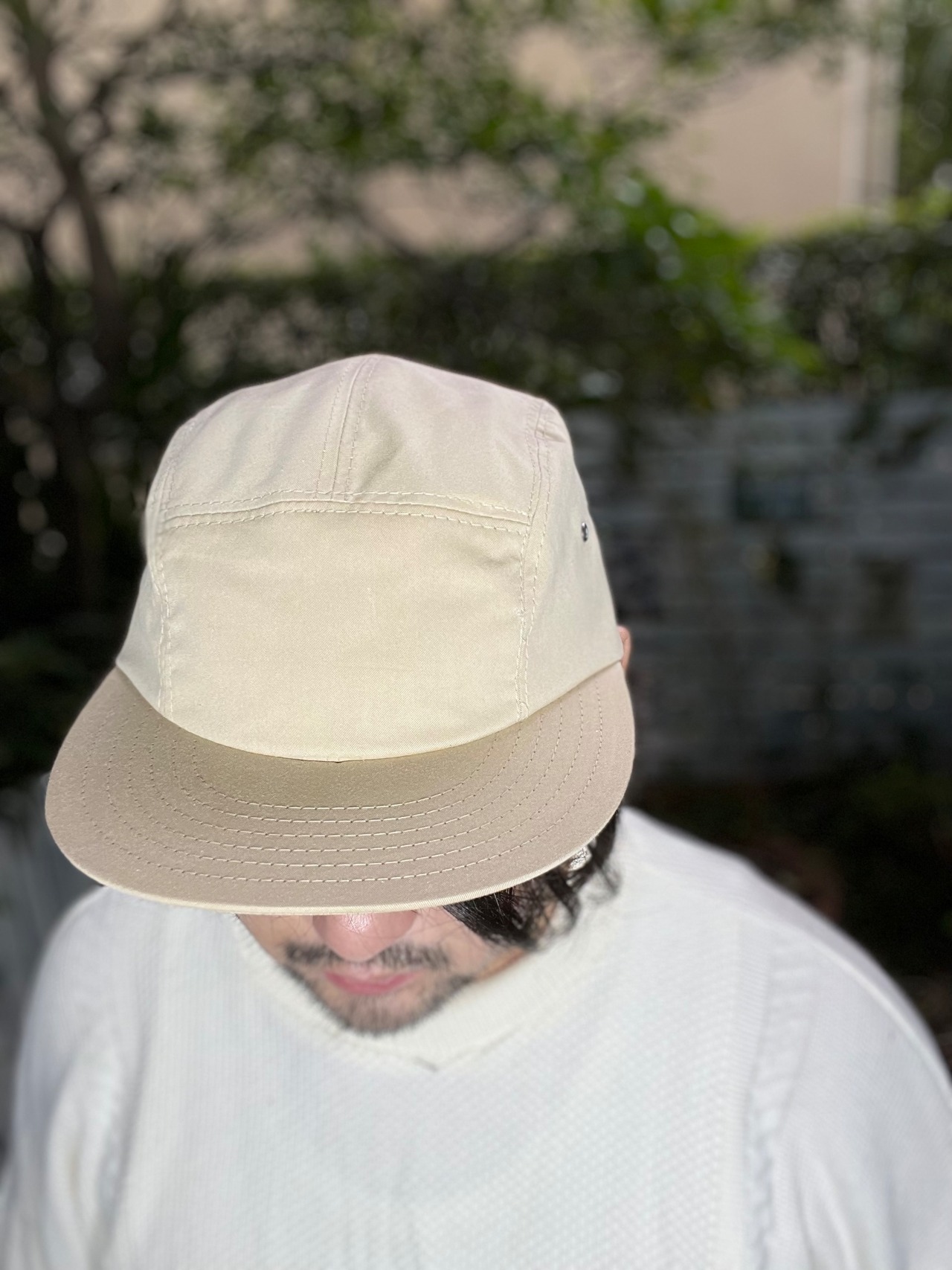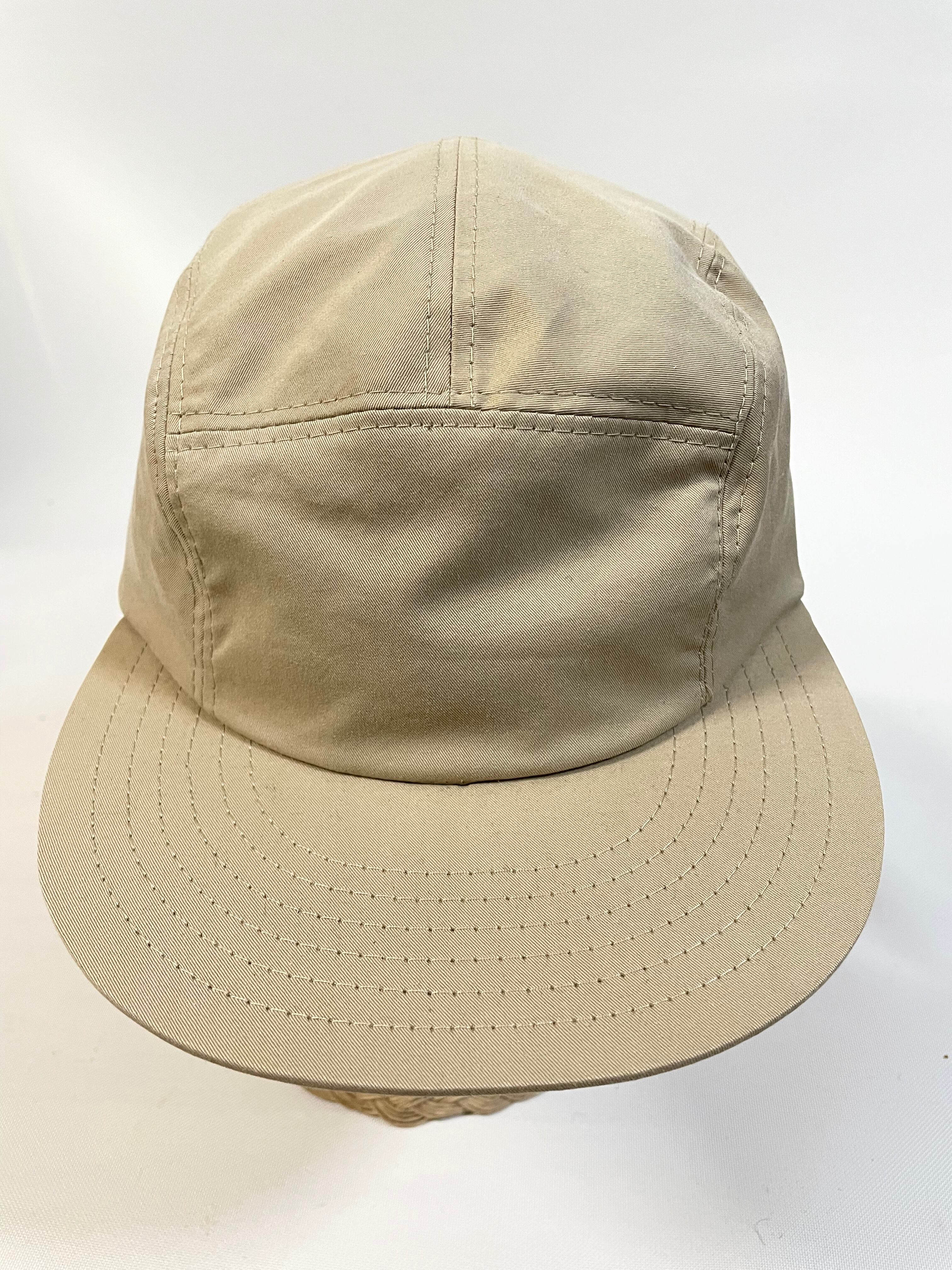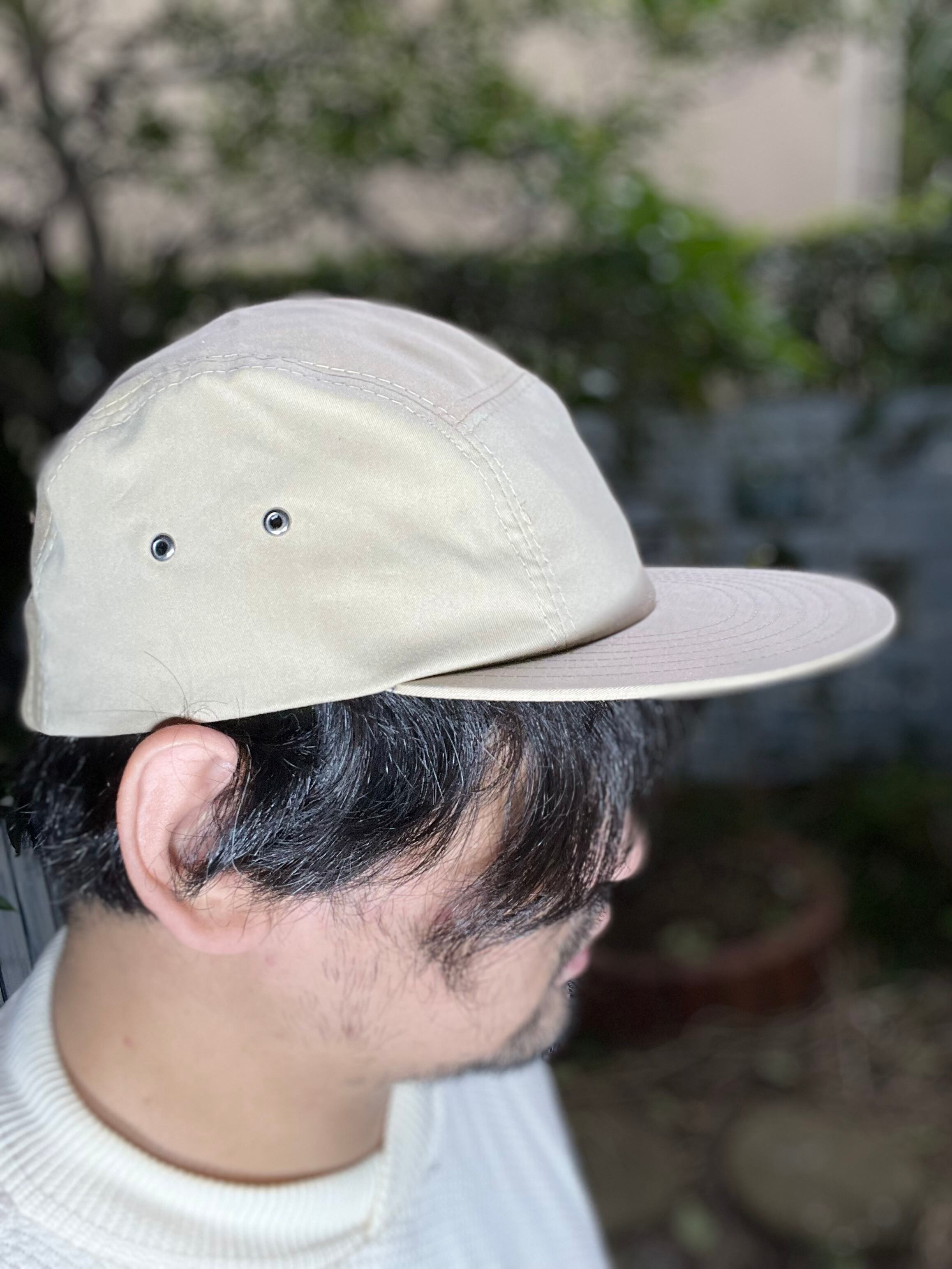 古着のトレンチコートに着目し、ヴィンテージライクなシャンブレーツイル生地を用いてジェットキャップに仕立てました。
