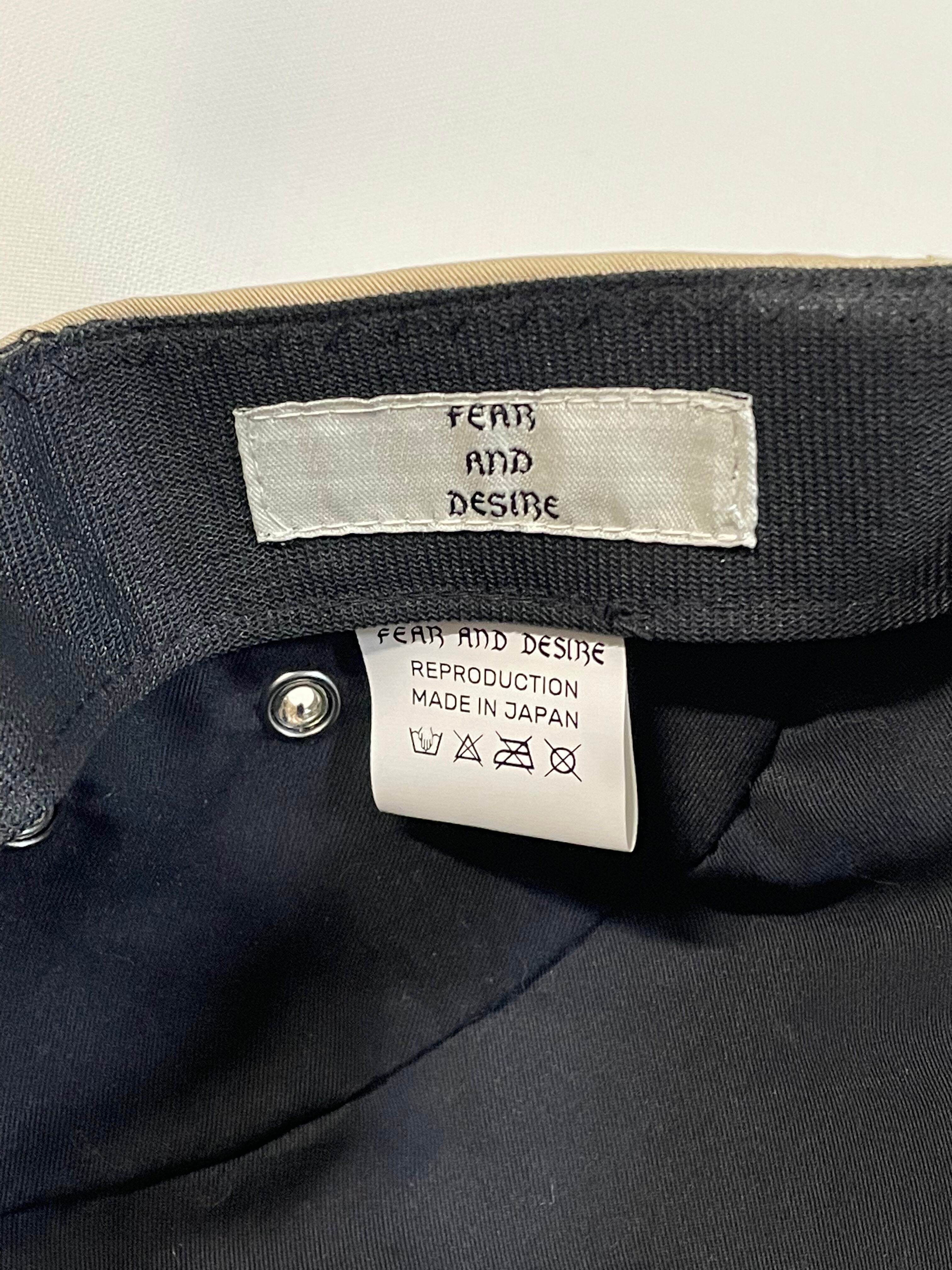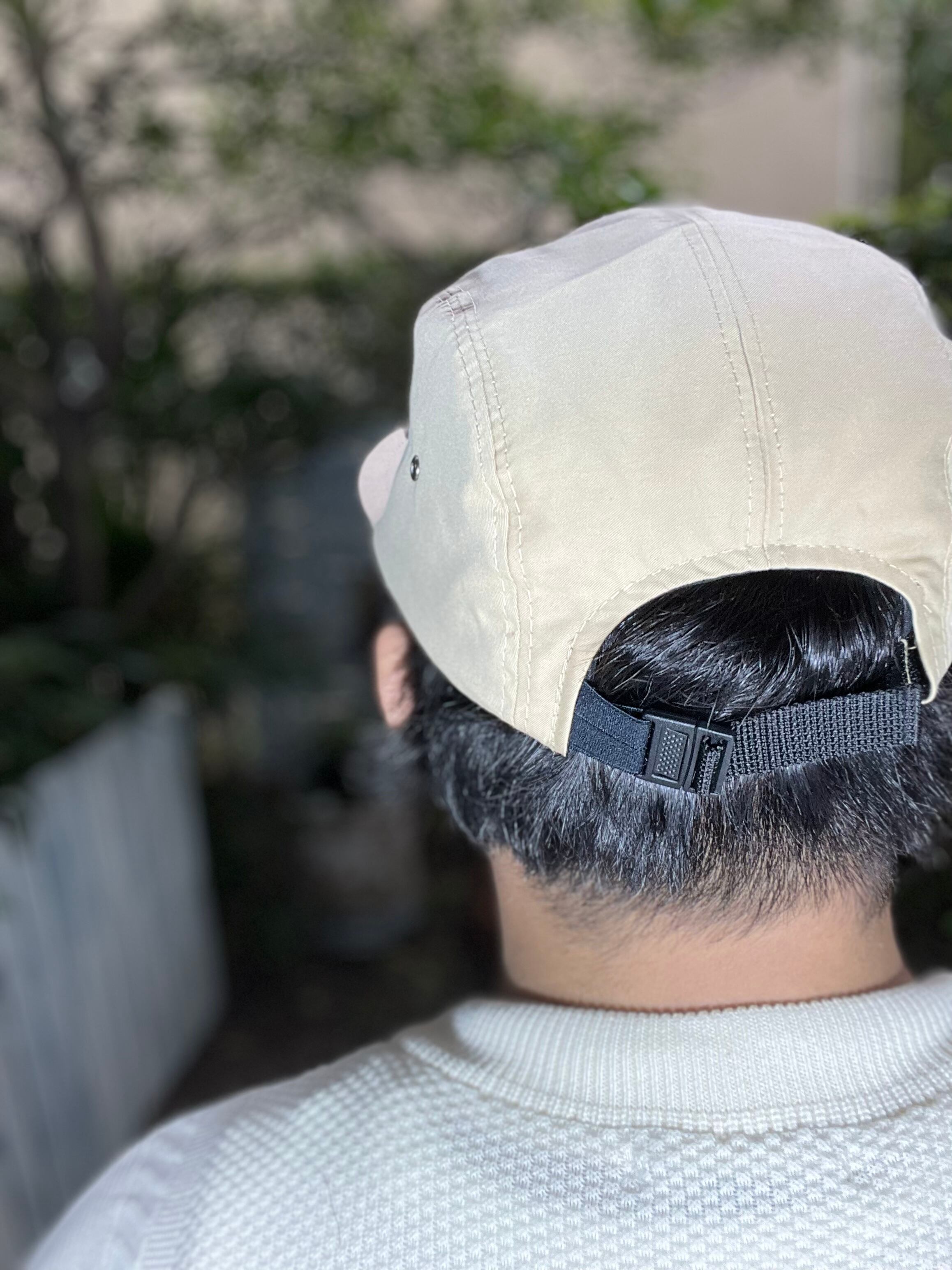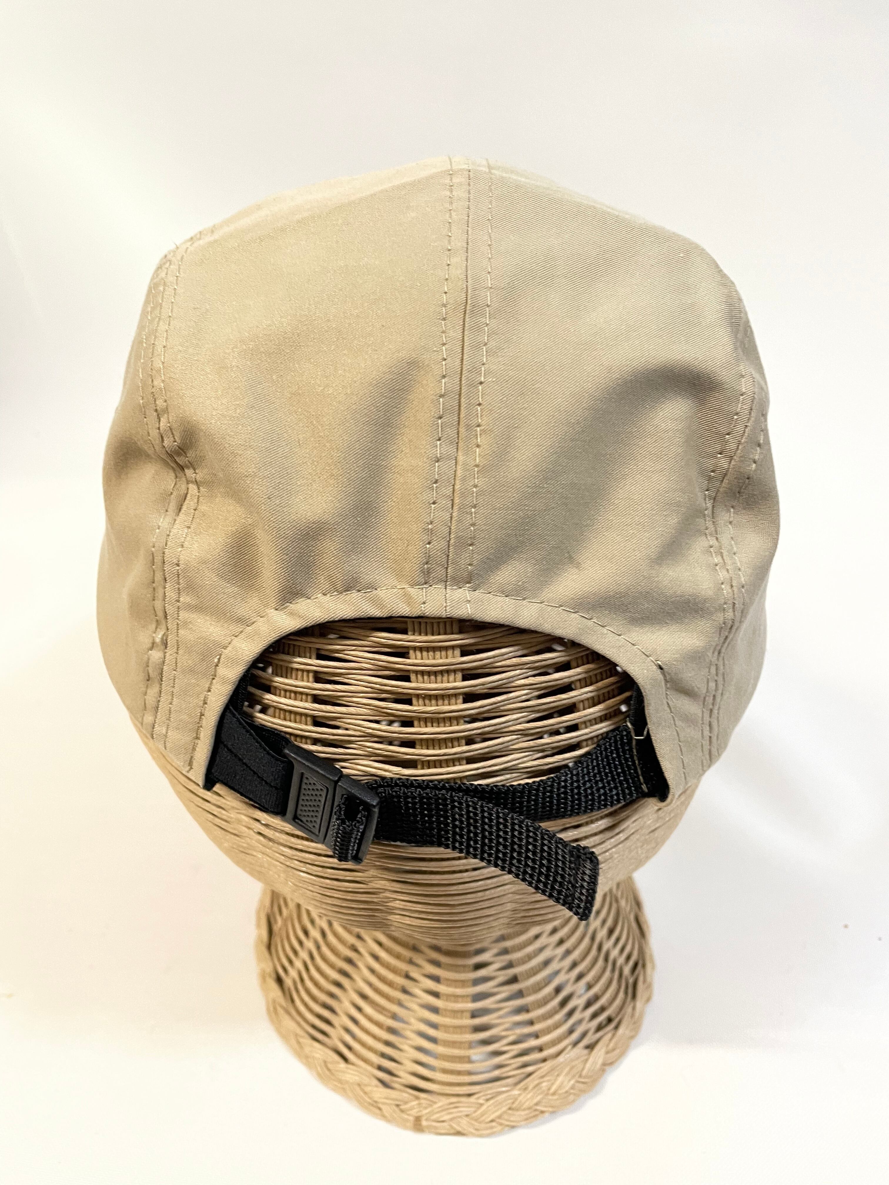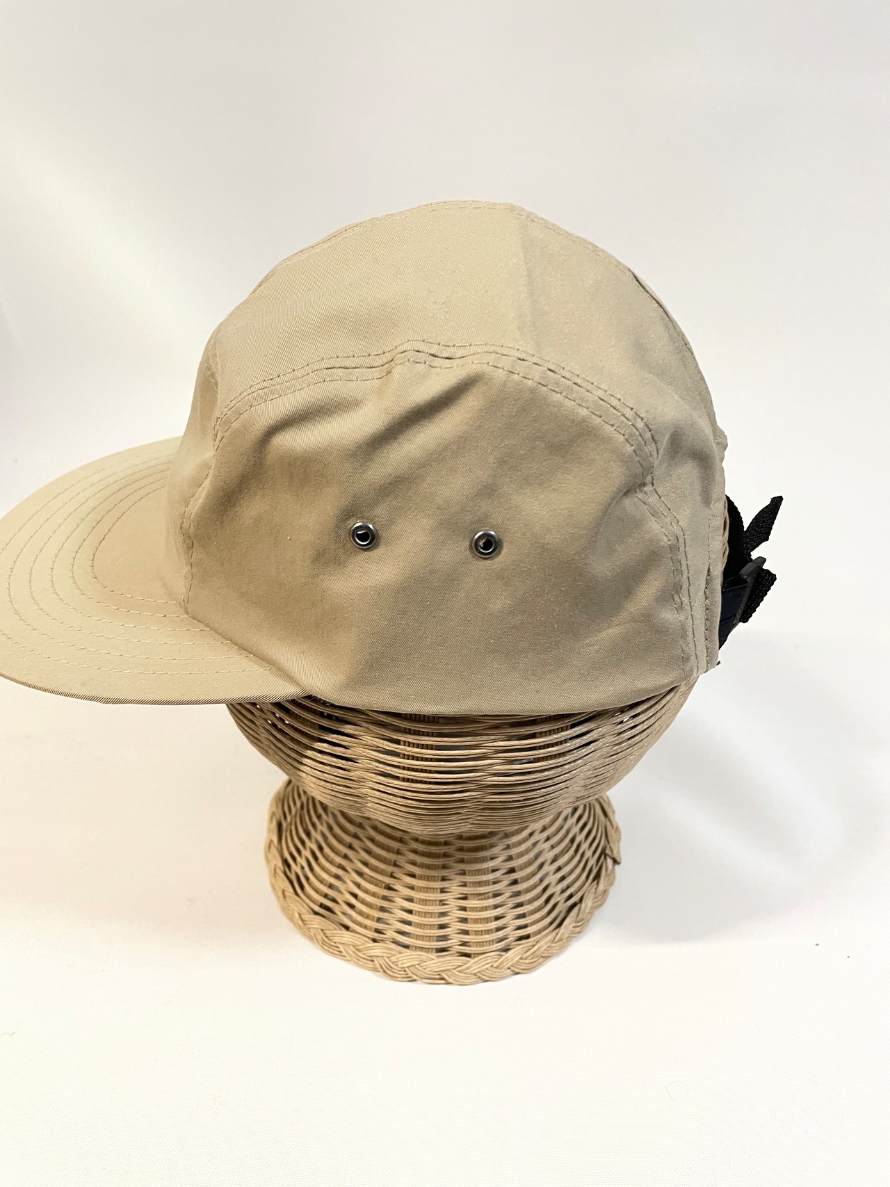 古着のトレンチコートに着目し、ヴィンテージライクなシャンブレーツイル生地を用いてジェットキャップに仕立てました。