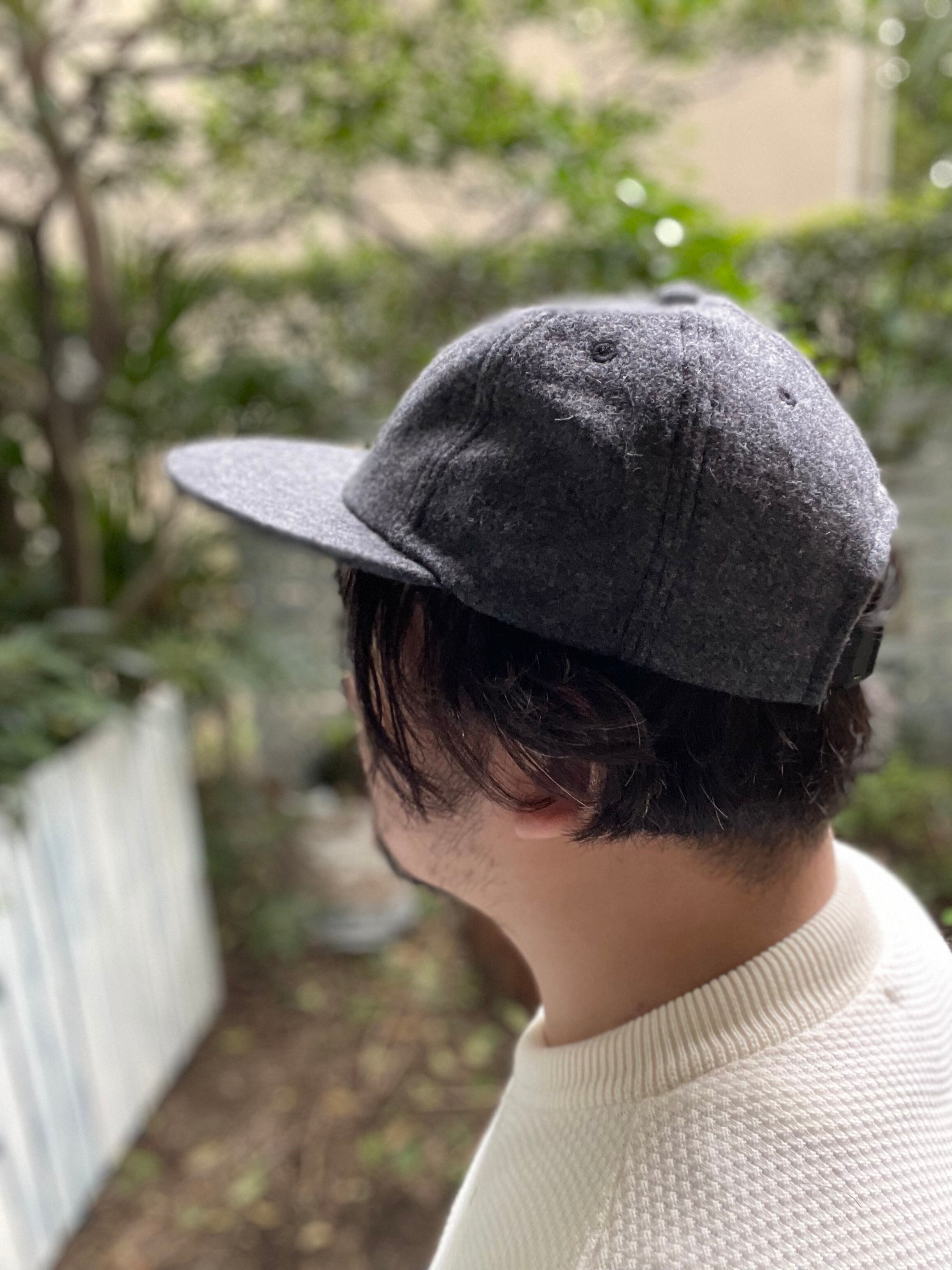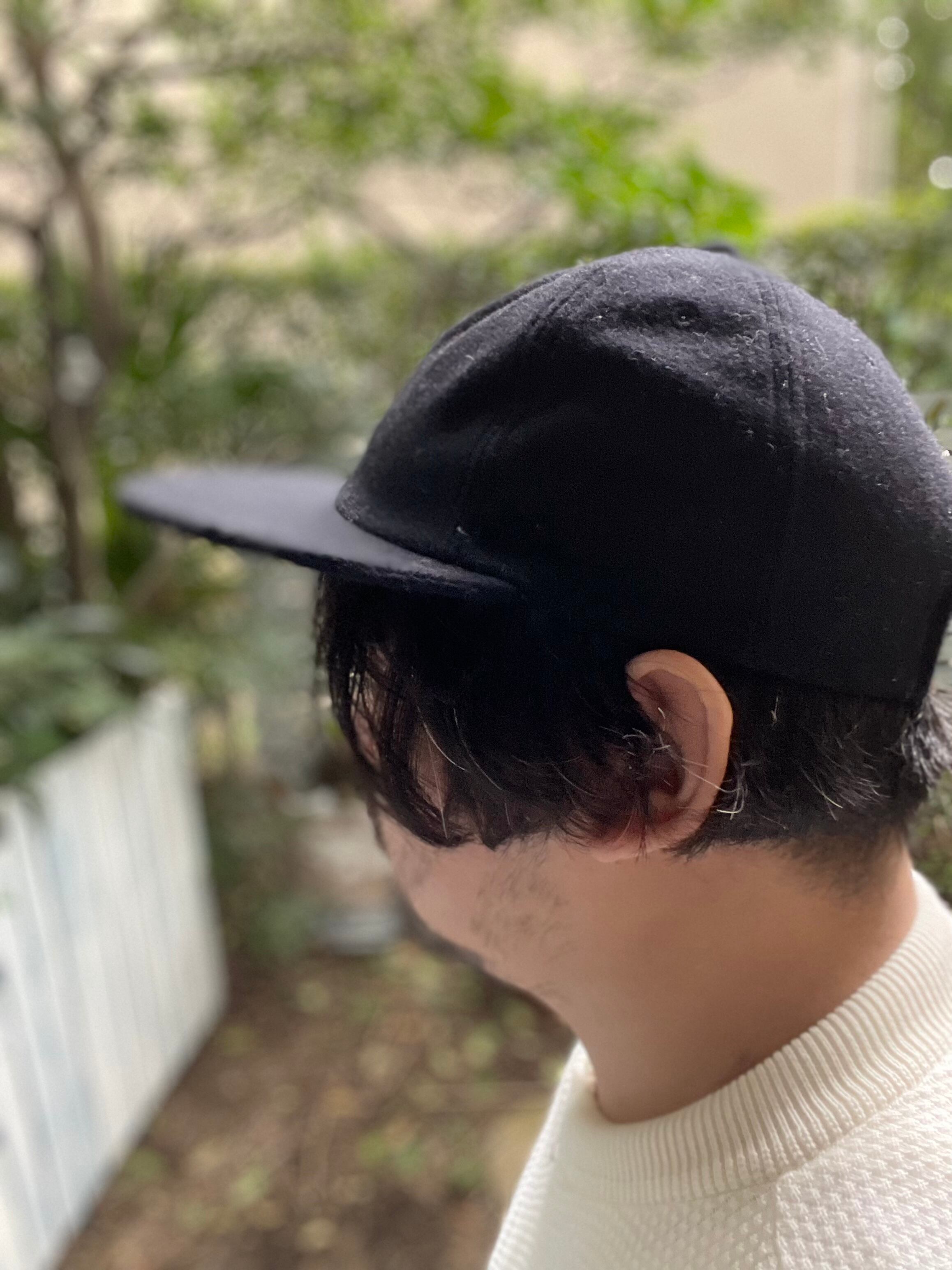 肌触りの良い上質なウール生地を用いて平ツバキャップを仕立てました。