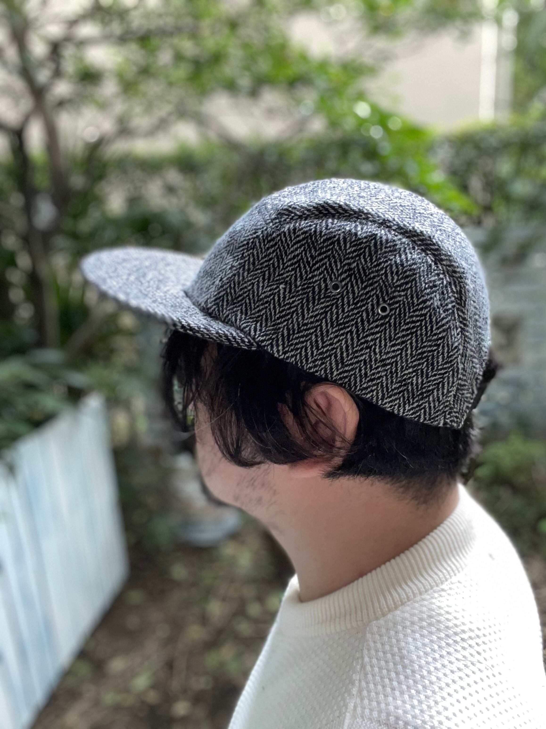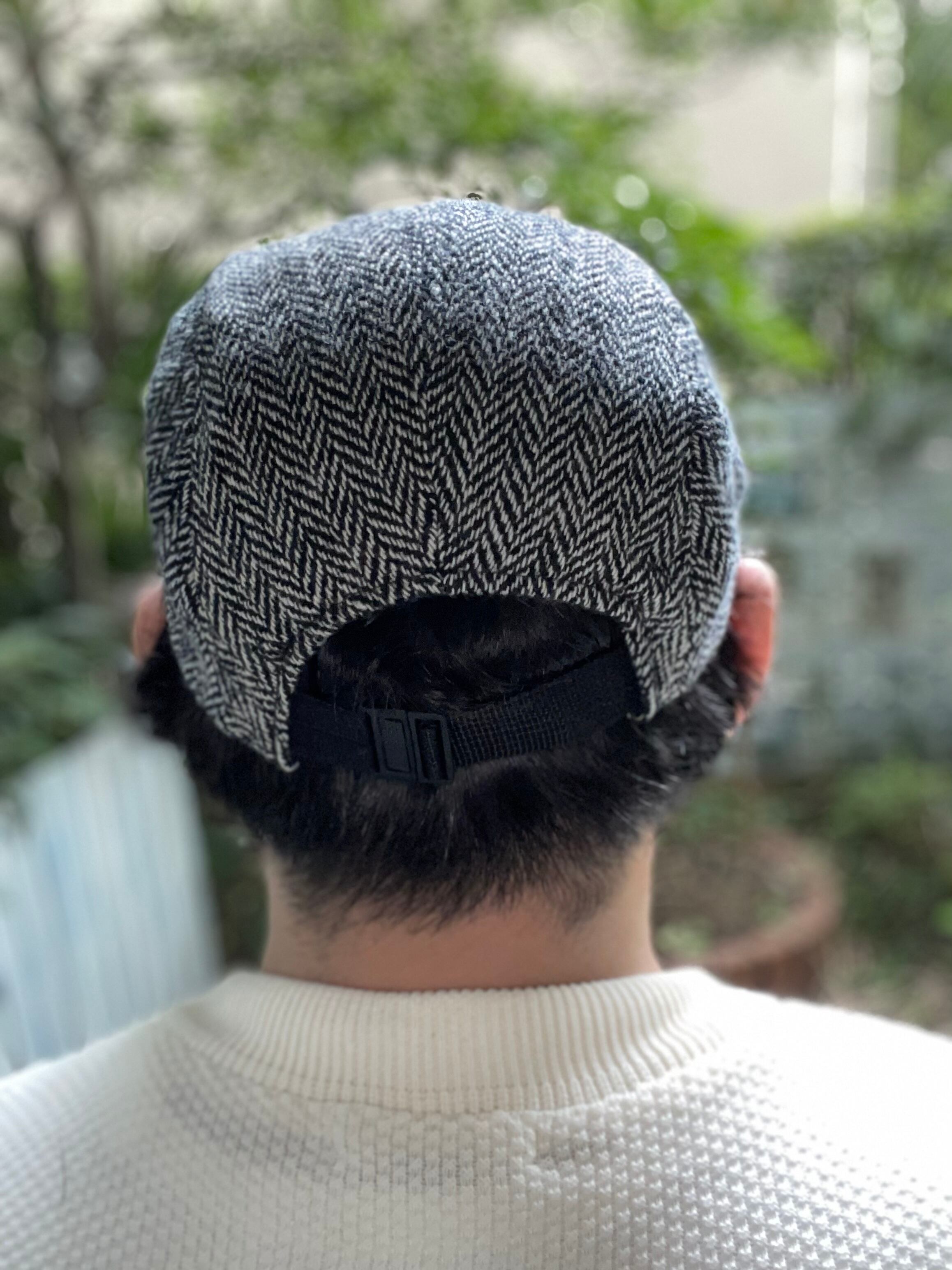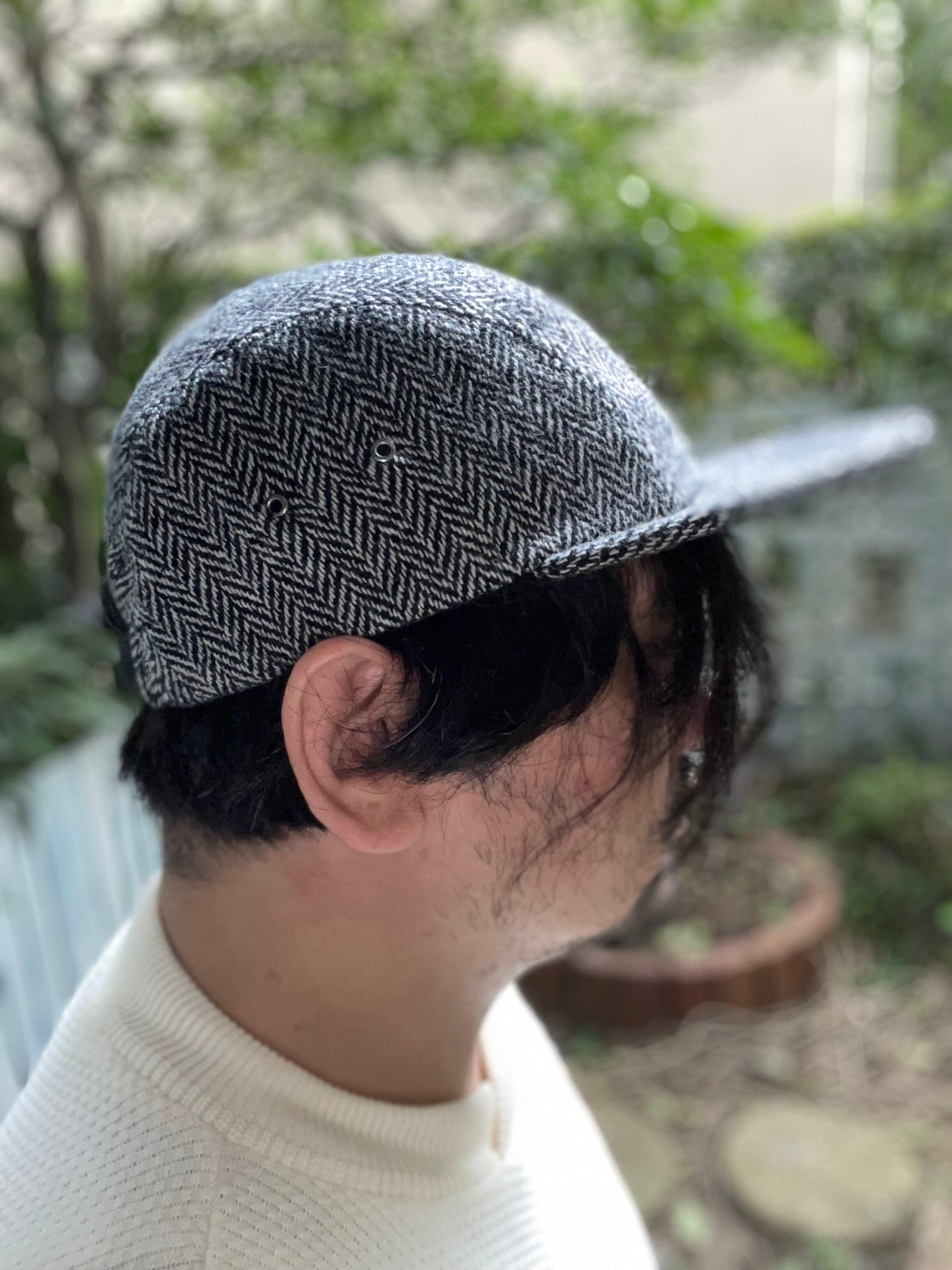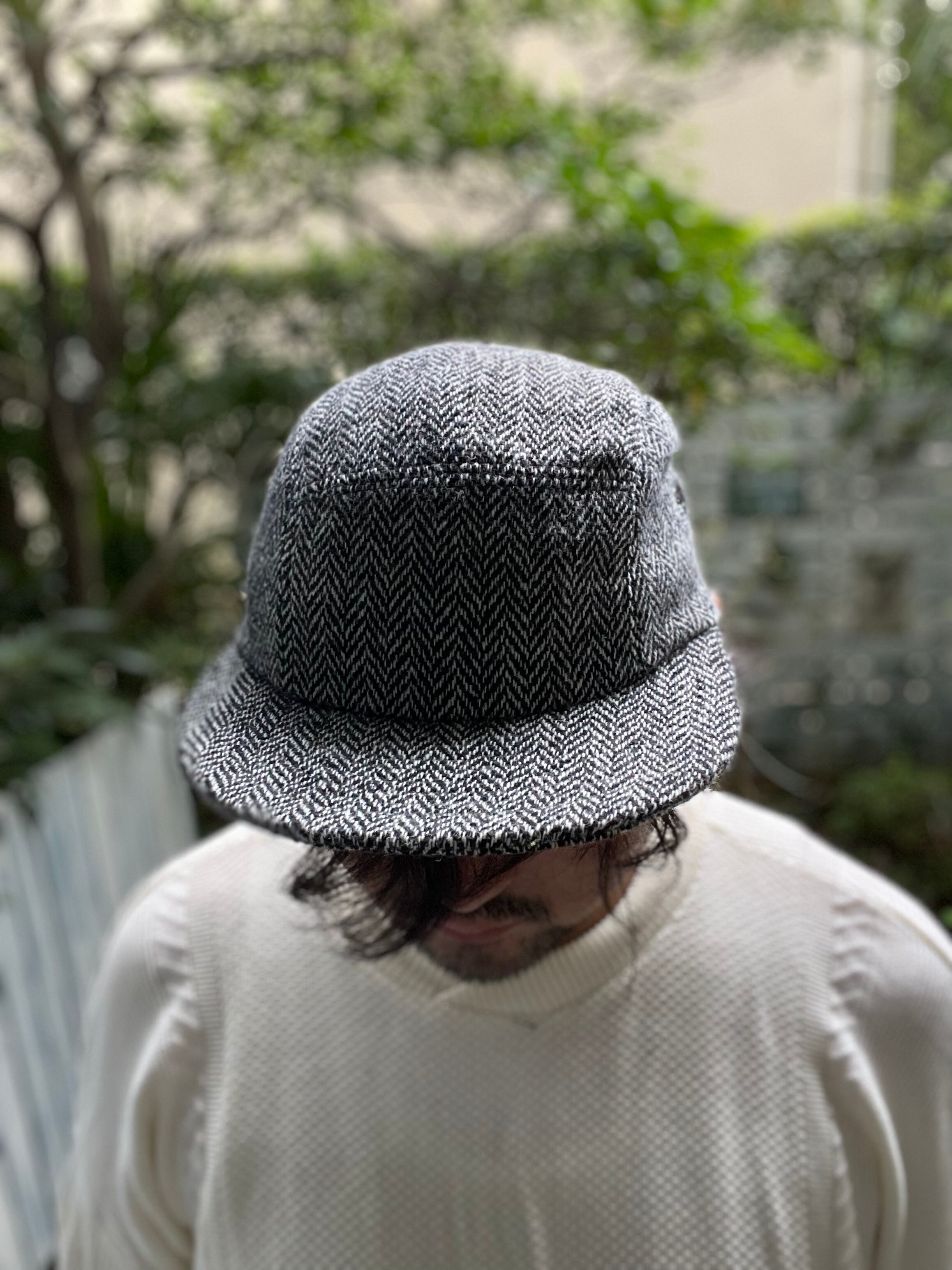 アンティークのヘリンボーンウールのカーテンを解体してジェットキャップに仕立てました。