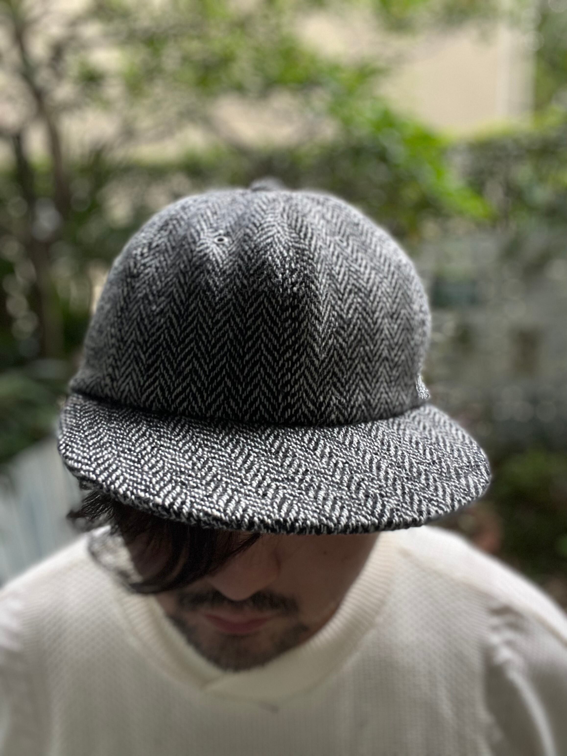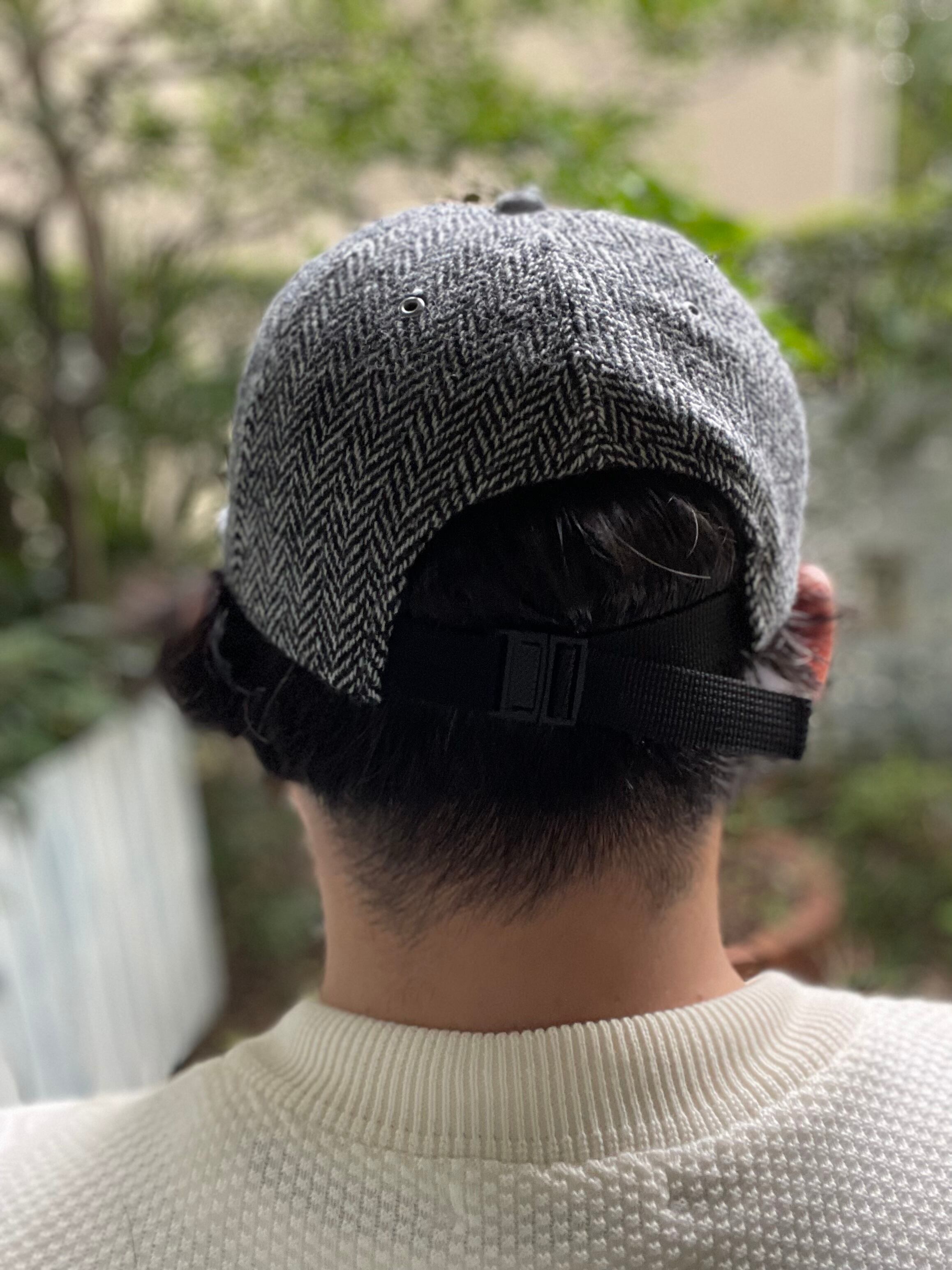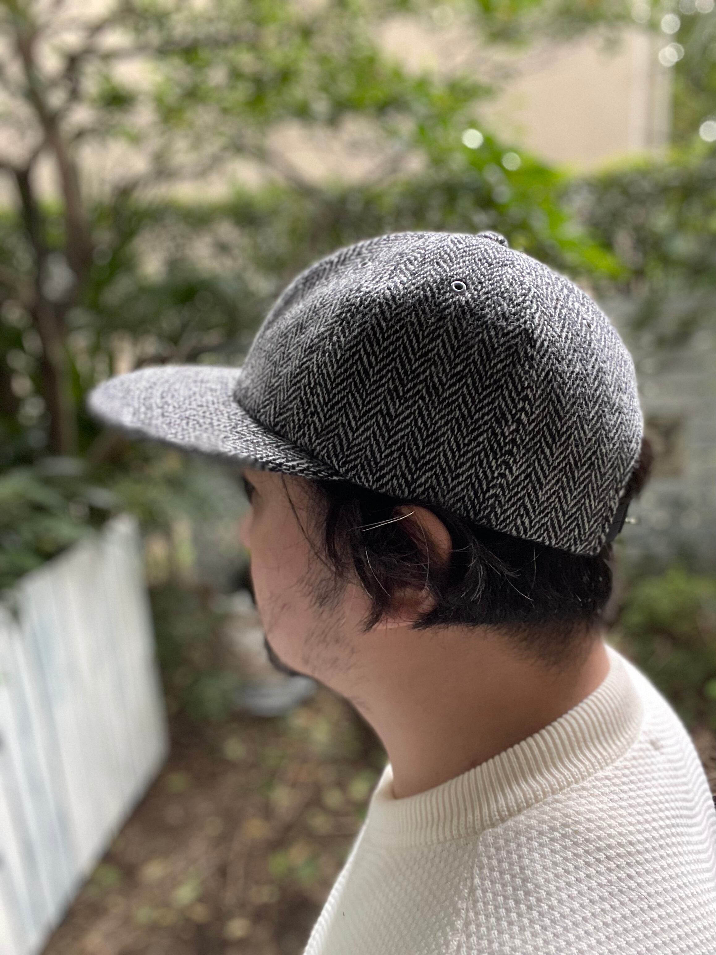 アンティークのヘリンボーンウールのカーテンを解体して平ツバ6パネルキャップに仕立てました。