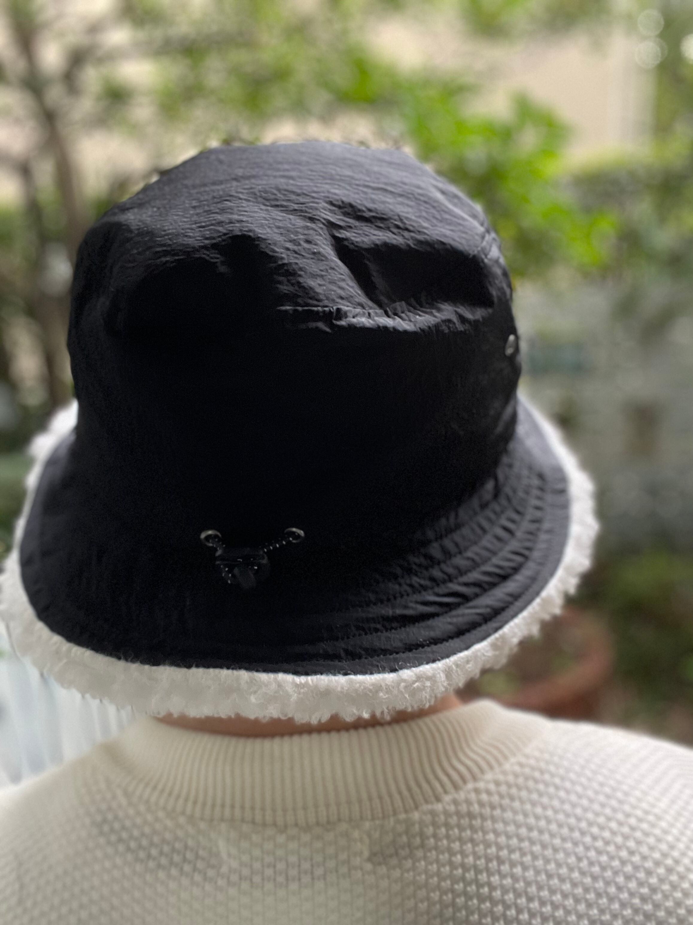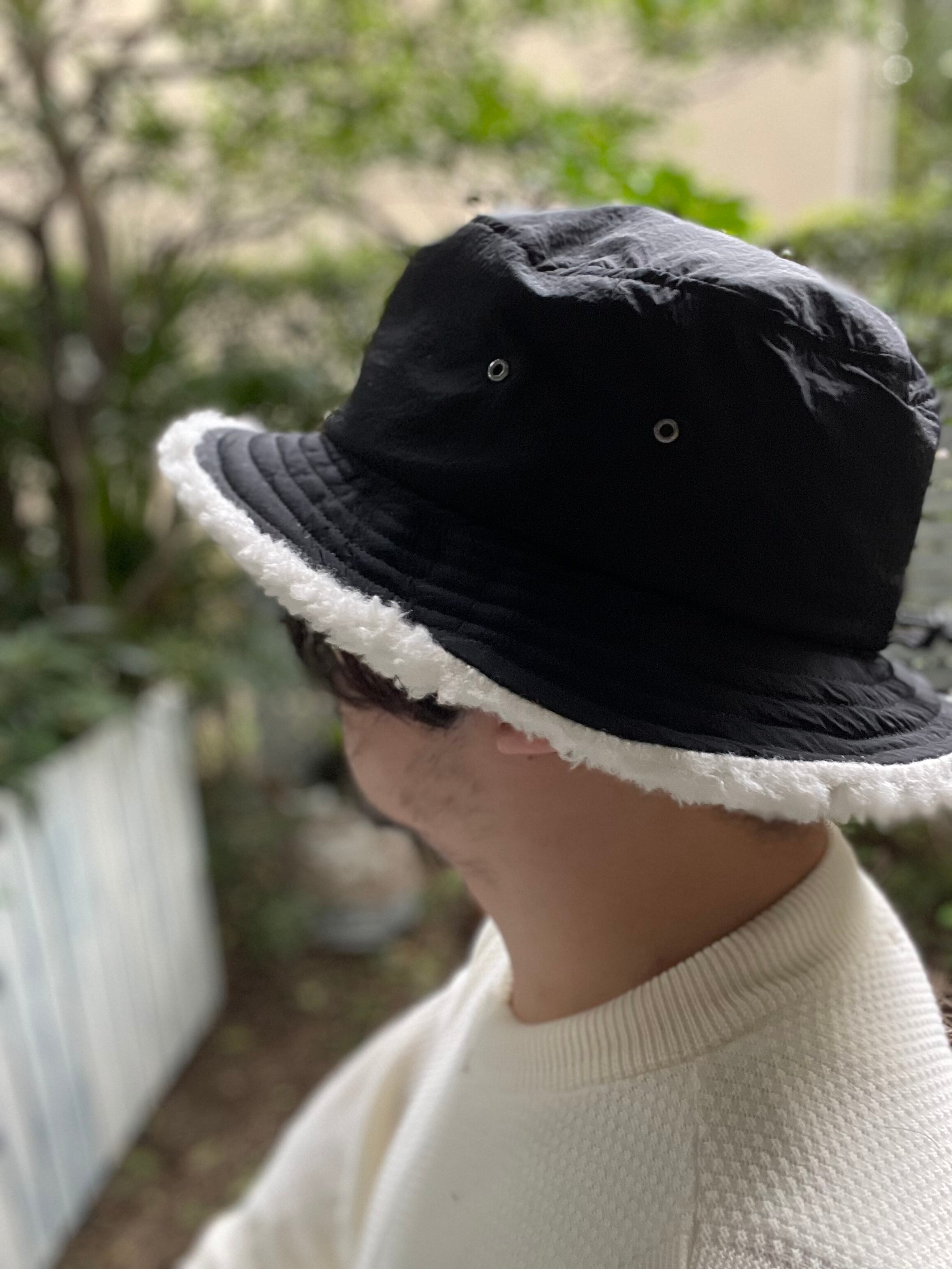 ツバ裏のボリュームあるボア生地がコーディネートのアクセントになります。