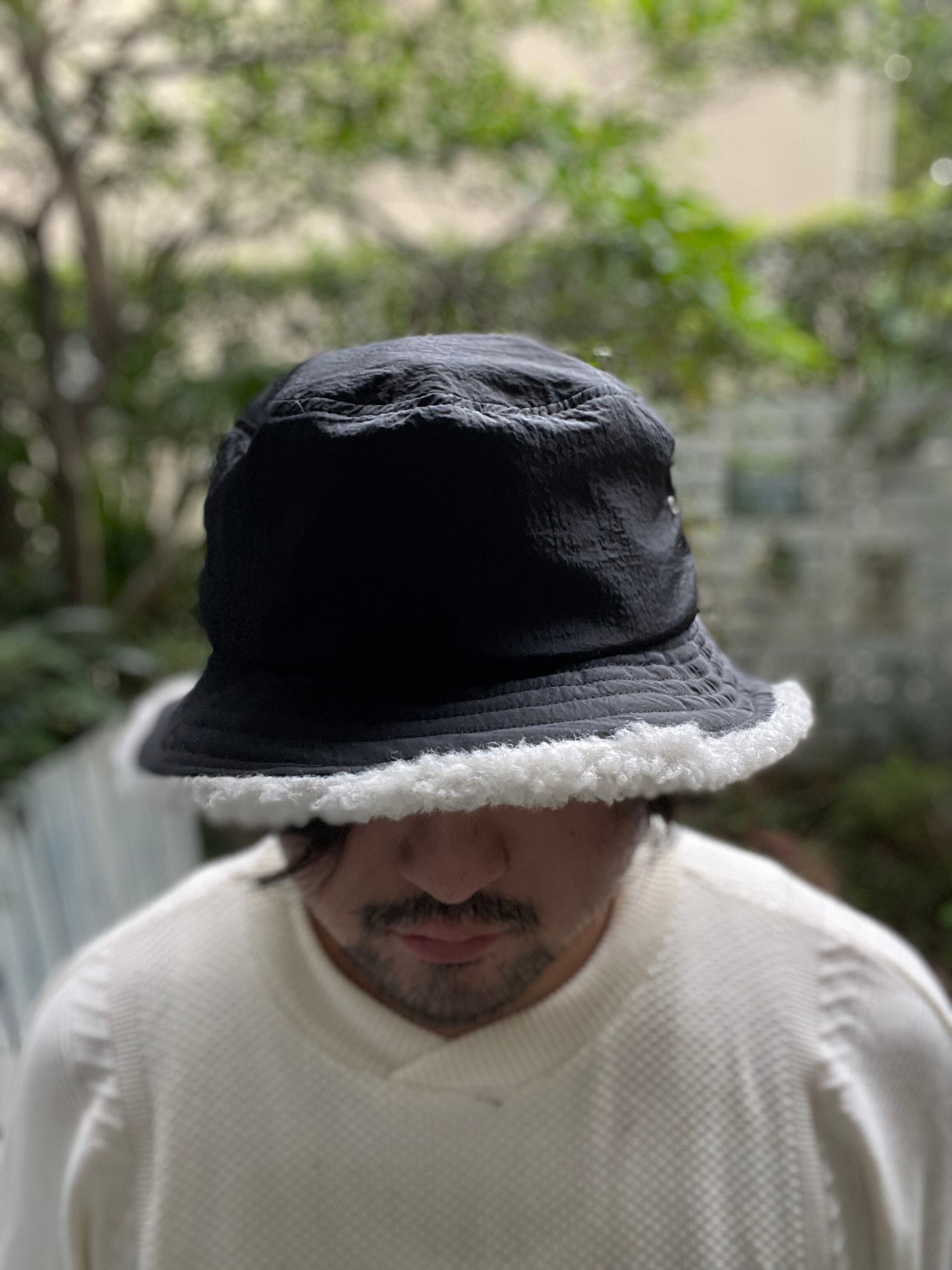 適度なシワ感のあるナイロン生地を用いてヴィンテージライクなバケットハットを仕立てました。