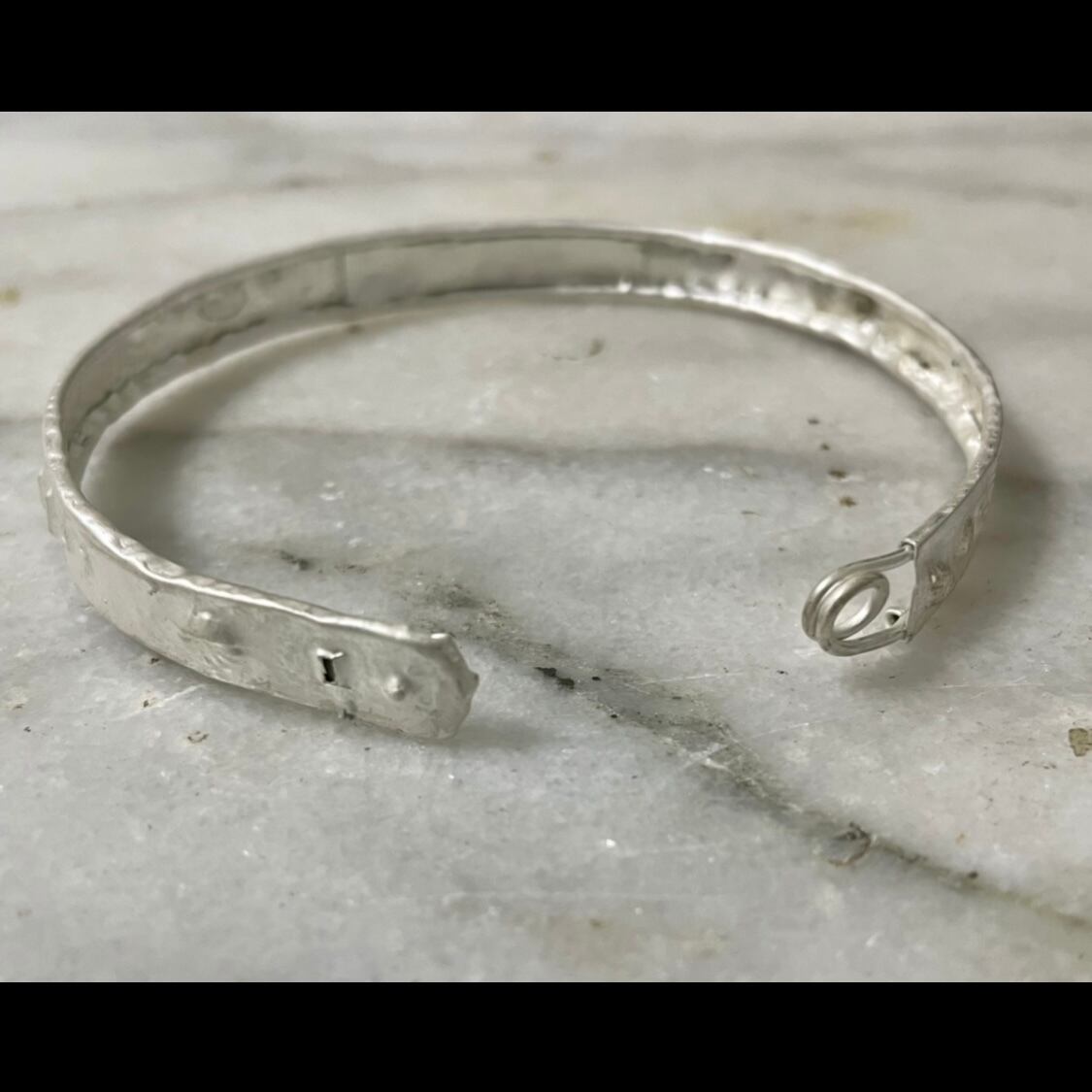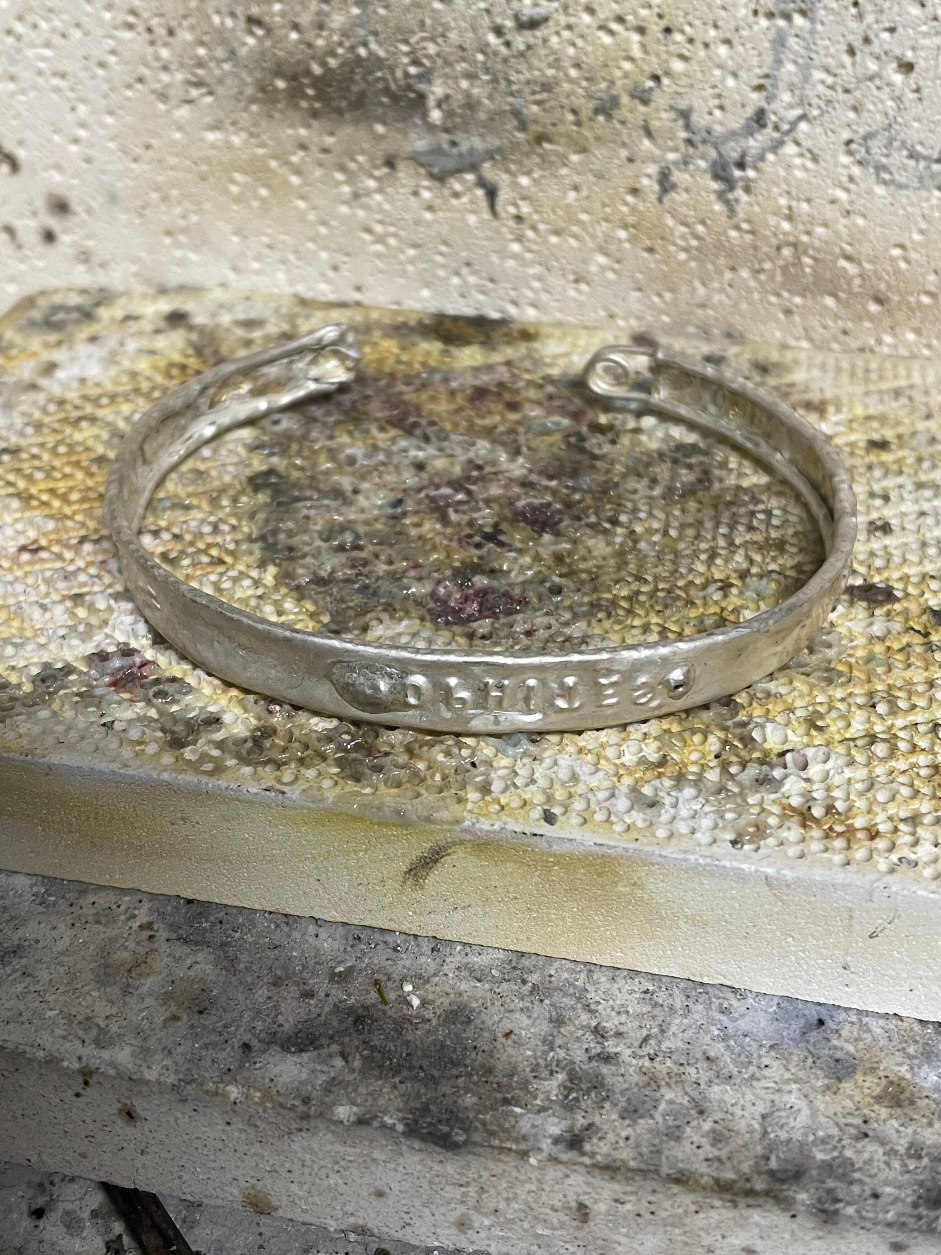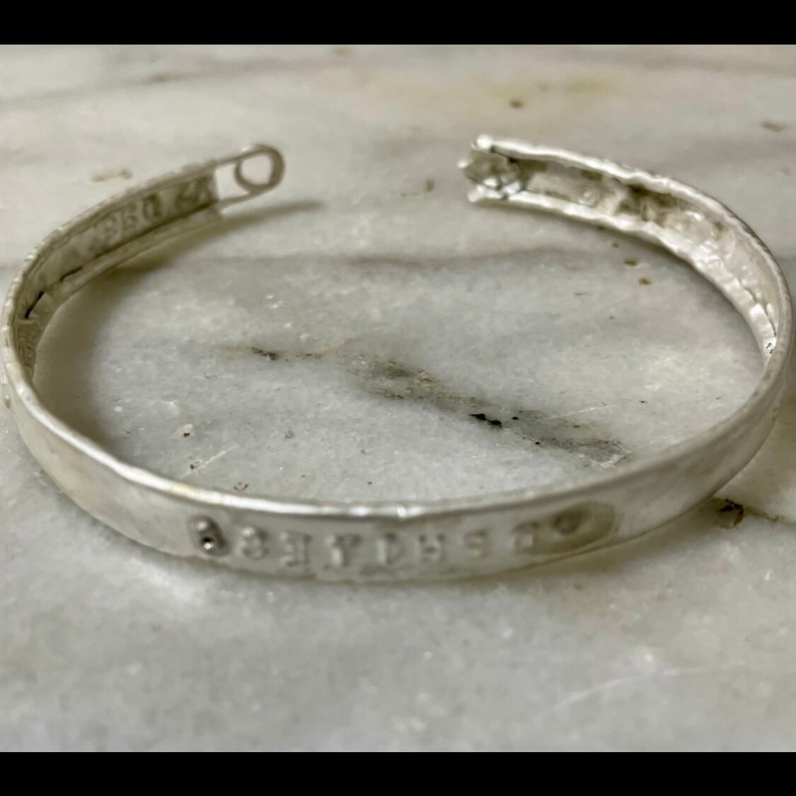 安全ピンを包装紙で包むコンセプトで作られたブレスレットになります。