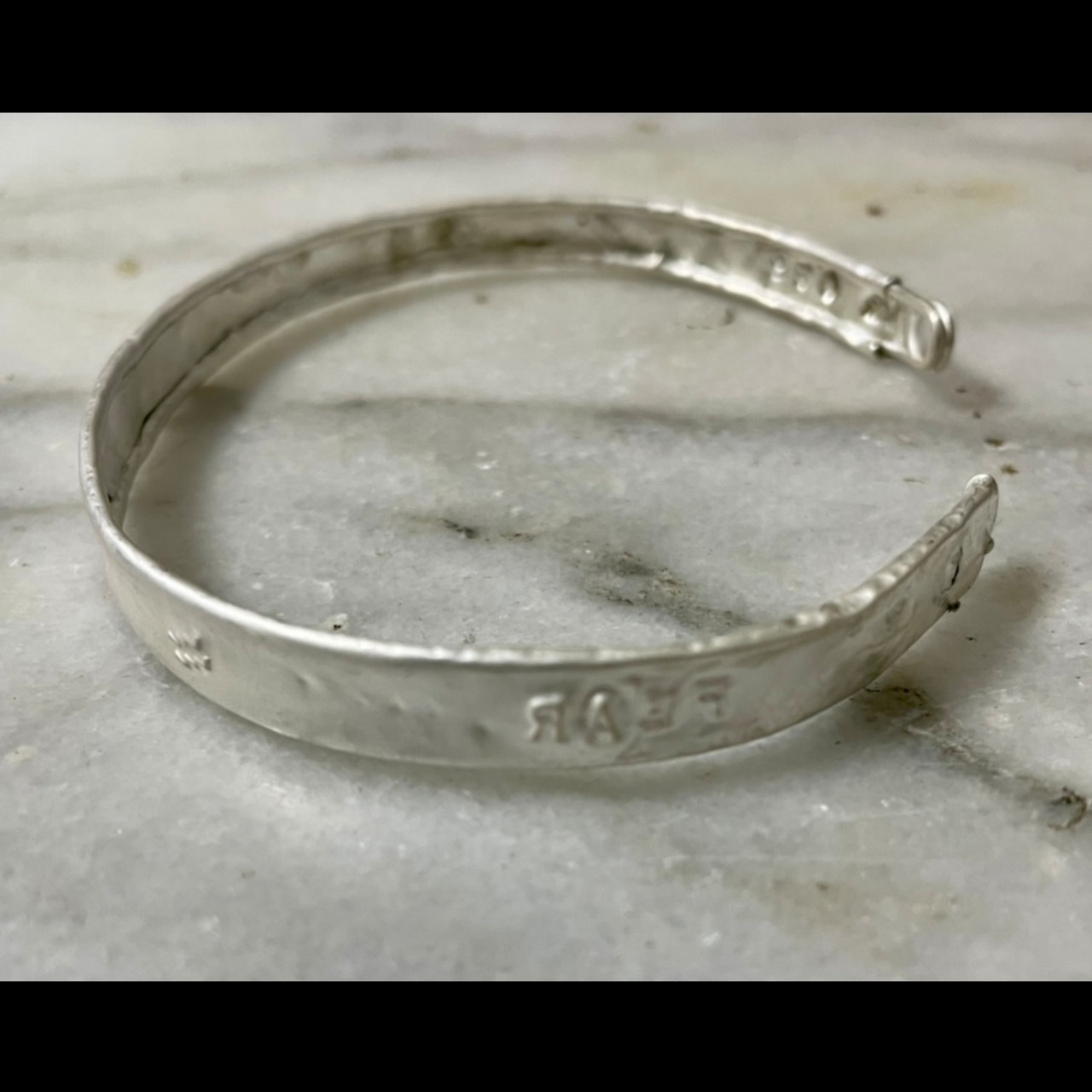 内側から文字が浮かび上がっているような刻印が特徴的です。