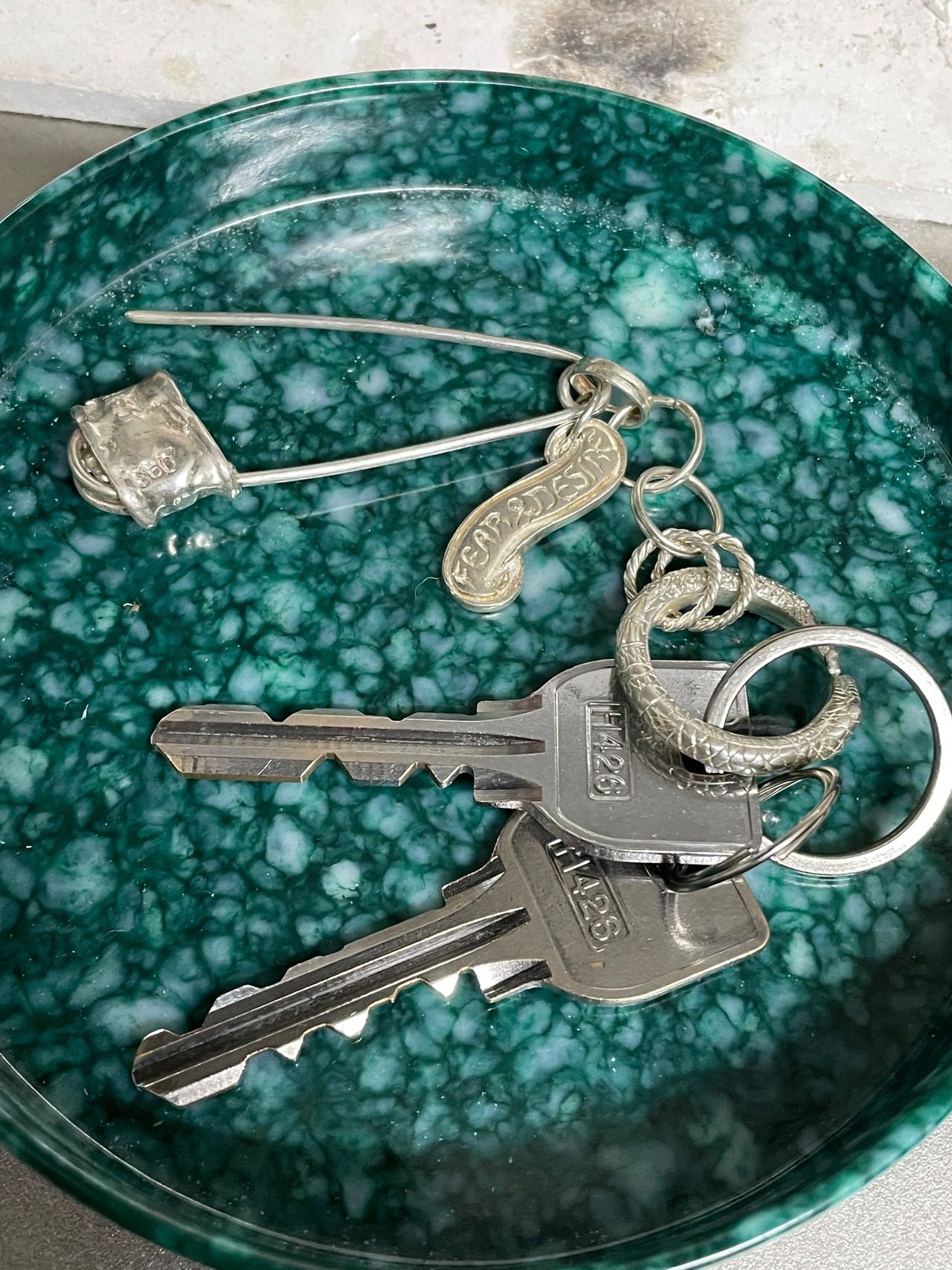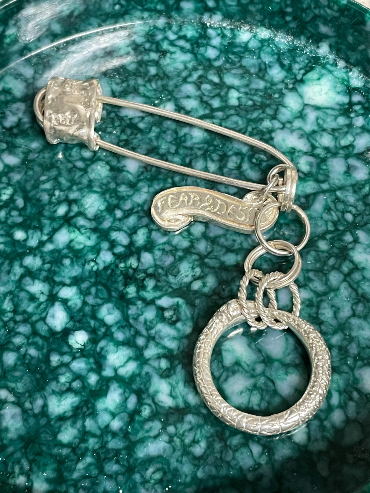 安全ピンモチーフのキーチャームになります。