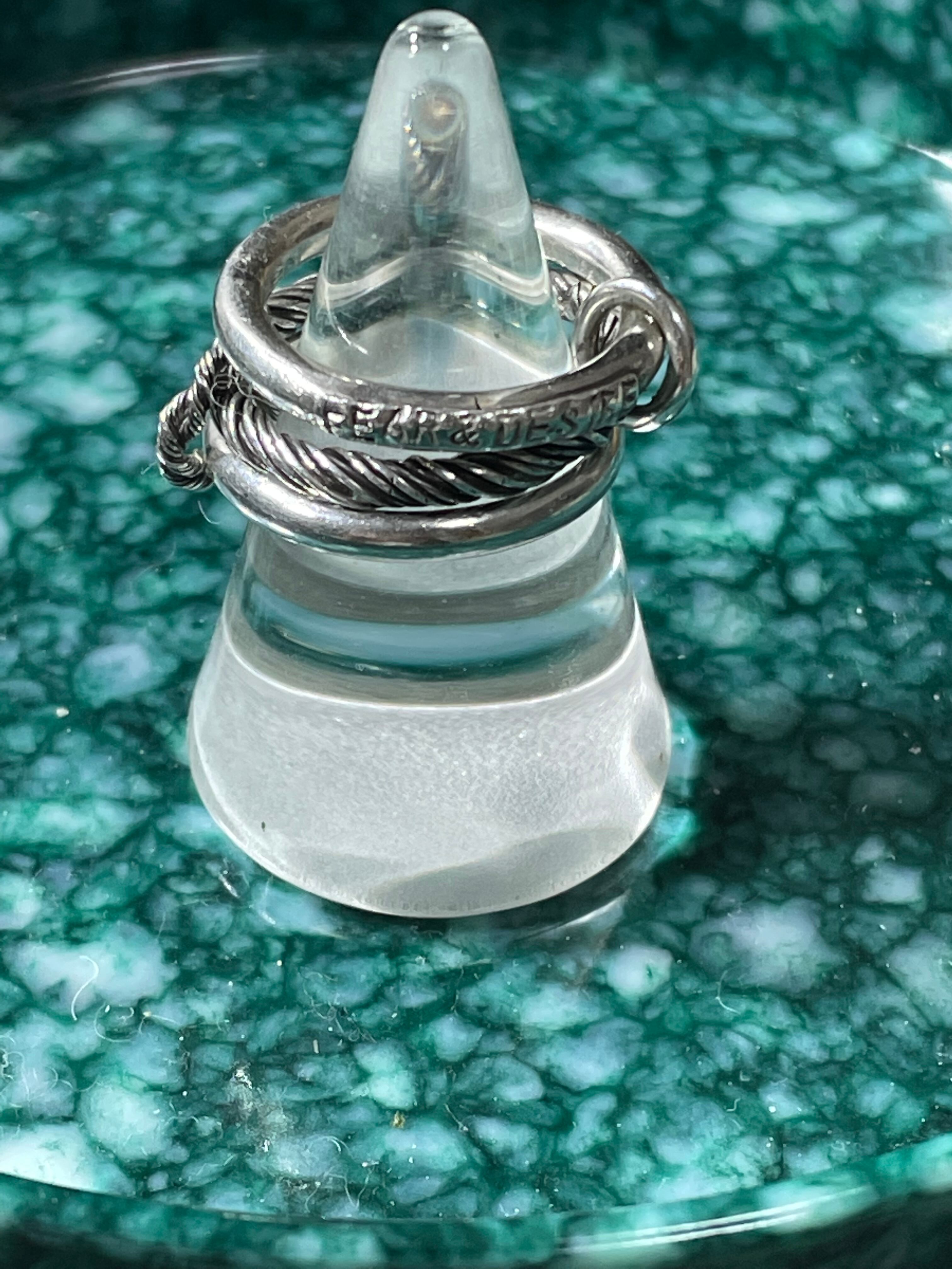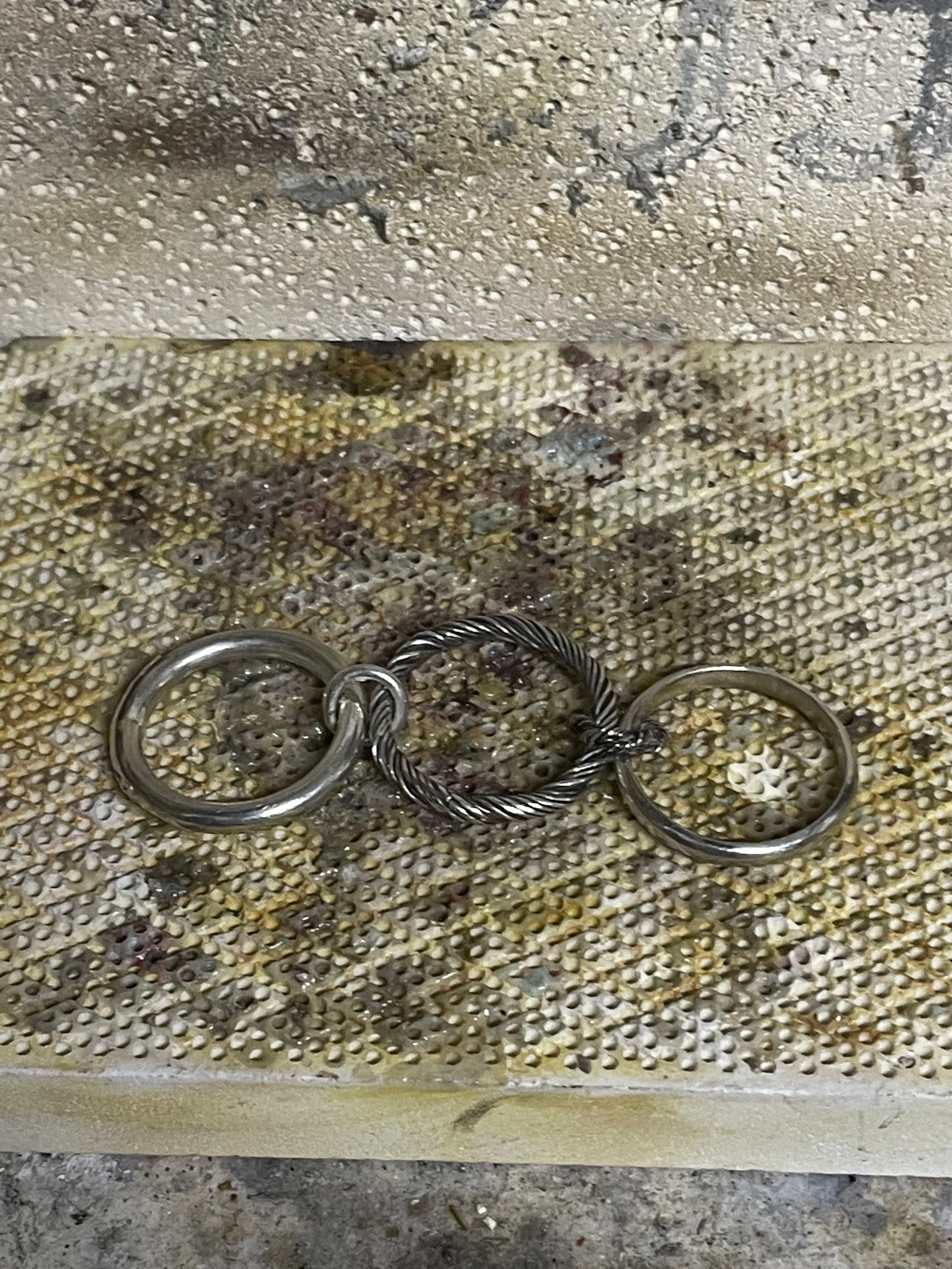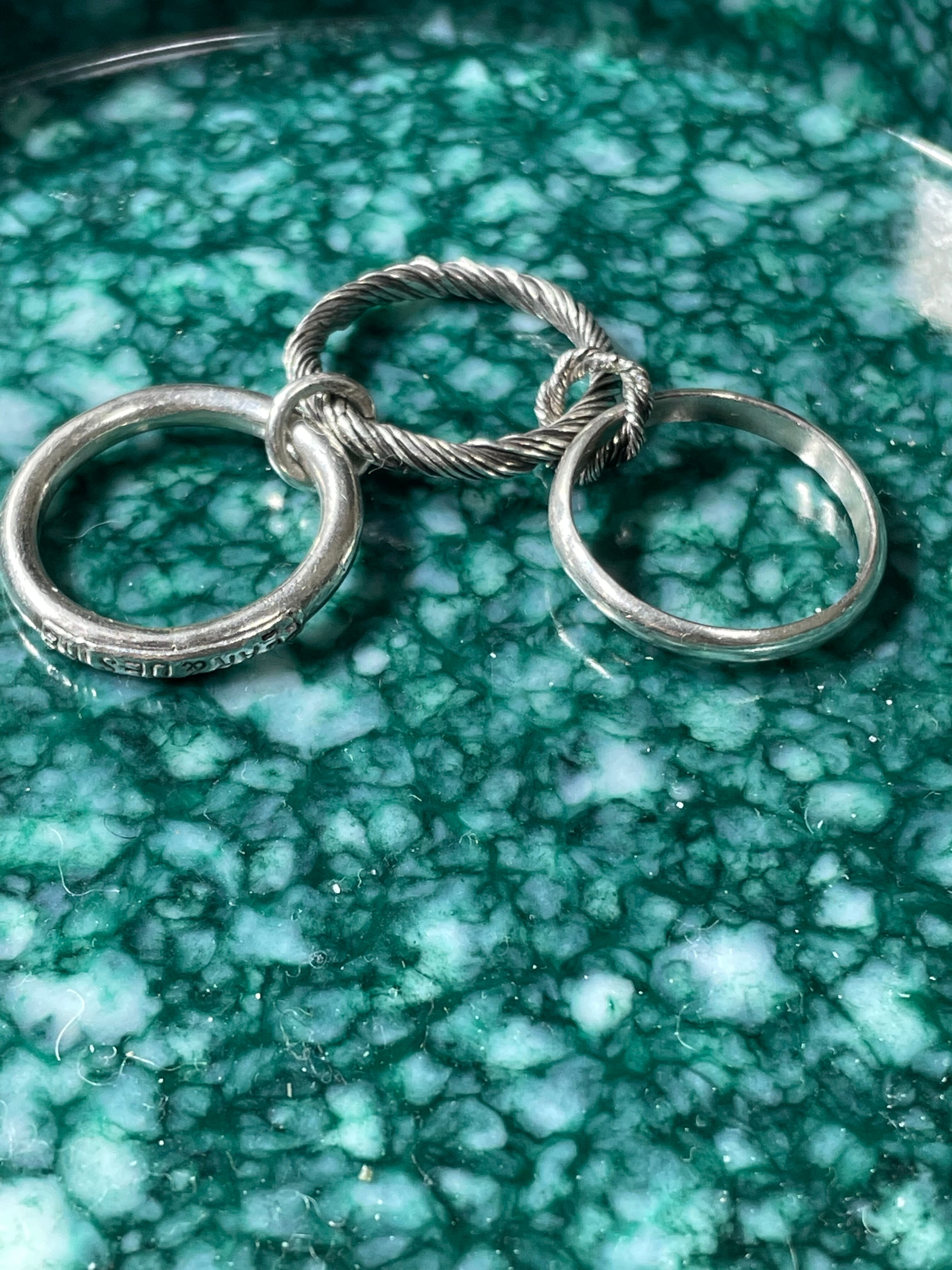 ランダムな太さのリングを連ねることで様々な表情を見せられます。