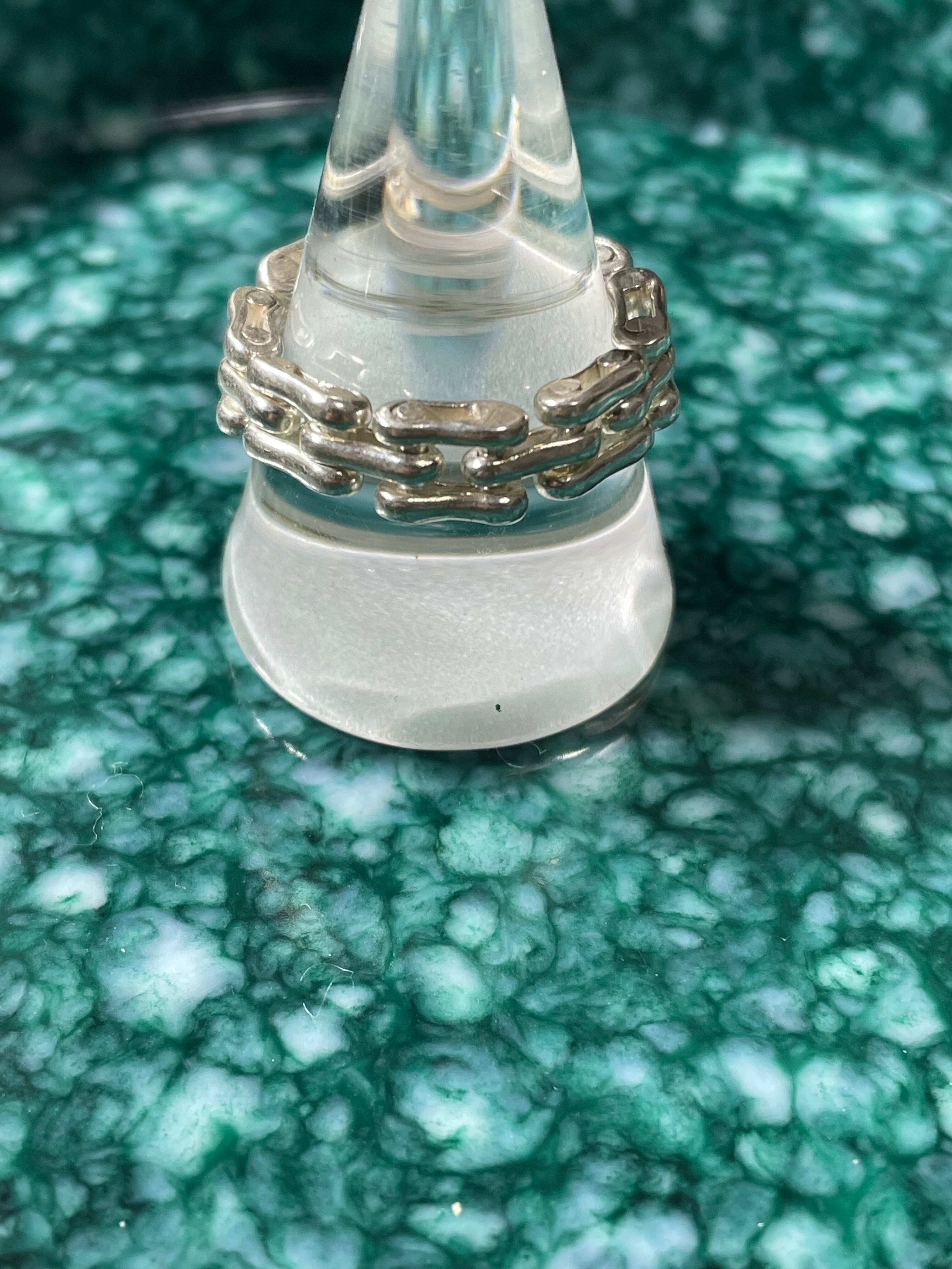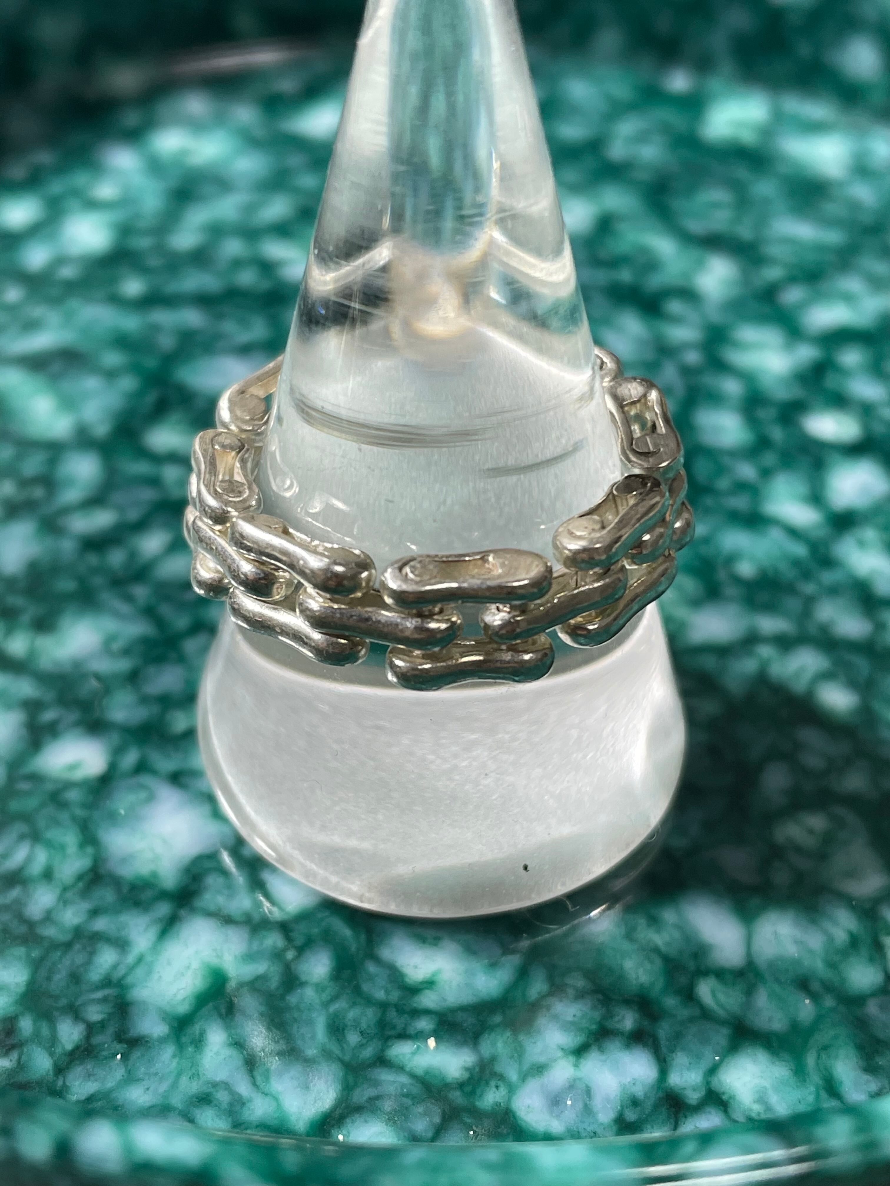 メキシコの伝統的なリングから着想されたシルバーバンドリングになります。