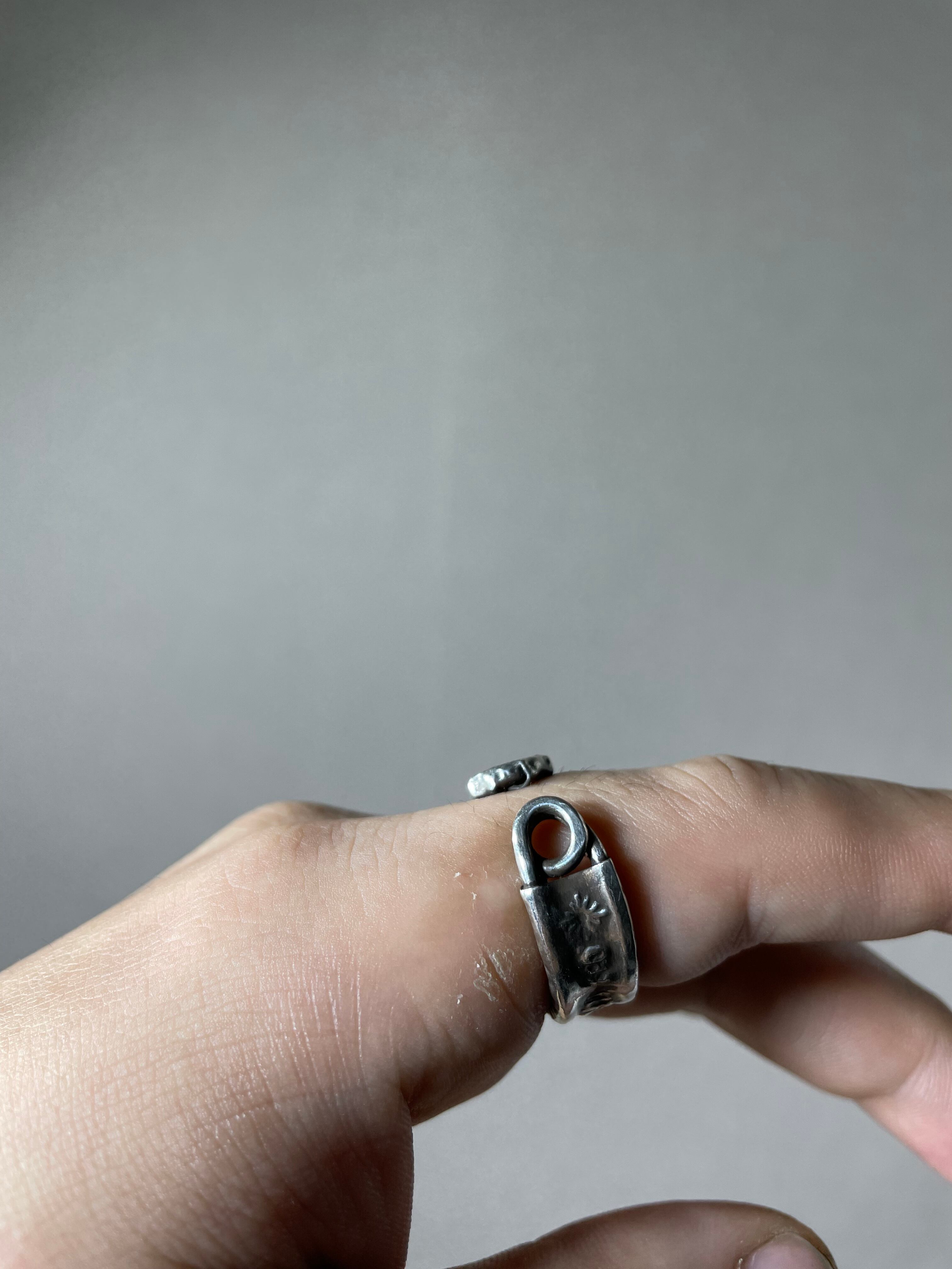 安全ピンを包装紙で包むをコンセプトに作成した指輪となります。