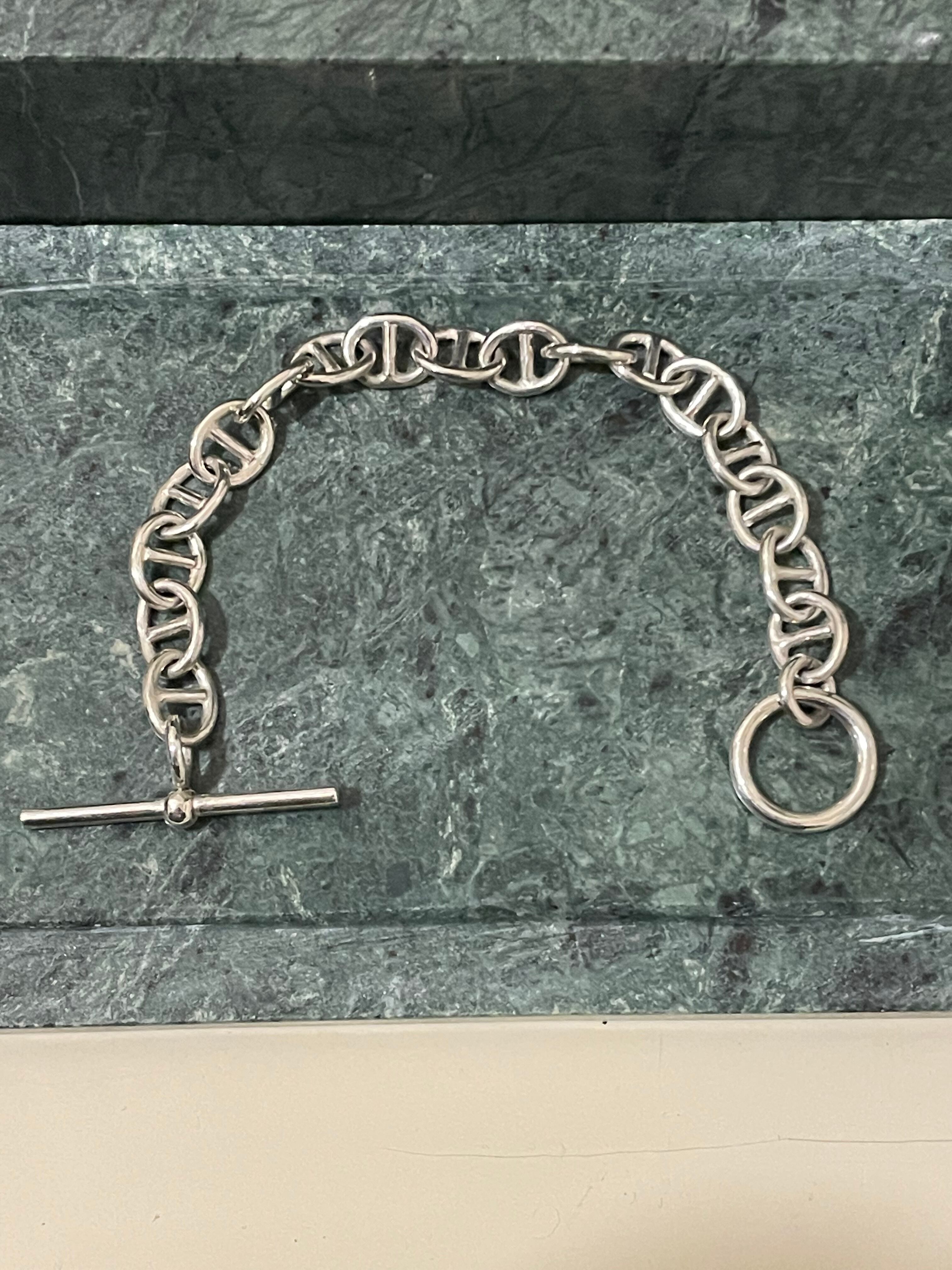 古くからハイブランドなどでシェーヌダンクルとして作られる船の錨を模したブレスレットになります。