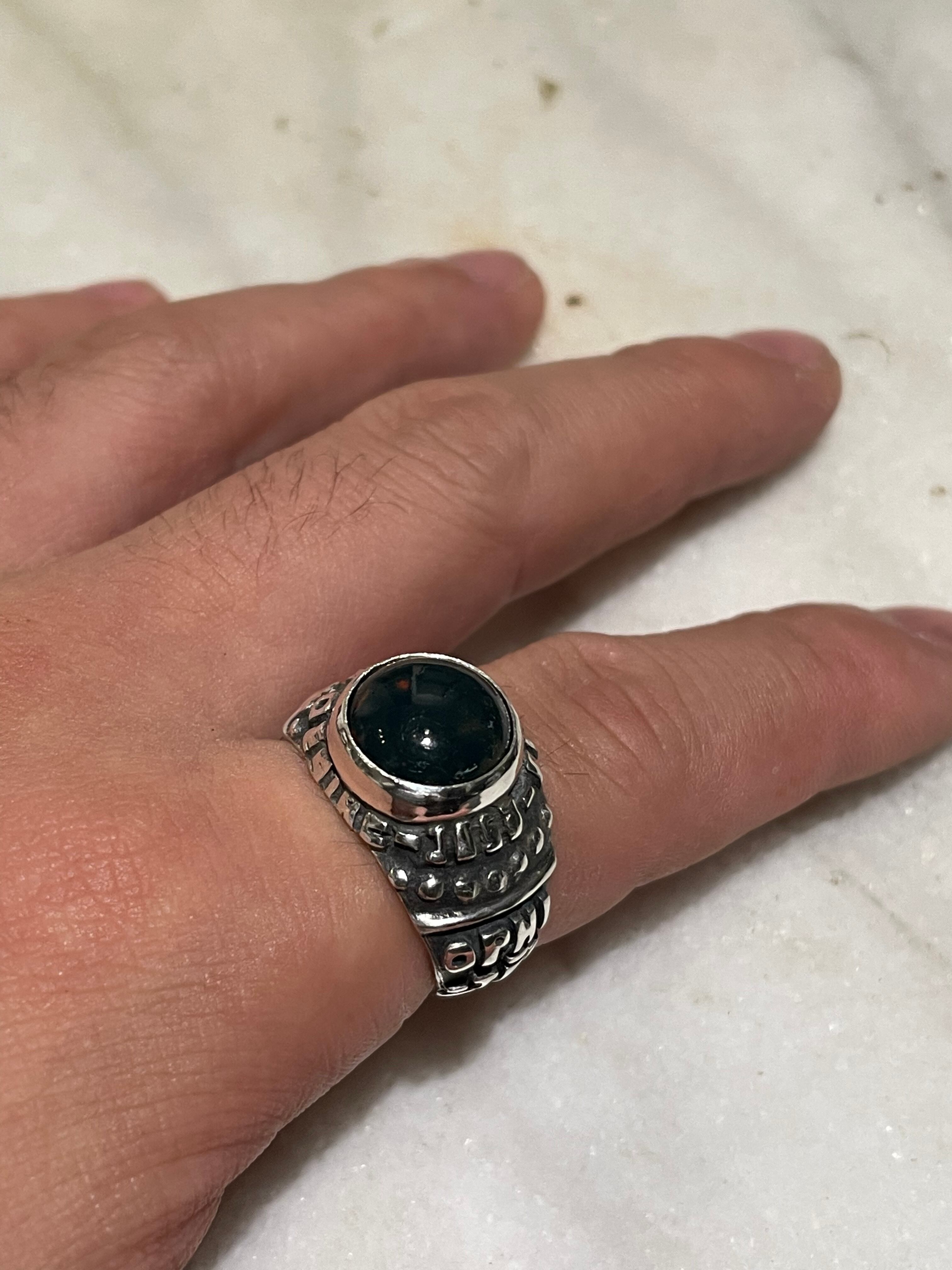 こちらの商品にはブラッドストーンがセッティングされています。